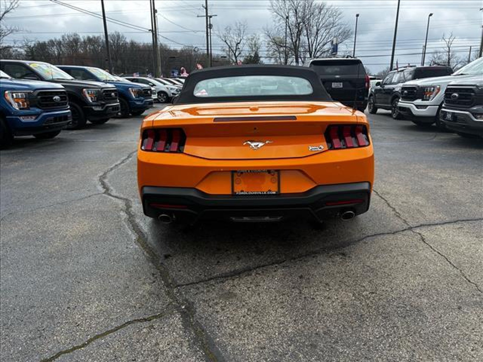 This vehicle is a 2026 Ford Mustang EcoBoost Premium Convertible with a carfax report available. It has driven 10,796 miles and is powered by a 2.3 liter EcoBoost Turbo I4 315hp 350 lb-ft engine with a turbocharged RWD drivetrain. The exterior of the car is orange and it has a black interior. It has great fuel economy with 22 mpg in the city and 33 mpg on the highway, making it an efficient choice for anyone looking for a reliable ride. Blind spot sensor and hill start assist are also included for added safety and convenience. This car is sure to turn heads wherever it goes! Contact Details: Town and Country Ford - Louisville, 6015 Preston Hwy, Louisville, KY, 40219, tbradley@tacford.com, (502) 964-8131.