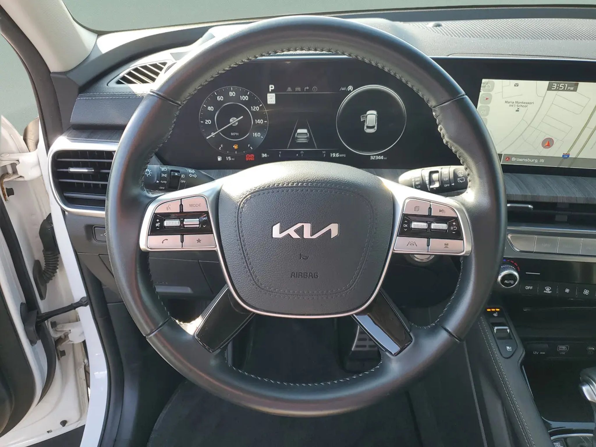 RECALL NOTICE: Some vehicles offered for sale may be subject to unrepaired manufacturer safety recalls. To determine the recall status of a vehicle, visit https:// CARFAX.2024 Kia Telluride SX FWDVIN: 5XYP54GC3RG443743 Mileage: 32,344 Exterior: Glacial White Pearl Interior: Black Leather Ford Blue Advantage: Blue CertifiedThis 2024 Kia Telluride SX delivers premium comfort, bold styling, and impressive capability in a three-row SUV. Finished in stunning Glacial White Pearl with a refined Black leather interior, this Telluride combines luxury-level features with everyday practicality. Powered by a strong 3.8L V6 engine paired with an 8-speed automatic transmission, it offers confident performance, advanced safety technology, and exceptional comfort for drivers and passengers alike.Performance & Efficiency3.8L Gas Direct Injection V6 Engine8-Speed Automatic TransmissionFront-Wheel DriveDrive Mode SelectHill-Start Assist ControlDownhill Brake Control20-Inch Alloy WheelsThe Tellurides smooth V6 powertrain provides confident acceleration and highway cruising while maintaining excellent ride quality for long trips.Interior & Comfort FeaturesBlack Leather Seating SurfacesHeated and Ventilated Front SeatsPower Adjustable Front Seats with MemoryDual-Zone Automatic Climate ControlWireless Phone Charger12.3-Inch Touchscreen Navigation SystemSecond-Row Captains ChairsPower Sunroof and Rear Fixed Glass SunroofSmart Power LiftgateThe spacious cabin is designed with premium materials and thoughtful convenience features, making it ideal for families and long-distance travel.Technology & SafetyApple CarPlay and Android AutoBlind-Spot Collision WarningRear Cross-Traffic Collision-Avoidance AssistLane Keeping Assist and Lane Following AssistSmart Cruise Control with Stop & GoHighway Driving AssistSurround View MonitorHarman/Kardon Premium Audio SystemForward Collision Avoidance AssistThese advanced driver-assist and connectivity features help keep you safe, informed, and entertained on every drive.Ford Blue Advantage: Blue Certified139-Point Inspection3-Month / 4,000-Mile Comprehensive Limited Warranty24/7 Roadside AssistanceCARFAX Vehicle History ReportWhy This TellurideThe Kia Telluride has quickly become one of the most sought-after three-row SUVs thanks to its upscale design, comfortable ride, and outstanding technology. This SX model takes it even further with luxury-level features, premium audio, and advanced safety systemsmaking it an exceptional value for families or anyone needing space without sacrificing style or capability.Certification Program Details: Ford Blue Advantage: Blue Certified* 139 Point Inspection* Transferable Warranty* Vehicle History* Warranty Deductible: $100* Roadside Assistance* Limited Warranty: 3 Month/4,000 Mile (whichever comes first) after new car warranty expires or from certified purchase date* 11,000 FordPassTM Rewards Points to use toward first maintenance visitCertified. Apple CarPlay & Android Auto, Auto High-beam Headlights, Automatic temperature control, Delay-off headlights, Exterior Parking Camera Rear, Front dual zone A/C, Front fog lights, Fully automatic headlights, harman/kardon® Speakers, Heated & Ventilated Front Bucket Seats, Heated front seats, Leather Seat Trim, Navigation System, Power Liftgate, Power moonroof, Radio: AM/FM Harman Kardon Premium Audio System, Rear air conditioning, Rear window defroster, Reclining 3rd row seat, Remote keyless entry, Smart Key w/ Push Button and Remote Start, Steering wheel mounted audio controls, Ventilated front seats, Wheels: 20 x 7.5 Black Finish.