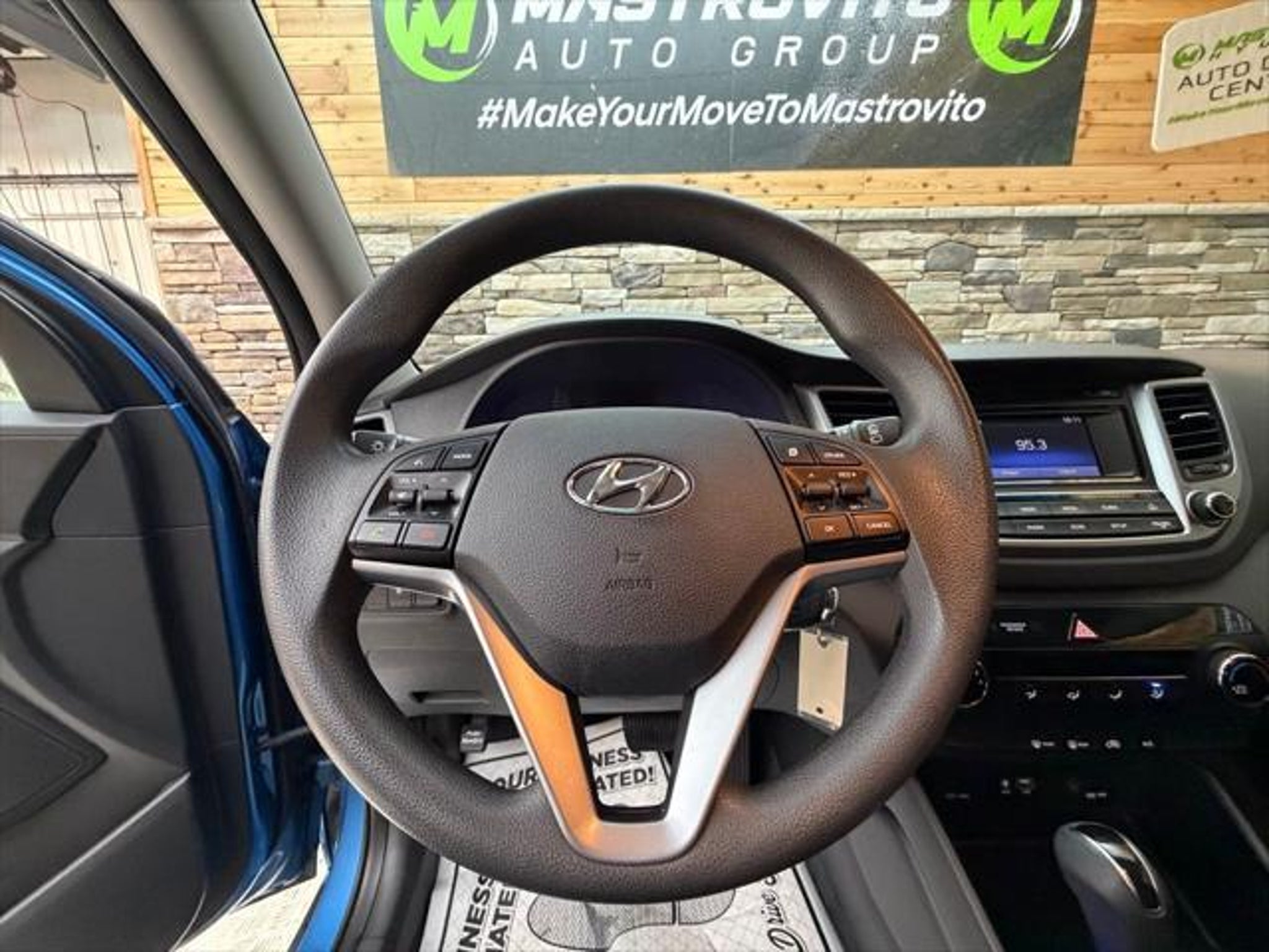 Recent Arrival! 2016 Hyundai Tucson SE Caribbean Blue This Tucson SE is nicely equipped with SE Popular Package 02 (8-Way Power Driver Seat Adjuster, Driver Power Window w/Auto Up/Down, Dual Illuminated Vanity Mirrors, Fog Lamps, Illuminated Glove Box, LED Daytime Running Lights, Premium Side Sills, and Roof Rack Side Rails), AWD, 3.648 Axle Ratio, 4-Wheel Disc Brakes, 6 Speakers, ABS brakes, Air Conditioning, Alloy wheels, AM/FM radio: SiriusXM, Anti-whiplash front head restraints, Brake assist, Bumpers: body-color, Cargo Cover, Carpeted Floor Mats, CD player, Cloth Seat Trim, Delay-off headlights, Driver door bin, Driver vanity mirror, Dual front impact airbags, Dual front side impact airbags, Electrochromic Mirror w/Homelink & Compass, Electronic Stability Control, Exterior Parking Camera Rear, Four wheel independent suspension, Front anti-roll bar, Front Bucket Seats, Front Bucket Seats w/Power Driver's Seat, Front Center Armrest, Front reading lights, Fully automatic headlights, Heated door mirrors, Illuminated entry, Low tire pressure warning, Mudguards, Occupant sensing airbag, Option Group 02, Overhead airbag, Overhead console, Panic alarm, Passenger door bin, Passenger vanity mirror, Power door mirrors, Power steering, Power windows, Radio: Autonet AM/FM/SiriusXM/CD/MP3 Audio System, Rear anti-roll bar, Rear seat center armrest, Rear window defroster, Rear window wiper, Remote keyless entry, Security system, Speed control, Speed-sensing steering, Split folding rear seat, Spoiler, Steering wheel mounted audio controls, Tachometer, Telescoping steering wheel, Tilt steering wheel, Traction control, Trip computer, Variably intermittent wipers, and Wheels: 17 X 7.0JJ Alloys. AWD.Mastrovito Hyundai is proud to serve the drivers of Utica and Rome with a dedication to incredible customer service, and a wide selection of incredible new Hyundai models in Yorkville, NY. Our team proudly comes to work every day with the goal of meeting your needs and sending you back onto the roads of Central New York completely satisfied with your experience at Mastrovito Hyundai. Whether we can amaze you with incredible new and pre-owned vehicle selection, our dedication to incredible customer service or our transparent and accommodating auto loan and lease options, we look forward to serving you at Mastrovito Hyundai.Awards: * 2016 IIHS Top Safety Pick, Top Safety Pick * 2016 KBB.com Best Buy Awards Finalist * 2016 KBB.com 10 Best All-Wheel Drive Vehicles Under $25,000 * 2016 KBB.com 10 Best SUVs Under $25,000 * 2016 KBB.com 5-Year Cost to Own Awards