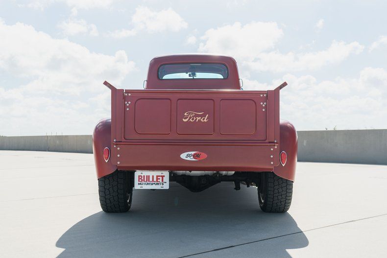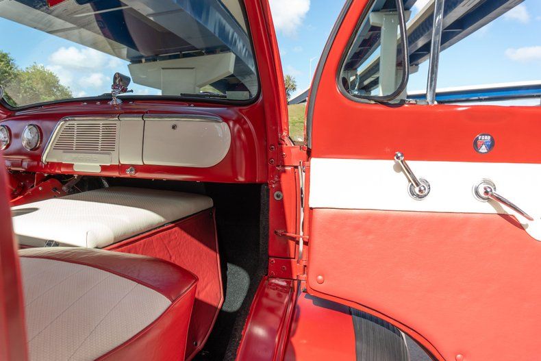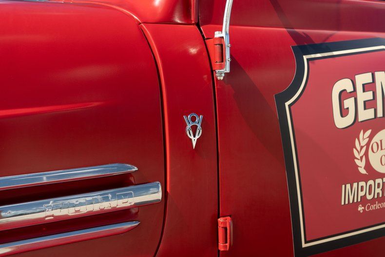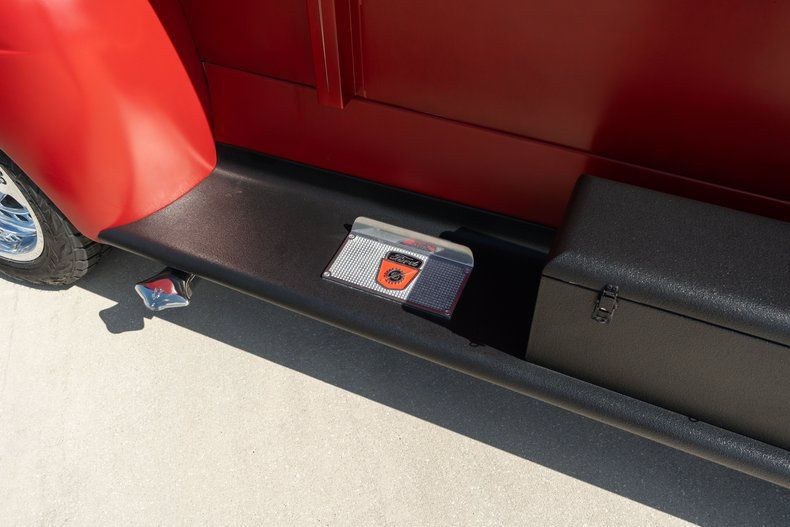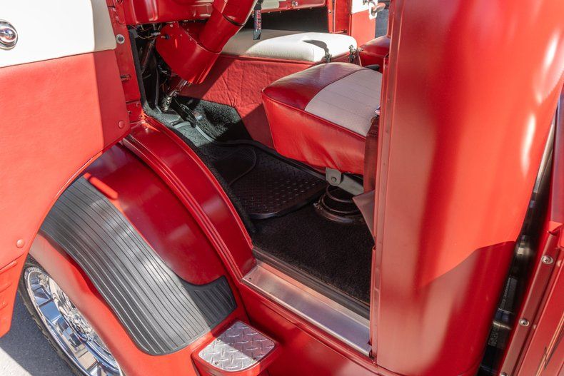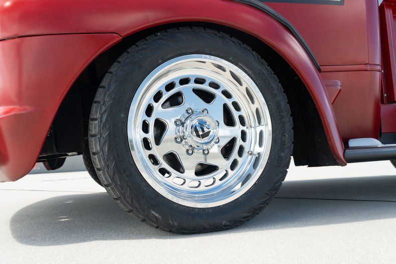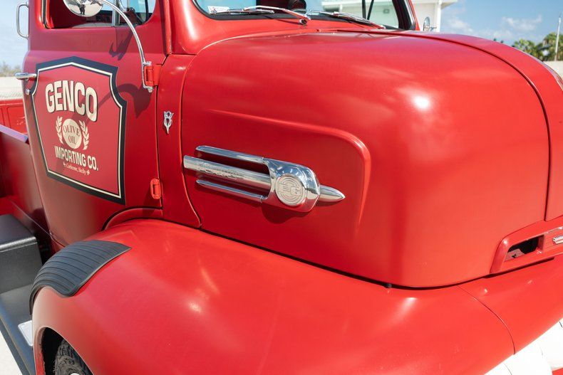 This custom pickup was built using a 1948 Ford F-6 COE cab and a custom-fabricated pickup bed mounted on a newer frame. Power comes from a 460ci V8 linked to a three-speed automatic transmission and a Dana 60 rear end, and highlights include 16" alloy wheels, front disc brakes, and a stepside cargo bed with a storage box. Inside, red and white upholstery is joined by a Nardi steering wheel on a tilt column in addition to Dolphin gauges. Work performed in late 2024 has involved adding an electric fuel pump and replacing the carburetor, fuel tank, and dual exhaust system.