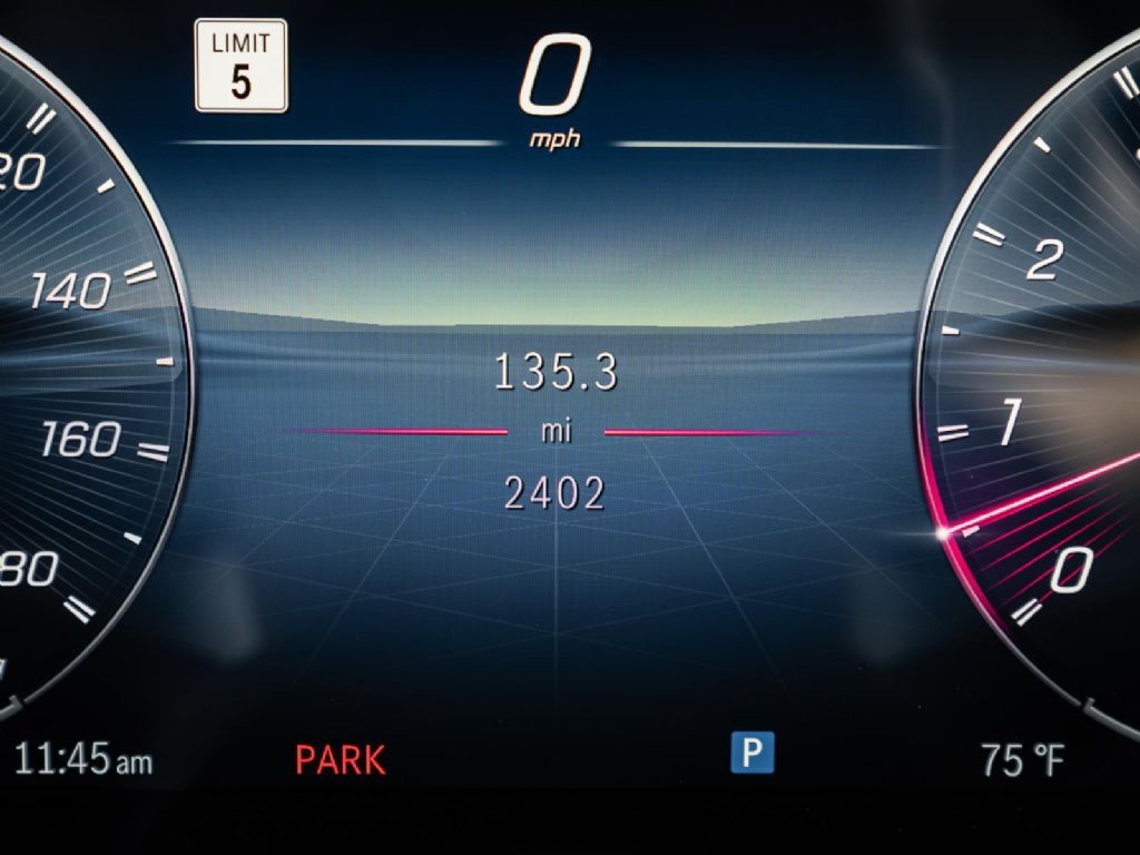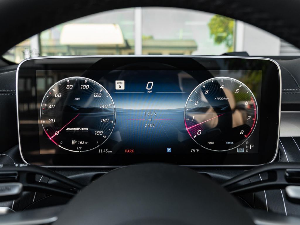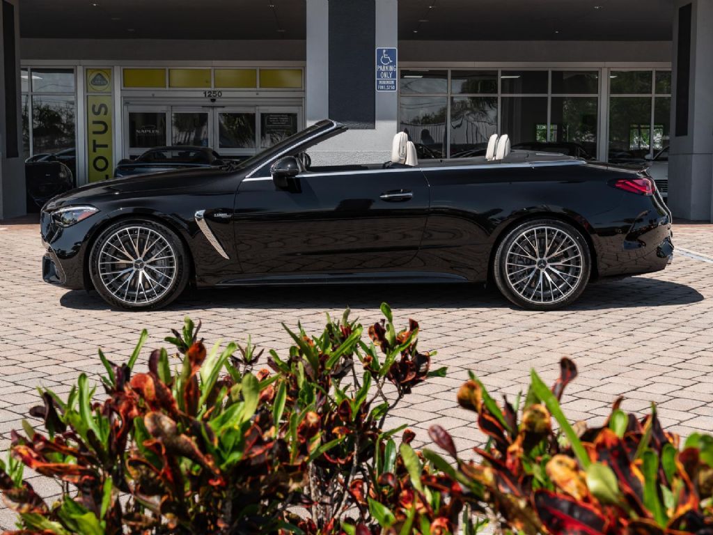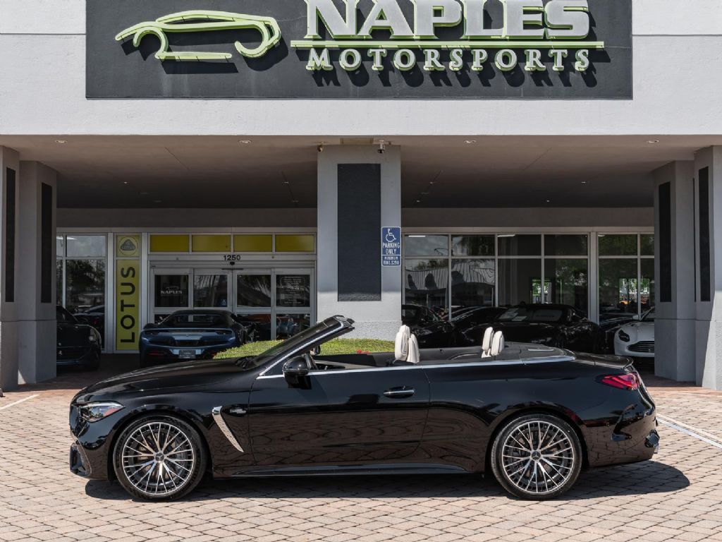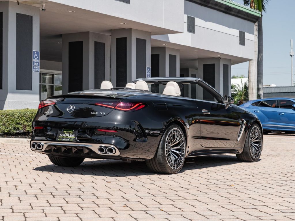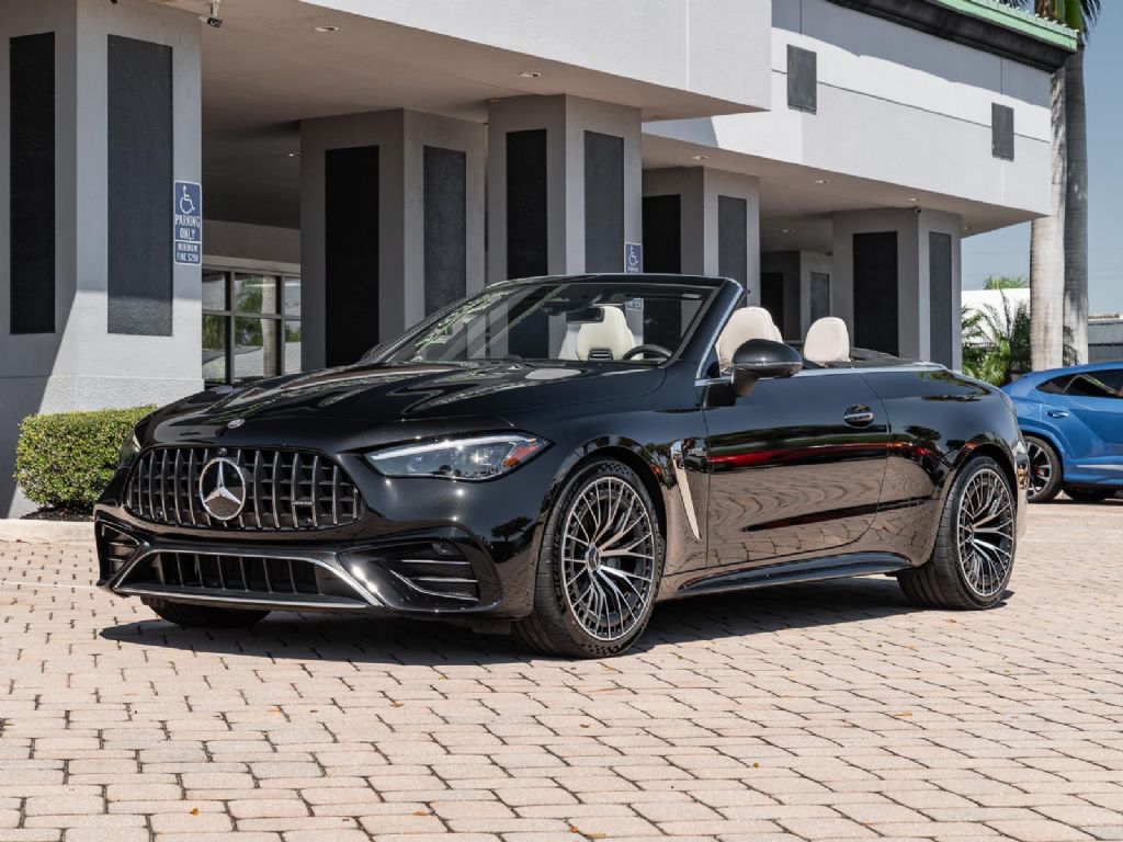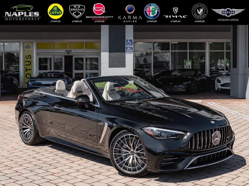 This 2025 Mercedes-Benz AMG CLE 53 finished in Obsidian Black Metallic over a Macchiato Beige interior with only 2,383 miles blends modern AMG performance with refined luxury in a sleek grand touring coupe platform. Power comes from an AMG enhanced 3.0 liter turbocharged inline 6 paired with a 48 volt mild hybrid system and electric auxiliary compressor, producing 443 horsepower and 413 lb ft of torque. Power is delivered through an AMG SPEEDSHIFT TCT 9 speed automatic transmission and the AMG Performance 4MATIC+ all wheel drive system, allowing the CLE 53 to accelerate from 0 to 60 mph in about 3.8 seconds while reaching a top speed electronically limited to 155 mph. Despite its substantial luxury equipment and advanced drivetrain technology, curb weight remains near 4,420 lbs, providing strong straight line performance and stable high speed touring capability.