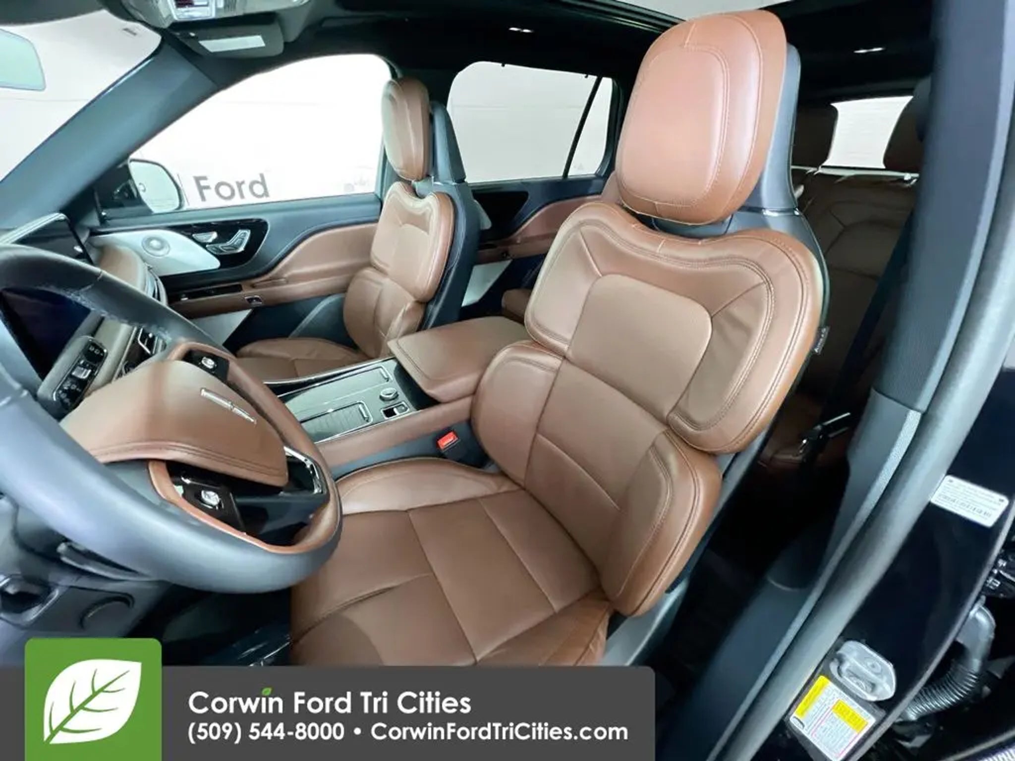 Our Accident Free 2025 Lincoln Aviator Reserve AWD with the Jet Appearance and Dynamic Handling Packages helps enrich your driving experience with premium details and a prestigious Infinite Black design! Powered by a Twin-TurboCharged 3.0 Liter V6 delivering 400hp to a 10 Speed Automatic transmission for true SUV capability. This All Wheel Drive SUV also smooths out your ride with an adaptive suspension and achieves nearly 24mpg on the highway. The exquisite exterior boasts a panoramic sunroof, adaptive LED headlamps, a power liftgate, quad-tipped dual exhaust, roof rails, and our Jet Pack for bold black upgrades highlighted by aggressive 22-inch alloy wheels. Our Reserve cabin is your sanctuary from the daily grind. It rewards you with heated/ventilated leather front and second-row seats, a PowerFold third row, a heated leather power steering wheel, quad-zone automatic climate control, and a remarkable range of technologies. An intelligent 13.2-inch touchscreen is command central for WiFi compatibility, Apple CarPlay®/Android Auto®, full-color navigation, Bluetooth®, Alexa compatibility, wireless charging, voice control, and Revel audio. Lincoln's hands-free BlueCruise compatibility leads the driver-assistance measures, which include a head-up display, front/rear automatic braking, front/rear parking sensors, a blind-spot monitor, a 360-degree camera, lane-keeping assistance, and more. Let our Lincoln Aviator Reserve take a leading role in your next adventure! Save this Page and Call for Availability. We Know You Will Enjoy Your Corwin Ford Tri-City Test Drive Towards Ownership! See us today at Corwin Ford Tri-Cities. Family owned for over 100 years! Excellent selection of New and Used vehicles, Financing options. Serving Pasco, Kennewick, Richland, Walla Walla, Hermiston, Umatilla, Yakima, Spokane, Sunnyside, Grandview, Dayton, Prescott, Benton County, Franklin County, Yakima County, Spokane County, Adams County, Grant County, and the Greater Columbia Basin. *All Prices plus applicable sales tax and licensing. A negotiable documentary service fee up to $200 may be added to sales price or capitalized cost of the vehicle. One vehicle unless otherwise noted and subject to prior sale without notice. While supplies last. EPA mileage estimates are for newly manufactured vehicles only. Your actual mileage will vary depending on how you drive and maintain your vehicle.