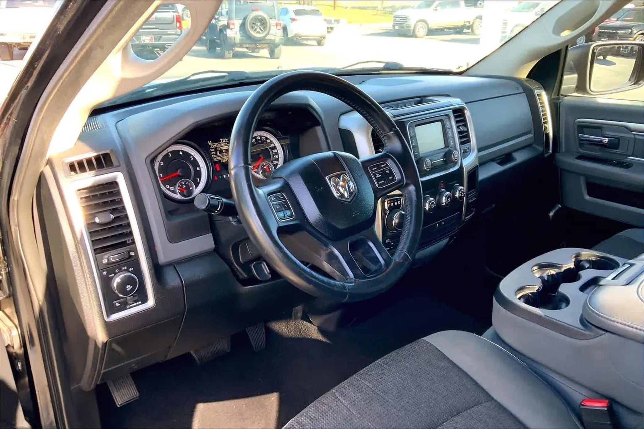 EPA 21 MPG Hwy/15 MPG City! Big Horn trim. Bluetooth®, iPod/MP3 Input, Satellite Radio, 4x4, Trailer Hitch, ENGINE: 5.7L V8 HEMI MDS VVT, TRANSMISSION: 8-SPEED AUTOMATIC (8HP7... QUICK ORDER PACKAGE 26Z BIG HORN, Chrome Wheels. KEY FEATURES INCLUDE 4x4, Satellite Radio, iPod/MP3 Input, Bluetooth®, Chrome Wheels Ram Big Horn with Black Clearcoat exterior and Diesel Gray/Black interior features a 8 Cylinder Engine with 305 HP at 6350 RPM*. OPTION PACKAGES ENGINE: 5.7L V8 HEMI MDS VVT GVWR: 6,900 lbs, Electronically Controlled Throttle, Heavy Duty Engine Cooling, Next Generation Engine Controller, Dual Rear Exhaust w/Bright Tips, Hemi Badge, Heavy Duty Transmission Oil Cooler, QUICK ORDER PACKAGE 26Z BIG HORN Engine: 5.7L V8 HEMI MDS VVT, Transmission: 8-Speed Automatic (8HP70), Full Size Temporary Use Spare Tire, Leather Wrapped Steering Wheel, Fog Lamps, Steering Wheel Mounted Audio Controls, Bright/Bright Billets Grille, Locking Lug Nuts, Electric Shift On Demand Transfer Case, Bighorn Badge, Class IV Receiver Hitch, Exterior Mirrors w/Supplemental Signals, Exterior Mirrors Courtesy Lamps, TRANSMISSION: 8-SPEED AUTOMATIC (8HP70). WHY BUY FROM US Buy with confidence at Group 1 where every used vehicle, up to 175,000 miles, comes with a one month 1,000-mile limited warranty along with a 3-day 250-mile exchange policy. Some exclusions may apply, see Buyers Guide for specifics. Every vehicle is priced to market and includes a Carfax History Report. EXPERTS RAVE Edmunds.coms review says The 2014 Ram 1500 is our top pick in the full-size pickup segment, thanks to a winning combination of strong powertrains, a smooth ride and a well-trimmed cabin.. WHY BUY FROM US Theres nothing we love more than supporting community events and giving back when and where we can. Horsepower calculations based on trim engine configuration. Fuel economy calculations based on original manufacturer data for trim engine configuration. Please confirm the accuracy of the included equipment by calling us prior to purchase.