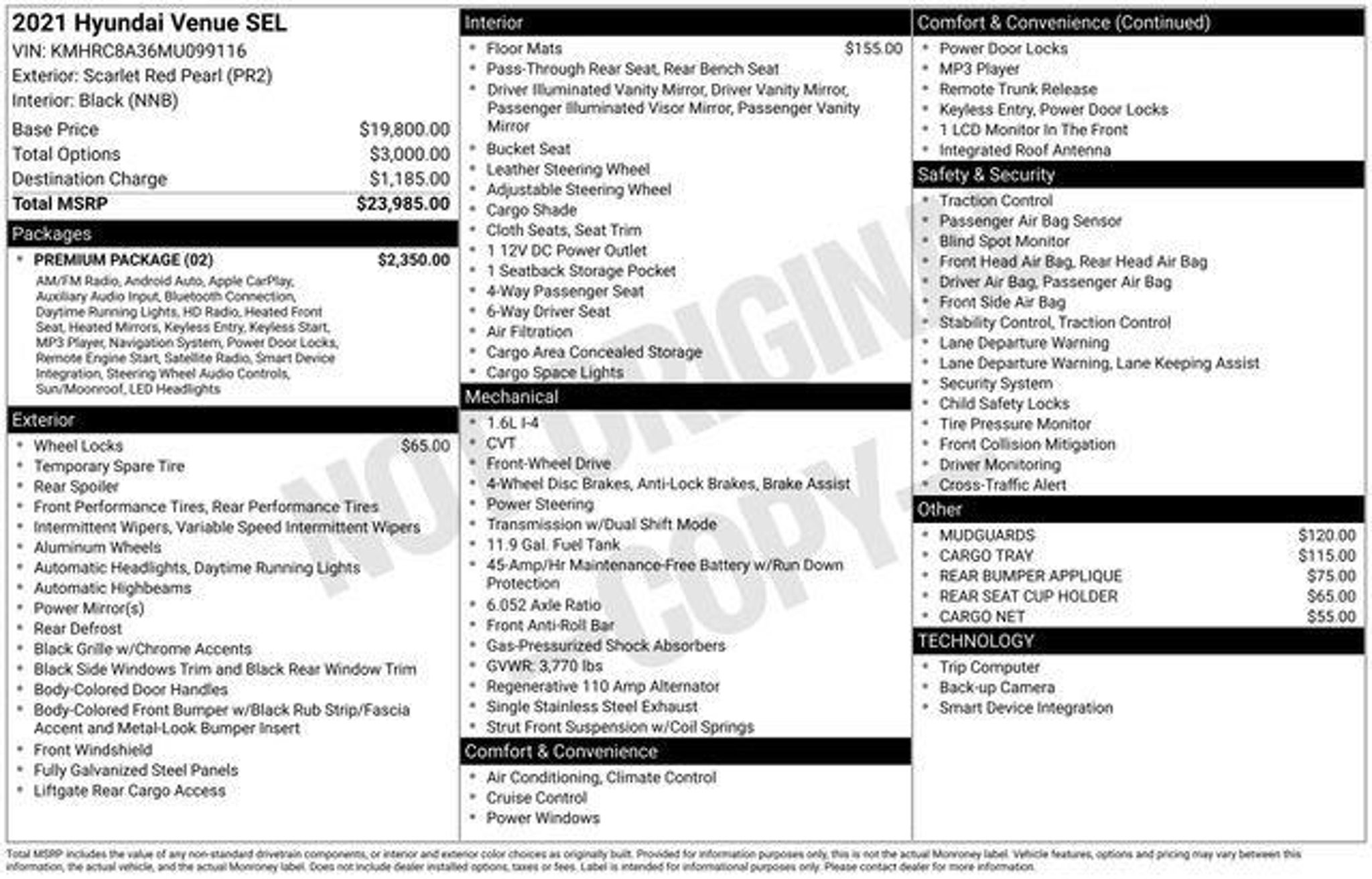 Certified. One Owner, Fresh Trade In, Local Trade In, Hyundai Factory Certified CPO Vehicle. 30/33 City/Highway MPGHyundai Certified Used Vehicles Details: * Includes 10-year/Unlimited Mileage Roadside Assistance with Rental Car and Trip Interruption Reimbursement; Please See Dealers for Specific Vehicle Eligibility Requirements. 10-Year/100,000 Mile Hybrid/EV Battery Warranty. 3-Months SiriusXM Trial Subscription. Complimentary 1 Year (Connected Care & Remote Pkgs). * Limited Warranty: 60 Month/60,000 Mile (whichever comes first) from original in-service date * Powertrain Limited Warranty: 120 Month/100,000 Mile (whichever comes first) from original in-service date * Roadside Assistance * 173 Point Inspection * Vehicle History * Warranty Deductible: $502021 Hyundai Venue Scarlet Red Pearl SEL I4At Korum, we provide our customers with real-time value pricing on every vehicle. How? We poll over 70,000 websites hourly to ensure our customers receive the BEST PRICES. We will never inflate vehicle prices or play pricing games as a part of our negotiation strategy with our customers.Located at the corner of River Road and Meridian in downtown Puyallup, WA, we have a large selection of cars, trucks and SUVs. Shop our huge selection of vehicles online or come visit us and take a test drive today. Limitations and exclusions apply. Any vehicle used for business or commercial purposes does not qualify. See dealer for complete details. Customer is responsible for sales tax, title, and license fee. A negotiable $200 documentation fee may be applied. Photos for illustration purposes only.