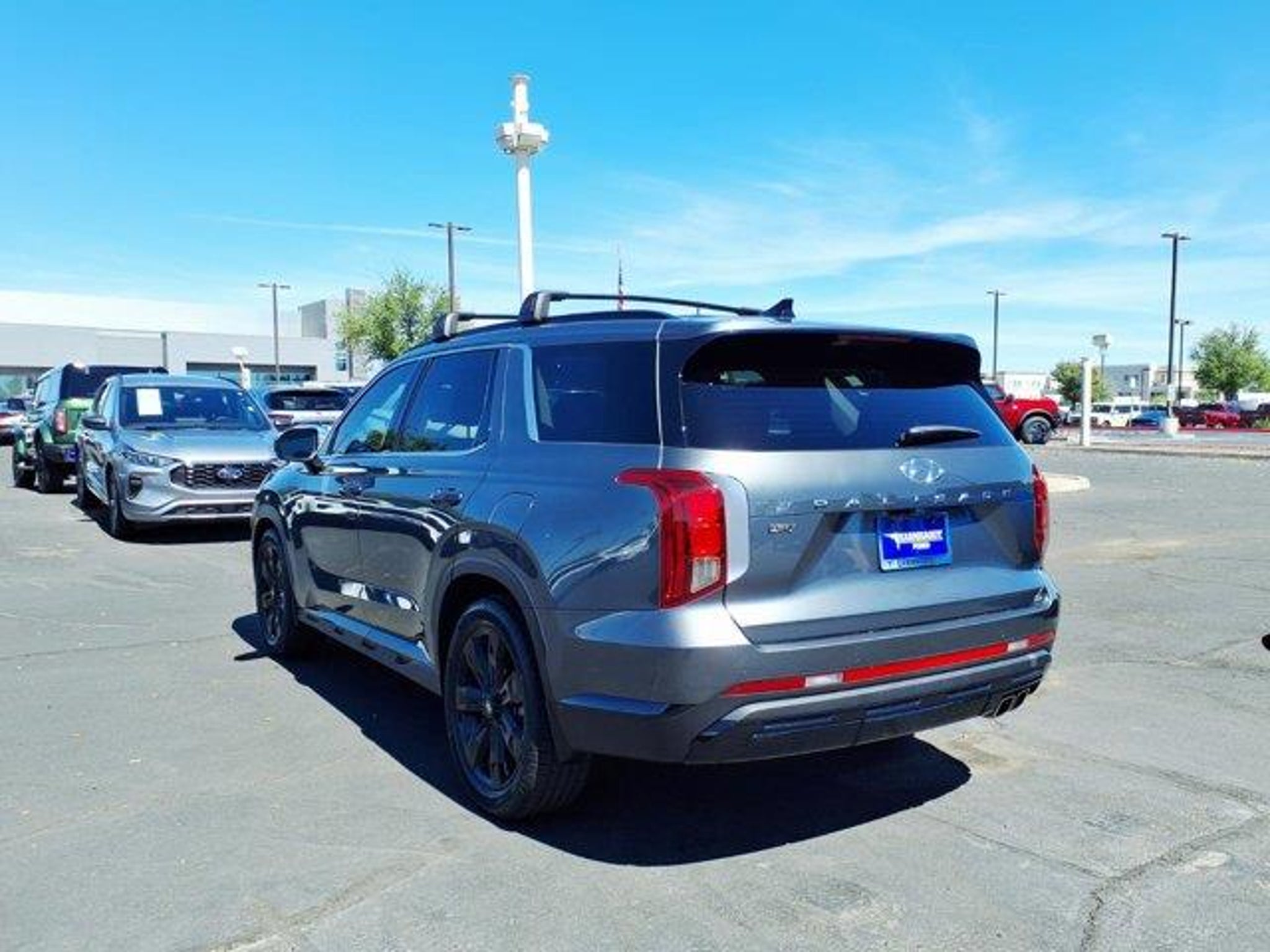 Steel Graphite 2024 Hyundai Palisade XRT FWD 8-Speed Automatic with SHIFTRONIC V6 3.510 Axle Ratio, 3rd row seats: split-bench, 4-Wheel Disc Brakes, 6 Speakers, ABS brakes, Air Conditioning, Alloy wheels, AM/FM radio: SiriusXM, Apple CarPlay & Android Auto, Auto High-beam Headlights, Auto-dimming door mirrors, Auto-dimming Rear-View mirror, Auto-leveling suspension, Automatic temperature control, Black Lug Nuts & Wheel Locks, Brake assist, Bumpers: body-color, Cargo Net, Cargo Tray, Carpeted Floor Mats, Delay-off headlights, Driver door bin, Driver vanity mirror, Dual front impact airbags, Dual front side impact airbags, Electronic Stability Control, Emergency communication system, Exterior Parking Camera Rear, First Aid Kit, Four wheel independent suspension, Front anti-roll bar, Front Bucket Seats, Front Center Armrest, Front dual zone A/C, Front reading lights, Fully automatic headlights, H-Tex Leatherette Seat Trim, Heated door mirrors, Heated Front Bucket Seats, Heated front seats, Illuminated entry, Knee airbag, Low tire pressure warning, Mudguards, Navigation System, Occupant sensing airbag, Option Group 01, Outside temperature display, Overhead airbag, Overhead console, Panic alarm, Passenger door bin, Passenger vanity mirror, Power door mirrors, Power driver seat, Power Liftgate, Power moonroof, Power passenger seat, Power steering, Power windows, Radio data system, Radio: AM/FM/MP3 Audio System, Rear air conditioning, Rear anti-roll bar, Rear audio controls, Rear reading lights, Rear side impact airbag, Rear window defroster, Rear window wiper, Reclining 3rd row seat, Remote keyless entry, Roof rack, Security system, Speed control, Speed-sensing steering, Split folding rear seat, Spoiler, Steering wheel mounted audio controls, Tachometer, Telescoping steering wheel, Tilt steering wheel, Traction control, Trip computer, Turn signal indicator mirrors, Variably intermittent wipers, Wheels: 20 x 7.5J Dark Alloy w/Rugged Styling.Odometer is 8678 miles below market average! 19/26 City/Highway MPG