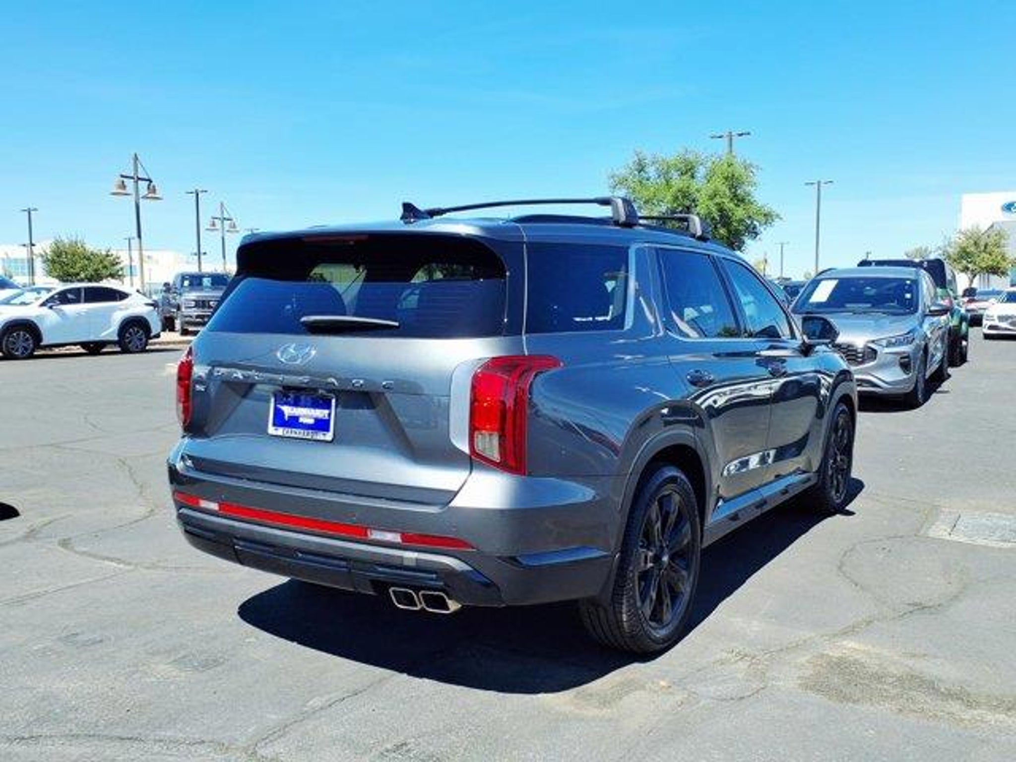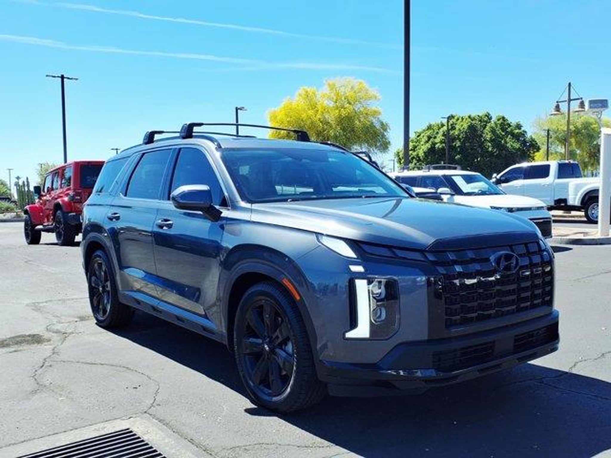 Steel Graphite 2024 Hyundai Palisade XRT FWD 8-Speed Automatic with SHIFTRONIC V6 3.510 Axle Ratio, 3rd row seats: split-bench, 4-Wheel Disc Brakes, 6 Speakers, ABS brakes, Air Conditioning, Alloy wheels, AM/FM radio: SiriusXM, Apple CarPlay & Android Auto, Auto High-beam Headlights, Auto-dimming door mirrors, Auto-dimming Rear-View mirror, Auto-leveling suspension, Automatic temperature control, Black Lug Nuts & Wheel Locks, Brake assist, Bumpers: body-color, Cargo Net, Cargo Tray, Carpeted Floor Mats, Delay-off headlights, Driver door bin, Driver vanity mirror, Dual front impact airbags, Dual front side impact airbags, Electronic Stability Control, Emergency communication system, Exterior Parking Camera Rear, First Aid Kit, Four wheel independent suspension, Front anti-roll bar, Front Bucket Seats, Front Center Armrest, Front dual zone A/C, Front reading lights, Fully automatic headlights, H-Tex Leatherette Seat Trim, Heated door mirrors, Heated Front Bucket Seats, Heated front seats, Illuminated entry, Knee airbag, Low tire pressure warning, Mudguards, Navigation System, Occupant sensing airbag, Option Group 01, Outside temperature display, Overhead airbag, Overhead console, Panic alarm, Passenger door bin, Passenger vanity mirror, Power door mirrors, Power driver seat, Power Liftgate, Power moonroof, Power passenger seat, Power steering, Power windows, Radio data system, Radio: AM/FM/MP3 Audio System, Rear air conditioning, Rear anti-roll bar, Rear audio controls, Rear reading lights, Rear side impact airbag, Rear window defroster, Rear window wiper, Reclining 3rd row seat, Remote keyless entry, Roof rack, Security system, Speed control, Speed-sensing steering, Split folding rear seat, Spoiler, Steering wheel mounted audio controls, Tachometer, Telescoping steering wheel, Tilt steering wheel, Traction control, Trip computer, Turn signal indicator mirrors, Variably intermittent wipers, Wheels: 20 x 7.5J Dark Alloy w/Rugged Styling.Odometer is 8678 miles below market average! 19/26 City/Highway MPG