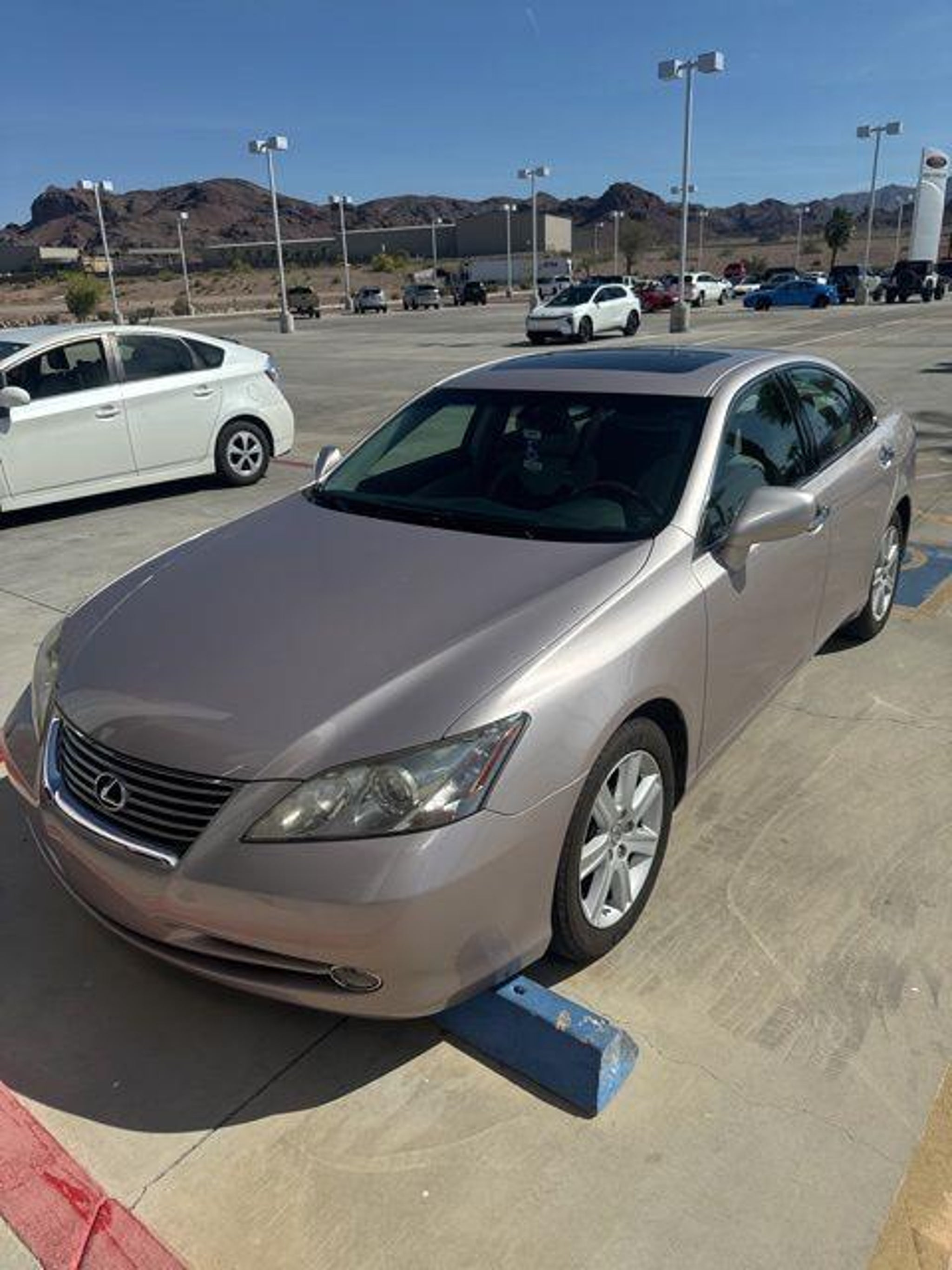 2007 Lexus ES 350 V6 Moon Shell Mica With its Moon Shell Mica gray exterior and well-appointed interior, this sophisticated sedan is the embodiment of Lexus' commitment to exceptional craftsmanship and attention to detail. - AM/FM 6-Disc In-Dash CD Changer - Front dual zone A/C - Steering wheel mounted audio controls - Power moonroof - Brake assist - Speed control - Telescoping steering wheel - 10-Way Power Front Bucket Seats - Heated & Ventilated Front Seats - Alloy wheels Powered by a 3.5L V6 DOHC Dual VVT-i 24V engine, this ES 350 delivers an impressive 21 MPG in the city and 30 MPG on the highway, ensuring a rewarding and efficient driving experience. The 6-Speed Automatic Electronic transmission provides seamless acceleration and responsive handling, making this Lexus a true pleasure to pilot. Beyond the exceptional performance, this ES 350 is brimming with a wealth of premium features that elevate the driving experience. Enjoy the convenience of dual-zone climate control, the security of a comprehensive safety suite, and the connectivity of advanced infotainment technologies. The spacious and well-appointed interior offers ample room for both you and your passengers to relax and unwind in absolute comfort. Visit Anderson Toyota today or give our friendly sales staff a call to schedule your test drive, . WHY BUY FROM ANDERSON: All Anderson pre-owned vehicles include a 3-month or 3,000 mile powertrain limited warranty and one-year/15,000 mile (whichever occurs first) vehicle maintenance plan when the vehicle is serviced at an Anderson Auto Group dealership. Out of town customers will be accommodated with free shuttle service from Las Vegas and Phoenix airports and if an overnight stay is needed, discounted nightly rates are available from local hotels. We welcome you to come in and enjoy a positive buying experience and look forward to you joining the Anderson family of customers. DISCLAIMER: Prices, options, specifications and images shown are subject to certain qualifications and availability. Pricing information is not final and may not include taxes, registration, finance and purchase fees. Please confirm vehicle availability and pricing information by calling us at or emailing our internet sales department at . Some exclusions apply, see store for details.