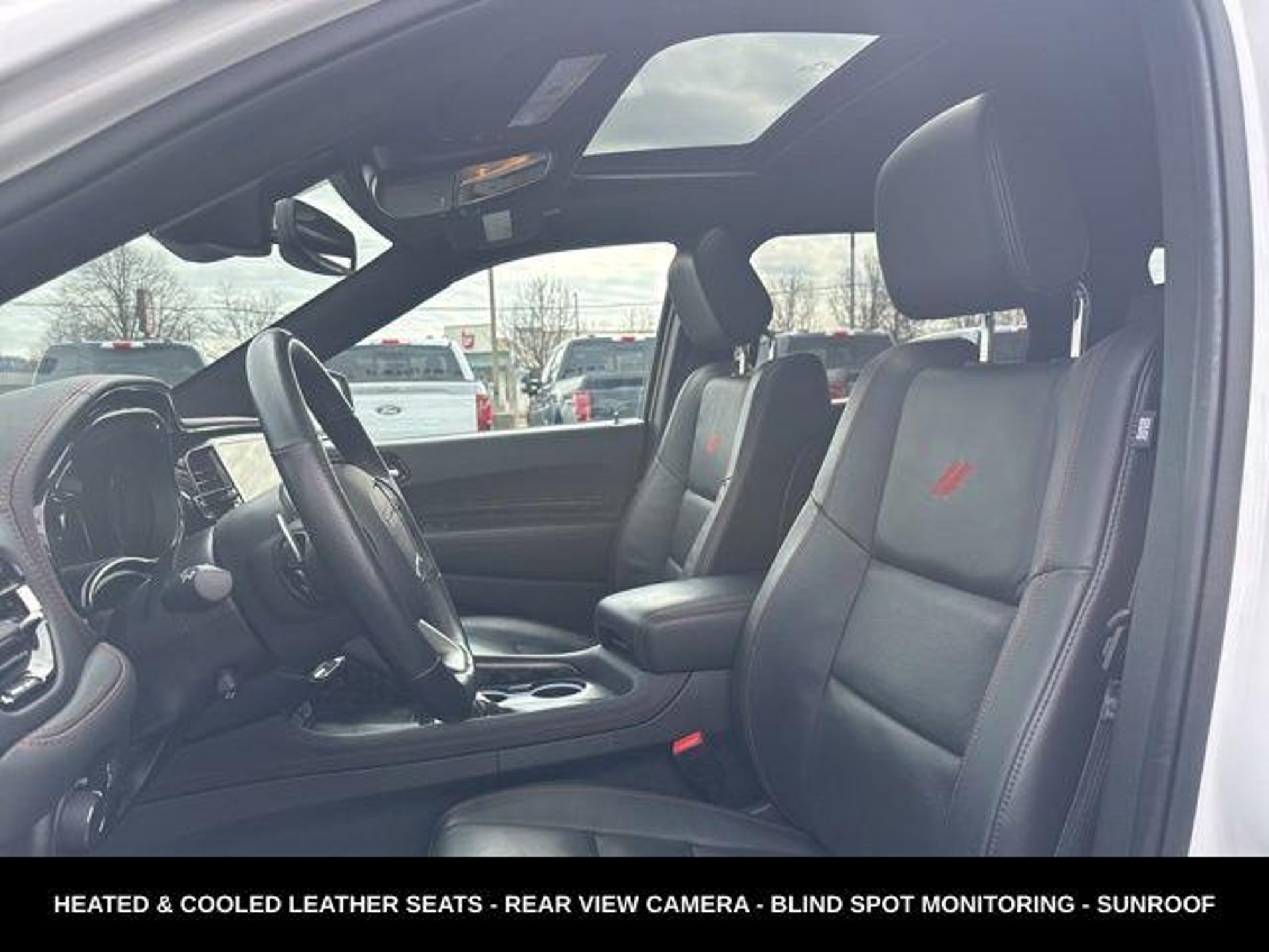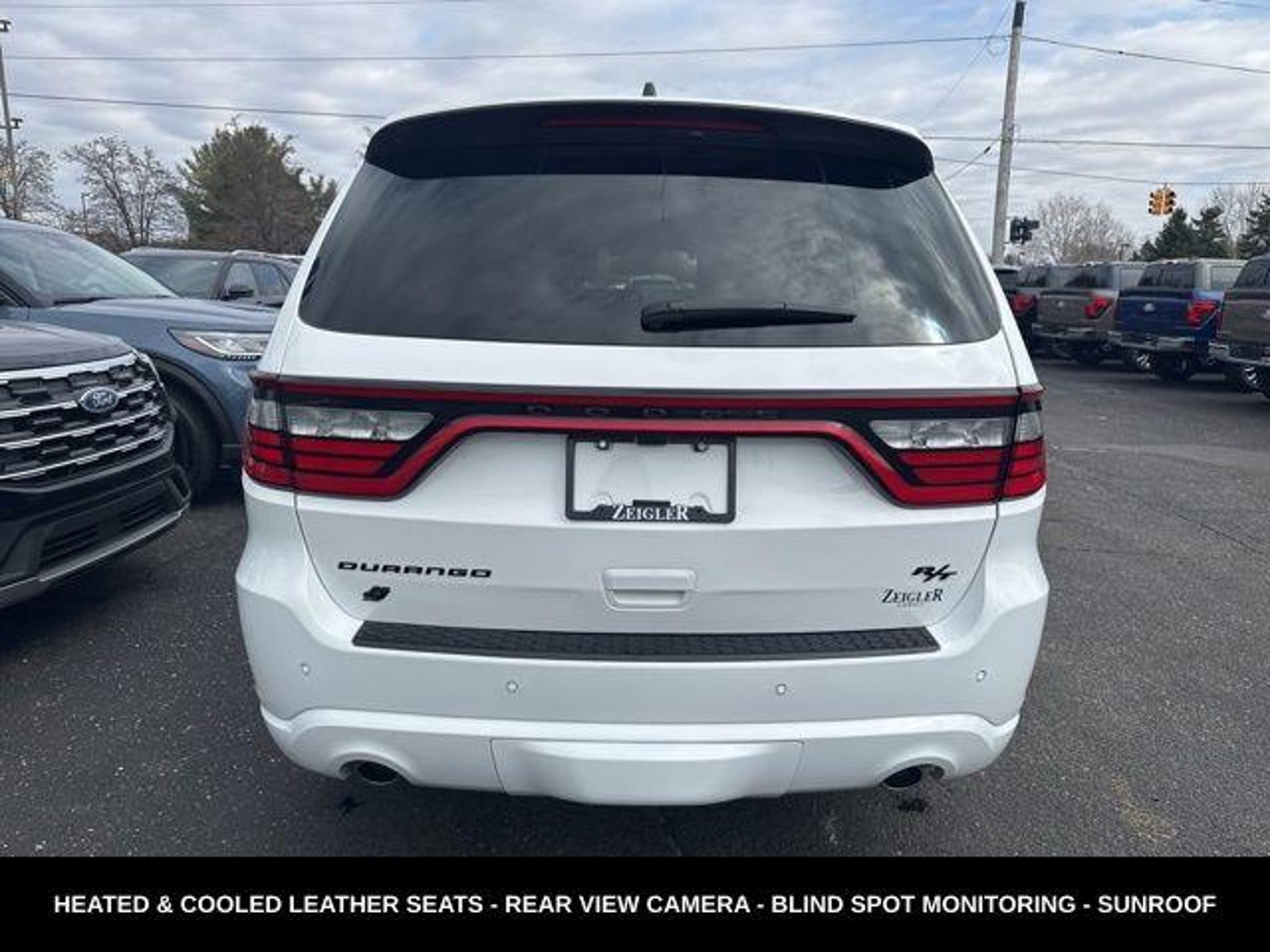 **5.7L V8 ENGINE**BLACKTOP PACKAGE WITH BLACK WHEELS AND ACCENTS**ALL WHEEL DRIVE**ADAPTIVE CRUISE CONTROL**HEATED AND COOLED FRONT SEATS**HEATED STEERING WHEEL**HEATED REAR SEATS**POWER MOONROOF**RUNNING BOARDS**POWER LIFTGATE**FULLY INSPECTED AND SERVICED**White Knuckle Clearcoat 2024 Dodge Durango R/T Plus BLACKOUT PACKAGE AWD 8-Speed Automatic HEMI 5.7L V8 Multi Displacement VVT *MOONROOF, *NAVIGATION, *FULLY SERVICED, *REMOTE START, *LEATHER HEATED SEATS, AWD, 115V Auxiliary Power Outlet, 19 harman/kardon Amplified Speakers w/Subwoofer, 7 & 4 Pin Wiring Harness, 825 Watt Amplifier, ABS brakes, Adaptive Cruise Control w/Stop, Advanced Brake Assist, Alloy wheels, Auto-Dimming Exterior Driver Mirror, Black Roof Rails, Blacktop Package, Blind Spot w/Trailer Detection, Bright Cargo Area Scuff Pads, Class IV Receiver Hitch, Compass, Dual Remote USB Port - Charge Only, Electronic Stability Control, Emergency communication system, Exterior Mirrors w/Heating Element, Exterior Mirrors w/Memory, Exterior Mirrors w/Supplemental Signals, Floor Console w/Leather Armrest, Forged Carbon Fiber Interior Accents, Front dual zone A/C, Full Speed Forward Collision Warning Plus, Gloss Black Badges, Gloss Black Exterior Mirrors, Heated door mirrors, Heated front seats, Heated Second Row Seats, Illuminated entry, Integrated Roof Rail Crossbars, Lane Departure Warning Plus, Leather Trimmed Bucket Seats, Leather Wrapped Door Panels, LED Auxiliary Low Beam & Turn Signal, Low tire pressure warning, ParkView Rear Back-Up Camera, Power 6x9 Multi-Function Foldaway Mirrors, Power 8-Way Driver Memory 8-Way Passenger Seats, Power Liftgate, Power Sunroof, Power Tilt & Telescopic Steering Column, Premium Instrument Panel, Quick Order Package 22U R/T Premium, Radio/Driver Seat/Mirrors Memory, Red Accent Stitching, Remote keyless entry, Satin Black Dodge Tail Lamp Badge, Suede Headliner, Traction control, Trailer Brake Control, Ventilated Front Seats. YOUR BEST PRICE on ANY NEW FORD is Always at Zeigler Ford-Lowell. HOME OF THE BEST PRICE GUARANTEE ON ANY NEW FORD & GET THE MOST MONEY FOR YOUR TRADE! Recent Arrival! At Zeigler Ford, Home of the BEST PRICE GUARANTEE & GUARANTEED FINANCING, we take pride in treating our customers like family, ensuring that your experience is one that you will never forget. Every vehicle has been through a 172 point safety inspection completed by a certified technician and fully detailed. Pre-Owned Ford Vehicles 2017-2016-2015-2014-2013-2012-2011-2010 Ford Escapes, Fusions, Focus, Edges, Flex, F- Series