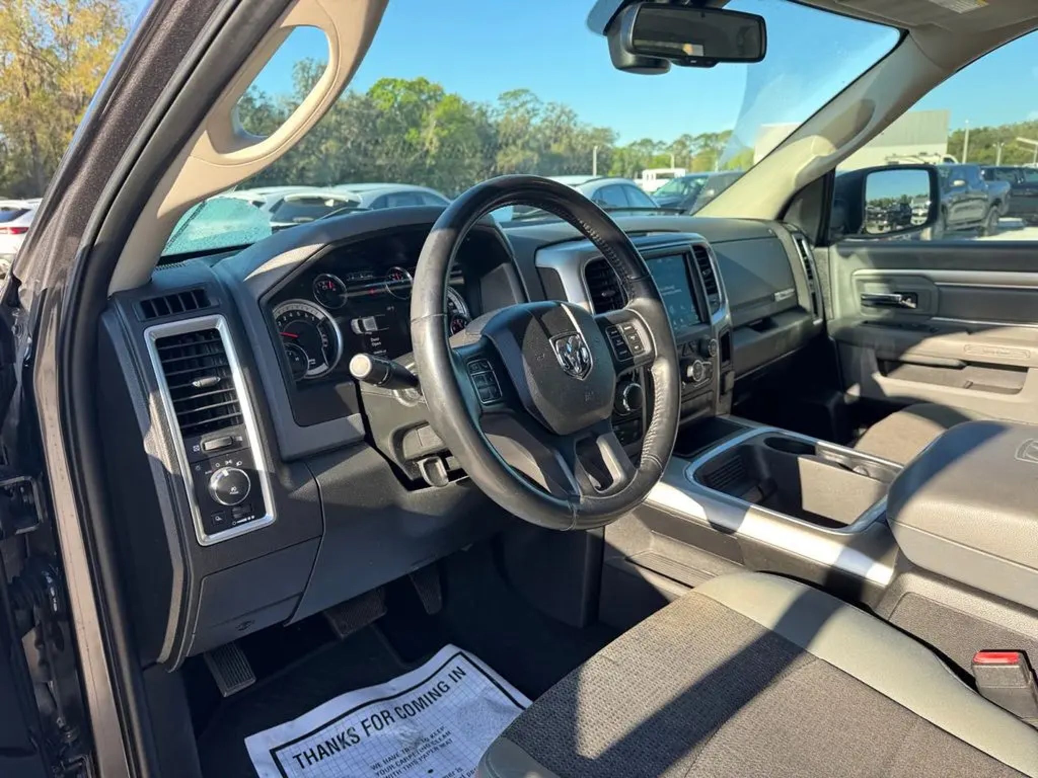 Recent Arrival! CARFAX One-Owner. Murray Ford Superstore of Starke is excited to offer this great-looking 2018 Ram 1500 in Granite Crystal Metallic Clearcoat This vehicle is readily available and comes with the following Big Horn Regional Package, Quick Order Package 27S Big Horn (1-Yr SiriusXM Guardian Trial, 115V Auxiliary Power Outlet, 40/20/40 Split Bench Seat, 8.4 Touchscreen Display, Apple CarPlay, Auto-Dimming Exterior Mirrors, Auto-Dimming Rear-View Mirror, Big Horn Badge, Bright/Bright Billets Grille, Charge Only Remote USB Port, Class IV Receiver Hitch, Dual Rear Exhaust w/Bright Tips, Electric Shift-On-Demand Transfer Case, Electroluminescent Instrument Cluster, Exterior Mirrors Courtesy Lamps, Exterior Mirrors w/Supplemental Signals, Folding Flat Load Floor Storage, Front Armrest w/3 Cupholders, Front Center Seat Cushion Storage, Front Fog Lamps, Glove Box Lamp, Google Android Auto, GPS Antenna Input, HD Radio, Integrated Voice Command w/Bluetooth, Leather Wrapped Steering Wheel, LED Bed Lighting, Media Hub (2 USB, AUX), Overhead Console w/Garage Door Opener, ParkSense Rear Park Assist System, Power 10-Way Driver Seat, Power Heated Fold-Away Mirrors, Power Lumbar Adjust, Power-Folding Mirrors, Premium Cloth 40/20/40 Bench Seat, Radio: Uconnect 4C w/8.4 Display, Rear 60/40 Split Folding Seat, Rear Dome w/On/Off Switch Lamp, Remote Start System, Security Alarm, SiriusXM Satellite Radio, Steering Wheel Mounted Audio Controls, Sun Visors w/Illuminated Vanity Mirrors, Universal Garage Door Opener, USB Host Flip, and Wheels: 20 x 8 Aluminum Chrome Clad), Ford Blue Advantage: Blue Certified Certified, 3.92 Rear Axle Ratio, 4-Wheel Disc Brakes, 6 Speakers, ABS brakes, Active Grille Shutters, Air Conditioning, Alloy wheels, AM/FM radio: SiriusXM, Anti-Spin Differential Rear Axle, Black Exterior Mirrors, Brake assist, Bumpers: chrome, Center Hub, Class IV Receiver Hitch (DISC), Compass, Delay-off headlights, Driver door bin, Dual front impact airbags, Dual front side impact airbags, Electronic Shift, Electronic Stability Control, Exterior Mirrors w/Heating Element, Front & Rear Rubber Floor Mats, Front anti-roll bar, Front Center Armrest w/Storage, Front reading lights, Front wheel independent suspension, Fully automatic headlights, Heated door mirrors, Illuminated entry, Low tire pressure warning, Manufacturer's Statement of Origin, Occupant sensing airbag, Outside temperature display, Overhead airbag, Overhead console, Panic alarm, ParkView Rear Back-Up Camera, Passenger door bin, Passenger vanity mirror, Power door mirrors, Power steering, Power windows, Radio data system, Rear anti-roll bar, Rear step bumper, Remote keyless entry, Speed control, Tachometer, Tilt steering wheel, Tip Start, Traction control, Trip computer, Variably intermittent wipers, Voltmeter, and Wheel to Wheel Side Steps; Certification Program Details: Ford Blue Advantage: Blue Certified * 139 Point Inspection * Transferable Warranty * Vehicle History * Warranty Deductible: $100 * Roadside Assistance * Limited Warranty: 3 Month/4,000 Mile (whichever comes first) after new car warranty expires or from certified purchase date * and 11,000 FordPass Rewards Points to use toward first maintenance visit 15 Year 150,000 mile warranty at no cost applies to all vehicles excluding Transit Vans, DRW Trucks, any SVT Models, or similar vehicles. See sales for details! All vehicles will have a $999.00 dealer fee added to the total sale price (excludes A,Z,D, and X plan customers). Taxes, tag, title fees and a $125 Electronic filling fee will be added to all vehicles in accordance with state laws of customers registering address. *** We make every effort to provide you with the most accurate, up-to-the-minute information, however it is your responsibility to verify with the Dealer that all details listed and installed options are accurate for this specific vehicle. To ensure accuracy, please contact the dealership to verify the exact options, features and prog