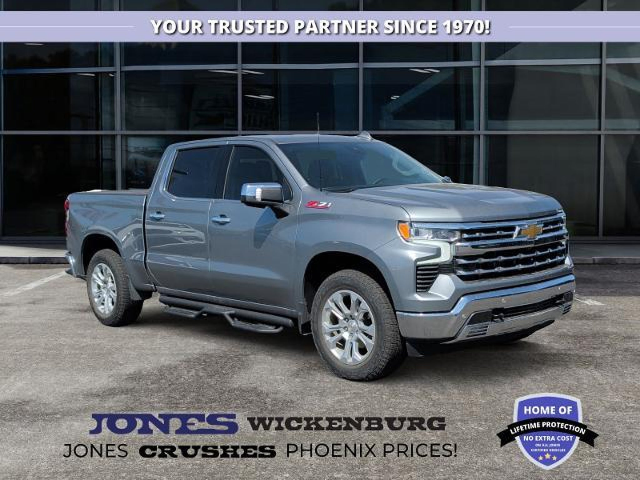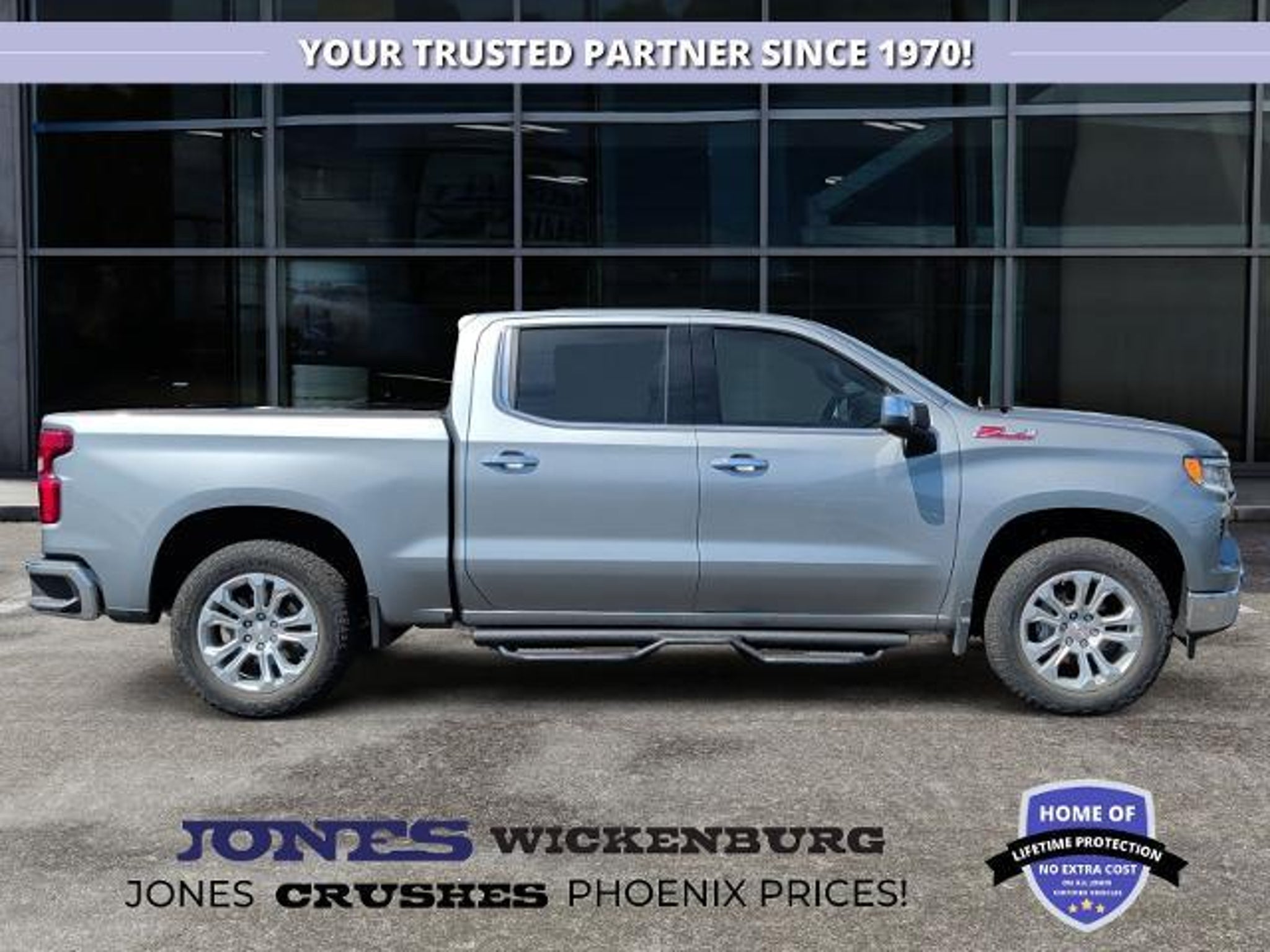 2024 Chevrolet Silverado 1500 4WD Premium Power, Trail Ready Confidence, Everyday Luxury Available now at Jones Ford CJDR Wickenburg If you're looking for a truck that feels just as confident heading offroad as it does pulling into town, the 2024 Chevrolet Silverado 1500 4WD delivers an experience that's powerful, polished, and built around real life. This Silverado doesn't just look the part it backs it up with capability you can feel the moment you take the wheel. Underneath its bold stance is an off-road tuned suspension and increased rear gross axle weight rating, giving you enhanced stability and control whether you're hauling, towing, or exploring dirt roads outside Wickenburg. Add in four-wheel drive and front frame mounted recovery hooks, and you've got a truck ready for changing terrain and unexpected challenges. Inside, the Silverado surrounds you with comfort that feels noticeably upscale. Perforated leather appointed seats with both heated and ventilated front seating keep you comfortable year-round, while second row heated outboard seats ensure passengers are just as relaxed. The 10way power driver and passenger seats with lumbar support make long drives feel effortless, adjusting perfectly to you. Technology takes center stage with the Chevrolet Infotainment 3 Premium system, paired with a Bose 7speaker premium sound system and SiriusXM with 360L. Every drive comes with rich sound, seamless connectivity, and intuitive controls right at your fingertips. Multiple USB ports front and rear keep everyone powered and connected. When it's time to tow, this Silverado shines. Integrated trailer brake control, hitch guidance with hitch view, HD Surround Vision, and the in-vehicle trailering system app work together to make hooking up and hauling far less stressful. Advanced safety features like Forward Collision Alert, Lane Keep Assist, and Following Distance Indicator add extra peace of mind every mile. At Jones Ford CJDR Wickenburg, we believe a truck this well-equipped deserves a buying experience to match honest pricing, friendly faces, and zero pressure. Ready to experience the 2024 Chevrolet Silverado 1500 4WD for yourself? Contact us today, visit our showroom, or schedule a test drive. Trucks this capable and refined dont stay available for long.