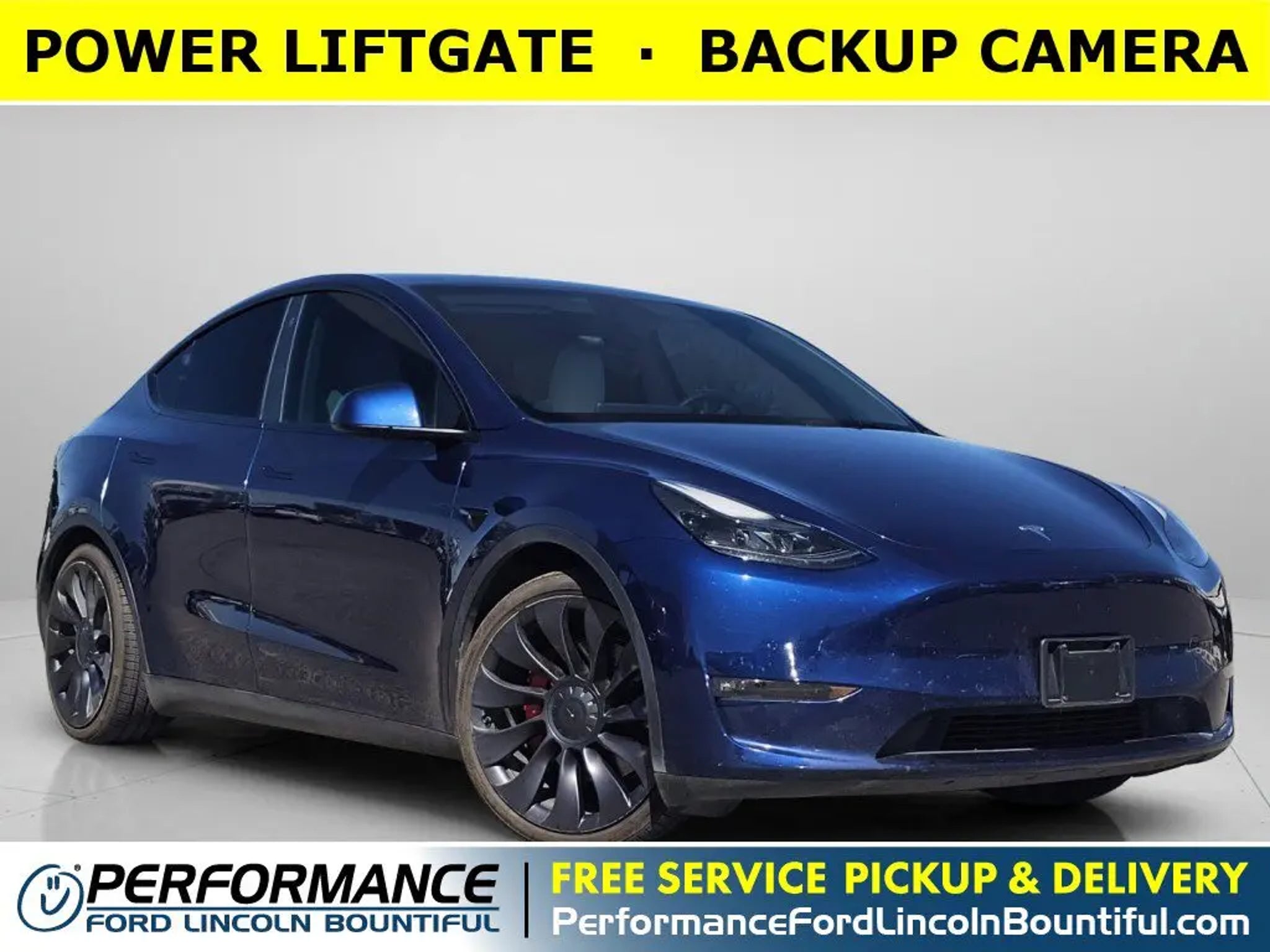 This *2021 Tesla Model Y Performance* is loaded with convenient features like POWER LIFTGATE, HEATED SEATS, NAVIGATION, ALLOY-WHEELS, BACKUP CAMERA, LANE DEPARTURE WARNING, POWER SEAT, FOG LAMPS, Remote Entry.This stunning *2021 Tesla Model Y Performance* features a beautiful *Blue* exterior and a *White/black* interior.Compare, adjust and save your payment options on every vehicle in stock at: PerformanceFordBountiful.comHeated Steering Wheel, Heated Rear Seats, Automatic Climate Control, Steering Wheel Climate Control, Memory Seats, Compass, Woodgrain Trim, Air Conditioning, Telescoping Wheel, Memory Mirrors, Steering Wheel Audio Controls, Illuminated entry, Bucket Front Seats, Rear Reading Lights, Center Console Storage, Auto Dimming R/V Mirror, Rear Seat Center Armrest, Multi-zone Climate Control, Split Folding Rear Seat, Center Armrest, Trip Odometer, Reading Lights, Vanity Mirrors, Rear Window Defroster, Outside Temperature Gauge, Tilt Steering Wheel.*Safety and Economy Features Include:* Rain Sensing Wipers, Electronic Stability Control, Back-Up Camera, Aftermarket Anti Theft System, Security System, Brake Assist, Knee AirBag, Overhead airbag, Auto Highbeams, Tire Pressure Monitoring System, Dual Air Bags, Speed Sensitive Power Steering, ABS Brakes, Auto-Dimming Door Mirrors, Delay-off headlights, Driver Front Side Impact Air Bag, Passenger Air Bag Sensor, Low tire pressure warning.This vehicle has an EPA rated fuel economy of 0.0 highway / 0.0 city1.Performance Ford Lincoln Bountiful proudly offer our customers at-home services including *Performance Valet*! When you purchase from Performance Ford Lincoln Bountiful, you will be eligible for *FREE Pickup & Delivery*^ for your future service appointments! We value your time and that's why want to give you the best buying and service experiences in Bountiful! Also, ask your product specialist about our home test drives and deliveries. Save time and money through our exclusive Performance Remote Services! Distance limitations may apply.Our dealership is conveniently located off Exit 315 on I-15, North of Salt Lake City. We proudly serve the communities of Bountiful, Centerville, North Salt Lake, Farmington, Salt Lake City, Kaysville, South Salt Lake, Layton, Canyon Rim, Millcreek, West Valley City, Murray, Holladay, Taylorsville, and Syracuse. As a proud member of the family-owned Performance Automotive Network, we have access to thousands of new and used vehicles. This gives us the ability to find the perfect vehicle to fit your needs and budget.*Need financing assistance?* Our strong, group-wide relationships with several lending institutions allow us to offer the most competitive rates! We will give you top-dollar for your trade or make you a cash offer if you'd prefer the convenience of selling directly.With our aggressive pricing strategy, most vehicles sell within the first few weeks, so please contact us ahead of time at * * to ensure the vehicle is still available and ready for your test drive.*We'll Put A Smile On Your Face! *1Based on EPA mileage ratings. Use for comparison purposes only. Your mileage will vary depending on driving conditions, how you drive and maintain your vehicle, etc.*Terms and conditions of warranties vary by brand and vehicle. See dealer for complete details or sign in to download a copy of your vehicle's warranty. Warranty may be restricted or denied if your vehicle or part has been modified, improperly maintained or removed.Delivery to door for Test Drive.