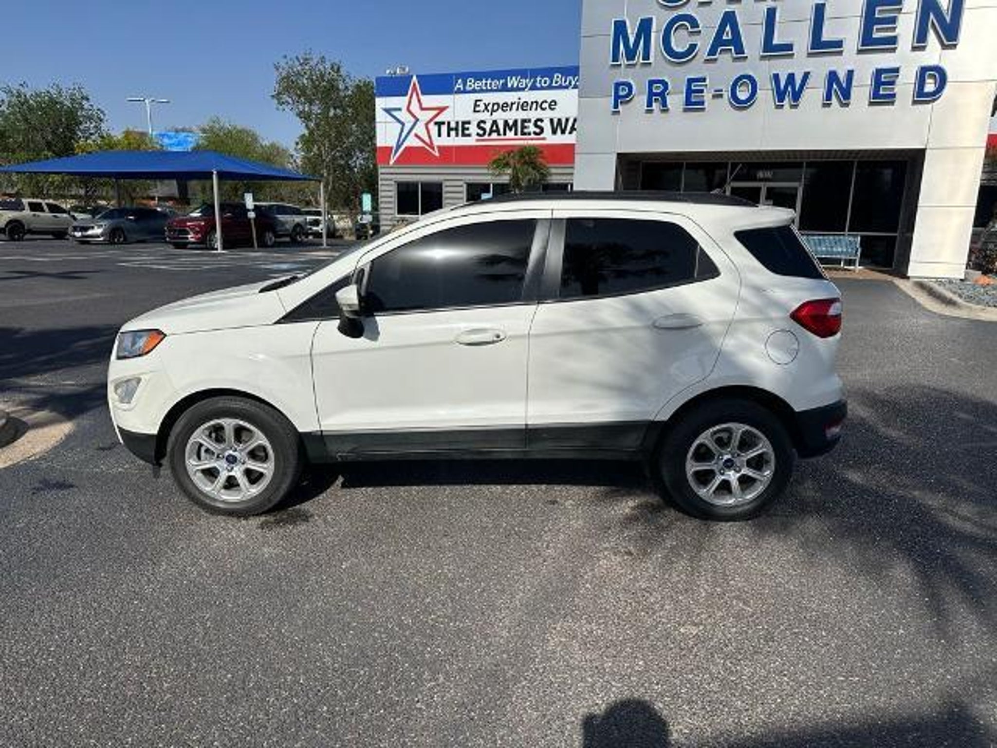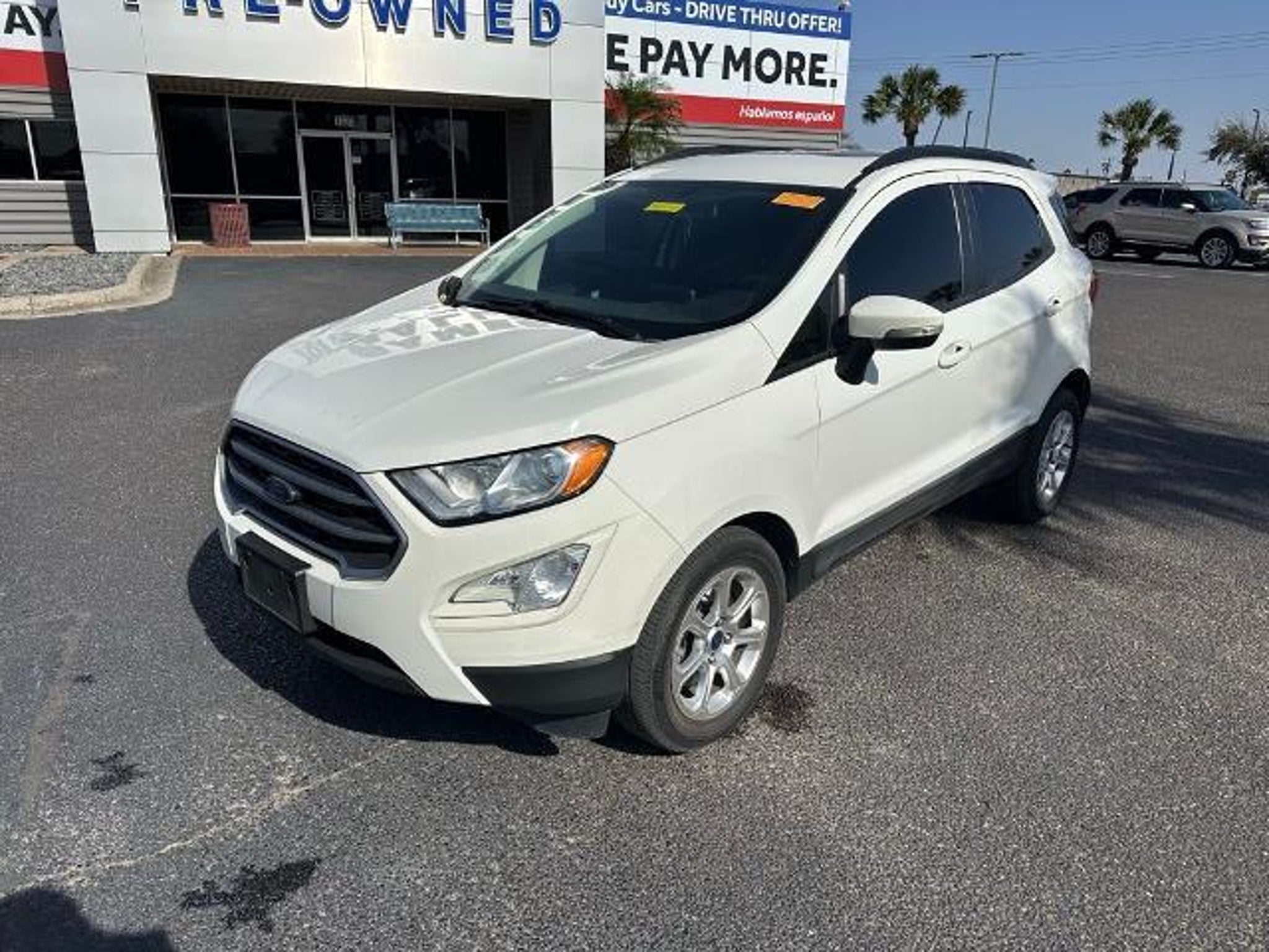 This 2018 Ford EcoSport SE in Diamond White comes with the following features: EcoBoost 1.0L I3 GTDi DOHC Turbocharged VCT 6-Speed Automatic FWD Equipment Group 200A, 4-Wheel Disc Brakes, 6 Speakers, ABS brakes, Air Conditioning, Alloy wheels, AM/FM radio: SiriusXM, AppLink/Apple CarPlay and Android Auto, Automatic temperature control, Axle Ratio: 3.44, Brake assist, Bumpers: body-color, Compass, Delay-off headlights, Driver door bin, Driver vanity mirror, Dual front impact airbags, Dual front side impact airbags, Electronic Stability Control, Emergency communication system: SYNC 3 911 Assist, Exterior Parking Camera Rear, Front anti-roll bar, Front Bucket Seats, Front Center Armrest, Front fog lights, Front reading lights, Front wheel independent suspension, Fully automatic headlights, Heated front seats, Illuminated entry, Knee airbag, Leather Shift Knob, Leather steering wheel, Low tire pressure warning, Occupant sensing airbag, Outside temperature display, Overhead airbag, Overhead console, Panic alarm, Passenger door bin, Passenger vanity mirror, Power door mirrors, Power driver seat, Power moonroof, Power steering, Power windows, Radio data system, Radio: AM/FM Stereo w/MP3 Capable, Rear Parking Sensors, Rear seat center armrest, Rear side impact airbag, Rear window defroster, Rear window wiper, Remote keyless entry, Roof rack: rails only, SiriusXM Radio, Speed control, Speed-sensing steering, Split folding rear seat, Steering wheel mounted audio controls, SYNC 3 Communications & Entertainment System, Tachometer, Telescoping steering wheel, Tilt steering wheel, Tire Inflator & Sealant Kit, Traction control, Trip computer, Turn signal indicator mirrors, Unique Cloth Heated Bucket Seats, Variably intermittent wipers, and Wheels: 16 Shadow Silver-Painted Aluminum. Sames Auto Group stores have been in business for over 115 years, as part of the Oldest Auto Group in Texas we're committed to providing exceptional service before, during, and after your purchase. Our expert team at Sames Ford Lincoln of McAllen will ensure you drive away completely satisfied. Schedule your virtual consultation or test drive today. No hassle remote delivery to Houston, Austin and San Antonio and the rest of Texas available upon request. Awards: * 2018 KBB.com 10 Most Awarded Brands * 2018 KBB.com Brand Image Awards