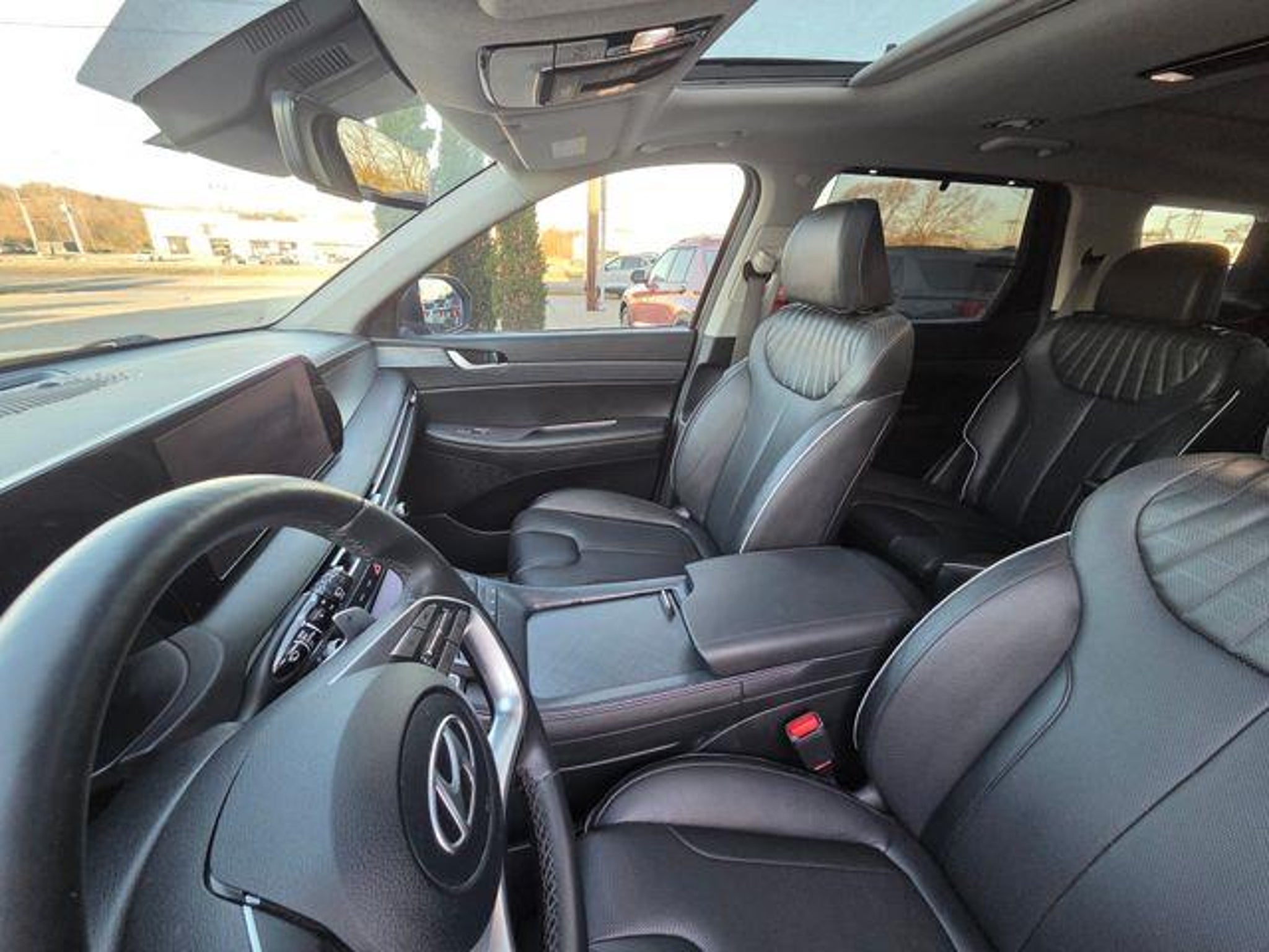 Recent Arrival! 2024 Hyundai Palisade Limited ONE OWNER, CLEAN CARFAX, LOCAL TRADE, NAVIGATION, LEATHER SEATS, HEATED/COOLED SEATS, BLUETOOTH, REAR VIEW CAMERA, KEYLESS ENTRY, SATELLITE RADIO, Backup Camera, ALL WHEEL DRIVE, HEATED STEERING WHEEL, CAPTAINS CHAIRS, HEATED/VENTILATED SECOND ROW SEATS. V6 AWD 19/24 City/Highway MPG Option Group 01, 12 Speakers, 3.648 Axle Ratio, 3rd row seats: split-bench, 4-Wheel Disc Brakes, ABS brakes, Air Conditioning, Alloy wheels, AM/FM radio: SiriusXM, Apple CarPlay & Android Auto, Auto High-beam Headlights, Auto-dimming door mirrors, Auto-dimming Rear-View mirror, Auto-leveling suspension, Automatic temperature control, Brake assist, Bumpers: body-color, Cargo Cover/Screen, Cargo Net, Cargo Tray, Carpeted Floor Mats, Compass, Delay-off headlights, Driver door bin, Driver vanity mirror, Dual front impact airbags, Dual front side impact airbags, Electronic Stability Control, Emergency communication system, Exterior Parking Camera Rear, First Aid Kit, Four wheel independent suspension, Front anti-roll bar, Front Bucket Seats, Front Center Armrest, Front dual zone A/C, Front reading lights, Fully automatic headlights, Garage door transmitter: HomeLink, harman/kardon Speakers, Heads-Up Display, Heated & Ventilated Front Bucket Seats, Heated door mirrors, Heated front seats, Heated rear seats, Heated steering wheel, Illuminated entry, Knee airbag, Leather Seat Trim, Low tire pressure warning, Memory seat, Mudguards, NAVIGATION, Occupant sensing airbag, Outside temperature display, Overhead airbag, Overhead console, Panic alarm, Passenger door bin, Passenger vanity mirror, Power door mirrors, Power driver seat, Power Liftgate, Power moonroof, Power passenger seat, Power steering, Power windows, Radio data system, Radio: AM/FM/MP3 Premium Audio System, Rain sensing wipers, Rear air conditioning, Rear anti-roll bar, Rear audio controls, Rear reading lights, Rear side impact airbag, Rear window defroster, Rear window wiper, Reclining 3rd row seat, Remote keyless entry, Security system, Speed control, Speed-sensing steering, Split folding rear seat, Spoiler, Steering wheel mounted audio controls, Tachometer, Telescoping steering wheel, Tilt steering wheel, Traction control, Trip computer, Turn signal indicator mirrors, Variably intermittent wipers, Ventilated front seats, Ventilated rear seats, Wheel Locks, and Wheels: 20 x 7.5J Alloy. IF WE DON'T SERVE YOU, WE DON'T DESERVE YOU! Seminole Ford proudly serving the following communities Seminole, Shawnee, Prague, Tecumseh, Wew