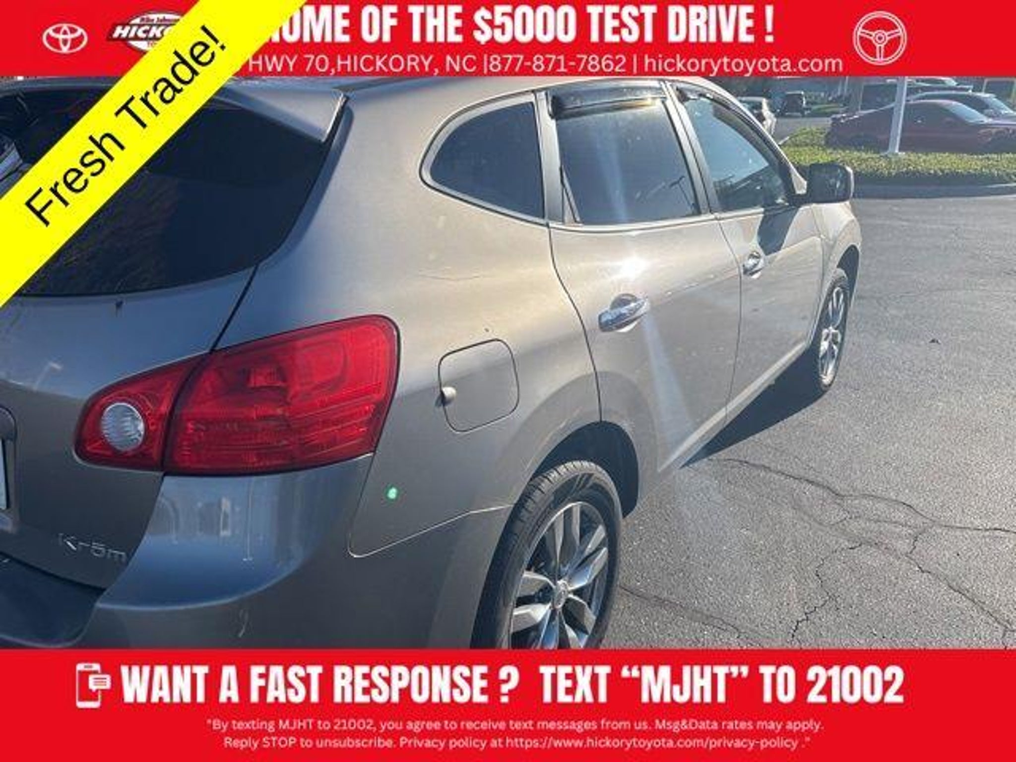 Details > 2010 Nissan Rogue AWD S Krom 4DR Crossover For Sale in Hickory, NC Private Party Sellers Click here to place your ad now! You auta tell them you saw the ad in AutaBuy when you call or email. 1/6 2/6 3/6 4/6 5/6 6/6 View 6 Photos View All Add to My Garage Parked in Your Garage! Mike Johnson's Hickory Toyota Contact Seller: I would like to: Make Offer Check Availability Ask A Question Request More Photos Check Financing Options Send a copy of this message to me Add this listing to my garage Send to Mobile Mileage 148,984 Exterior Color Platinum Graphite Metallic Interior Color Black Doors 4 Engine 2.5L I4 Stock # 66564D VIN JN8AS5MV2AW128986 2010 Nissan Rogue AWD S Krom 4DR Crossover Description: Platinum Graphite Metallic 2010 Nissan Rogue Krom AWD CVT 2.5L I4 DOHC 16V Recent Arrival! 21/26 City/Highway MPG Before you buy, give Mike a try! More info at · Mileage: 148,984 · Color: Platinum Graphite Metallic Price: $5,698. Price: $5,639. Mileage 148,984 Exterior Color Platinum Graphite Metallic Interior Color Black Doors 4 Engine 2.5L I4 Stock # 66564D VIN JN8AS5MV2AW128986 Add to My Garage Parked in Your Garage! Message Seller Mike Johnson's Hickory Toyota Contact Seller: I would like to: Make Offer Check Availability Ask A Question Request More Photos Check Financing Options Send a copy of this message to me Add this listing to my garage Offered for sale by Mike Johnson's Hickory Toyota HICKORY, NC Price: $5,698. Price: $5,639. Offered for sale by Mike Johnson's Hickory Toyota HICKORY, NC [entire inventory] Ask Auta Intelligence The first collector-car AI built directly into a classic car marketplace What factory options were available on this model? When was this model first introduced? What safety features does this model offer? What makes this model desirable to enthusiasts? What movies featured cars like this? What nicknames does this model have? What transmission options did these offer? How many of these were produced? What engine options did these come with? How many Rogues were produced in Platinum Graphite Metallic? Tell me more about this model Where is this located? What trim levels were available for this model? Which years was this body style produced? How far is this from me? Can you show me more suvs for a similar price? What colors did these come in? What does this VIN number tell me? How many passengers can this seat comfortably? What makes this model year special? Which engines were most common for this year? Do you have a similar car to sell? List It Now! Questions about this car? Ask Auta Intelligence for production numbers, available options, etc. · Subscribe to AutaBuy! · Send a Gift Subscription Notice to a Friend