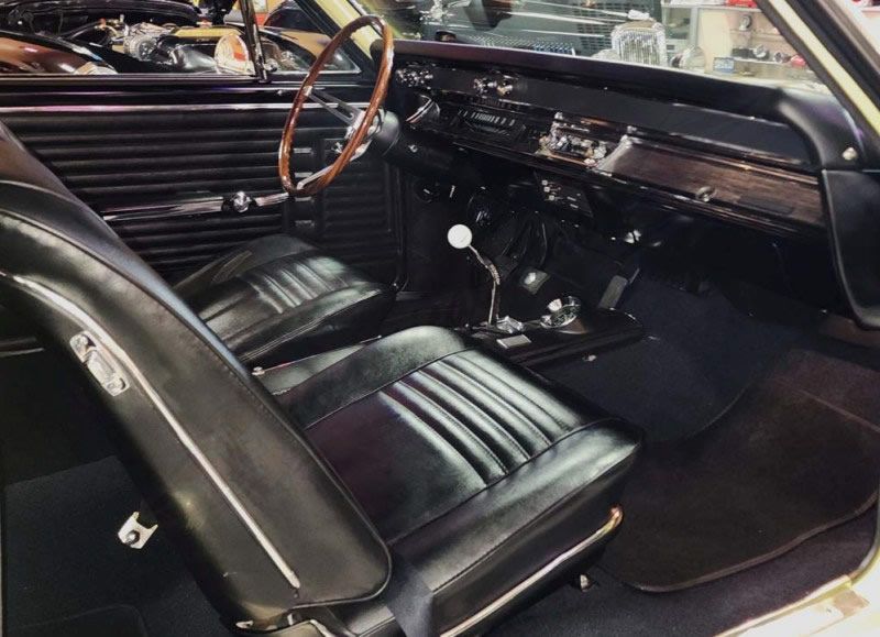 All trim and chrome have been restored to show quality. New paint to factory color, butternut yellow with a new black convertible top. Has the black SS rear trunk panel, and black front grille with two chrome bars and SS bagging are all correct for '67. The original style steel wheels and caps give this restomod that sleeper appeal.