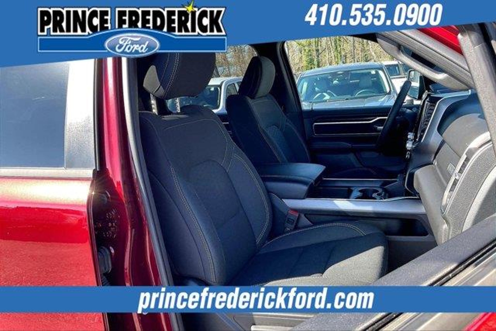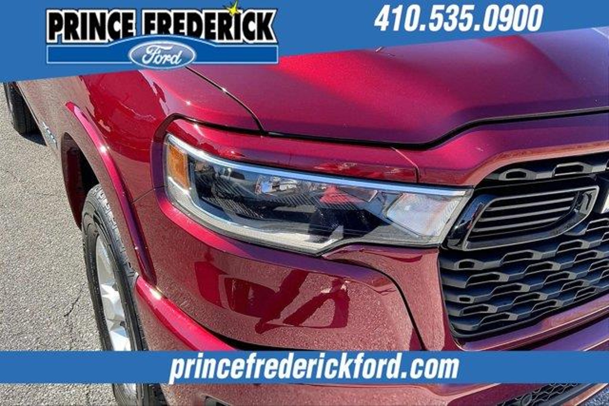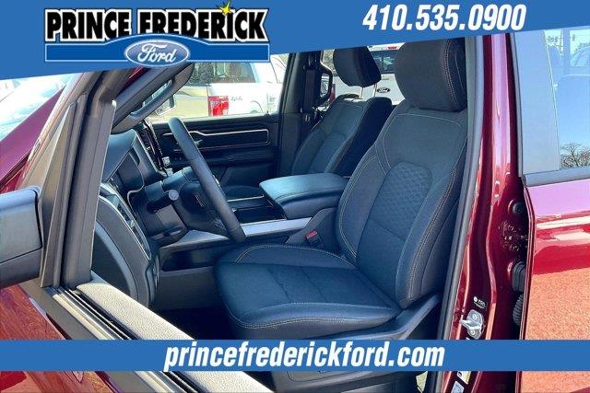 2025 Ram 1500 Big Horn/Lone Star *** 4 WHEEL DRIVE, ***CREW CAB, THIS IS A MUST SEE AND DRIVE!, SPORT APPEARANCE PACKAGE, BIG HORN LEVEL 2, 1500 Big Horn/Lone Star, 4D Crew Cab, 3.0L I6, 8-Speed Automatic, 4WD, Delmonico Red Pearlcoat, Black Cloth, 115V Auxiliary Power Outlet, 115V Auxiliary Rear Power Outlet, 12 Touchscreen Display, 2nd Row In Floor Storage Bins, 3 Rear Seat Head Restraints, 4 Way Front Headrests, 400W Inverter, 4G LTE Wi-Fi Hot Spot, 9 Amplified Speakers w/Subwoofer, Air Conditioning ATC w/Dual Zone Control, Apple CarPlay, Auto Power-Folding Mirrors, Auto-Dimming Exterior Driver Mirror, Auto-Dimming Rear-View Mirror, Big Horn Level 2 Equipment Group, Black Exterior Mirrors, Black Interior Accents, Black Premium Power Mirrors, Body Color Door Handles, Body Color Front Bumper, Body Color Rear Bumper w/Step Pads, Body Color Tailgate Handle, Bucket Seats, Cluster 7.0 TFT Color Display, Configurable Drive Mode, Connected Travel & Traffic Services, Connectivity - US/Canada, Convex Wide-Angle Exterior Mirror Insert, Deluxe Cloth Bucket Seats, Exterior Mirrors Courtesy Lamps, Exterior Mirrors w/Heating Element, Exterior Mirrors w/Supplemental Signals, Front Seat Back Map Pockets, Full Length Floor Console, Glove Box Lamp, Google Android Auto, GPS Antenna Input, GPS Navigation, Grille Surround 1 Body Color Texture 1 Black, HD Radio, Heated Front Seats, Heated Steering Wheel, Integrated Voice Command w/Bluetooth, Leather Wrapped Steering Wheel, LED Dome Lamp w/On/Off Switch, LED Footwell Lighting, Manual Adjust 4-Way Front Passenger Seat, Media Hub w/2 Charge Only USBs, Overhead LED Lamps, Power 2-Way Driver Lumbar Adjust, Power Adjust 8-Way Driver Seat, Power Adjustable Pedals, Premium Overhead Console, Quick Order Package 21Z Big Horn, Radio: Uconnect 5 Nav w/12.0 Display, RAM Grille Badge - Chrome, Rear 60/40 Folding Seat, Rear Center Armrest, Rear Power Sliding Window, Rear Window Defroster, Remote Tailgate Release, Security Alarm, SiriusXM w/360L, Sport Appearance Package, Steering Wheel Mounted Audio Controls, Sun Visors w/Illuminated Vanity Mirrors, Universal Garage Door Opener, USB Host Flip. NO HIDDEN COSTS ! ALL VEHICLE PRICING INCLUDES COMPREHENSIVE 100 POINT MD STATE INSPECTION AND ALL RECONDITIONING FEES. We at PRINCE FREDERICK FORD are driven to provide the finest automotive purchasing and ownership experience by not only meeting the customer's expectations, but consistently exceeding them. Our goal is to become the BEST STORE FOR YOU through an unrivaled DEDICATION TO EXCELLENCE. C