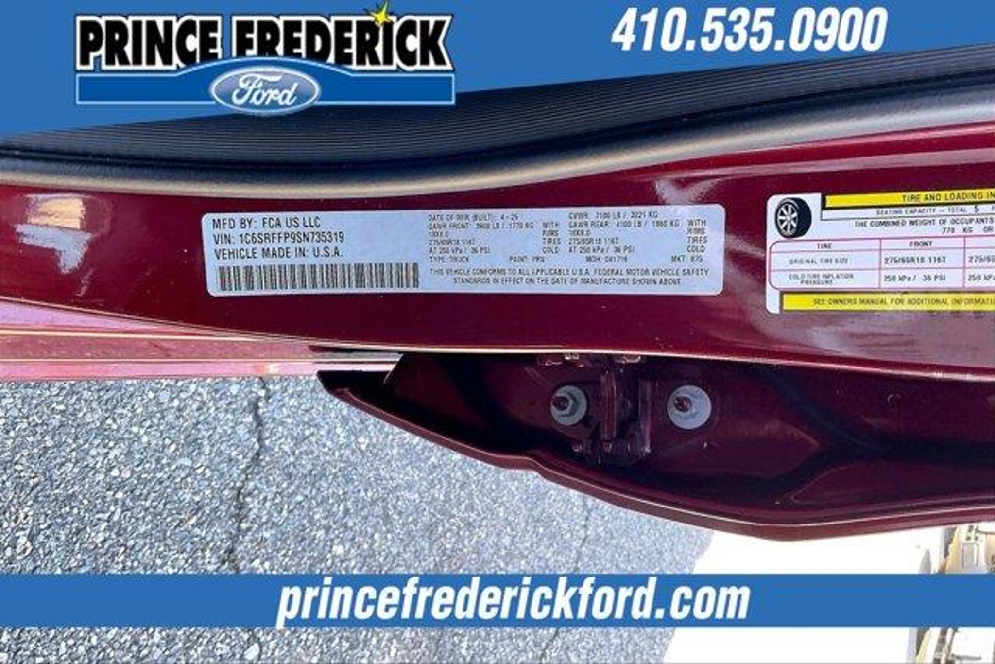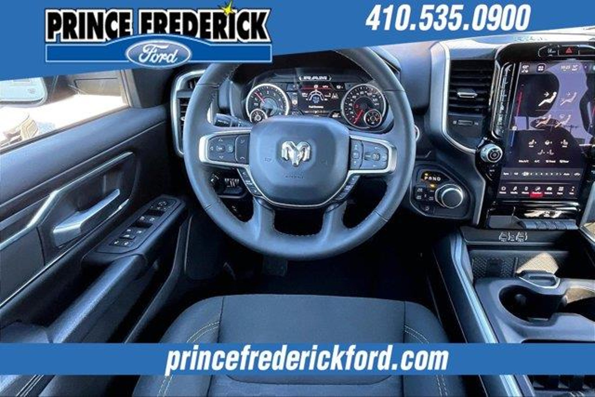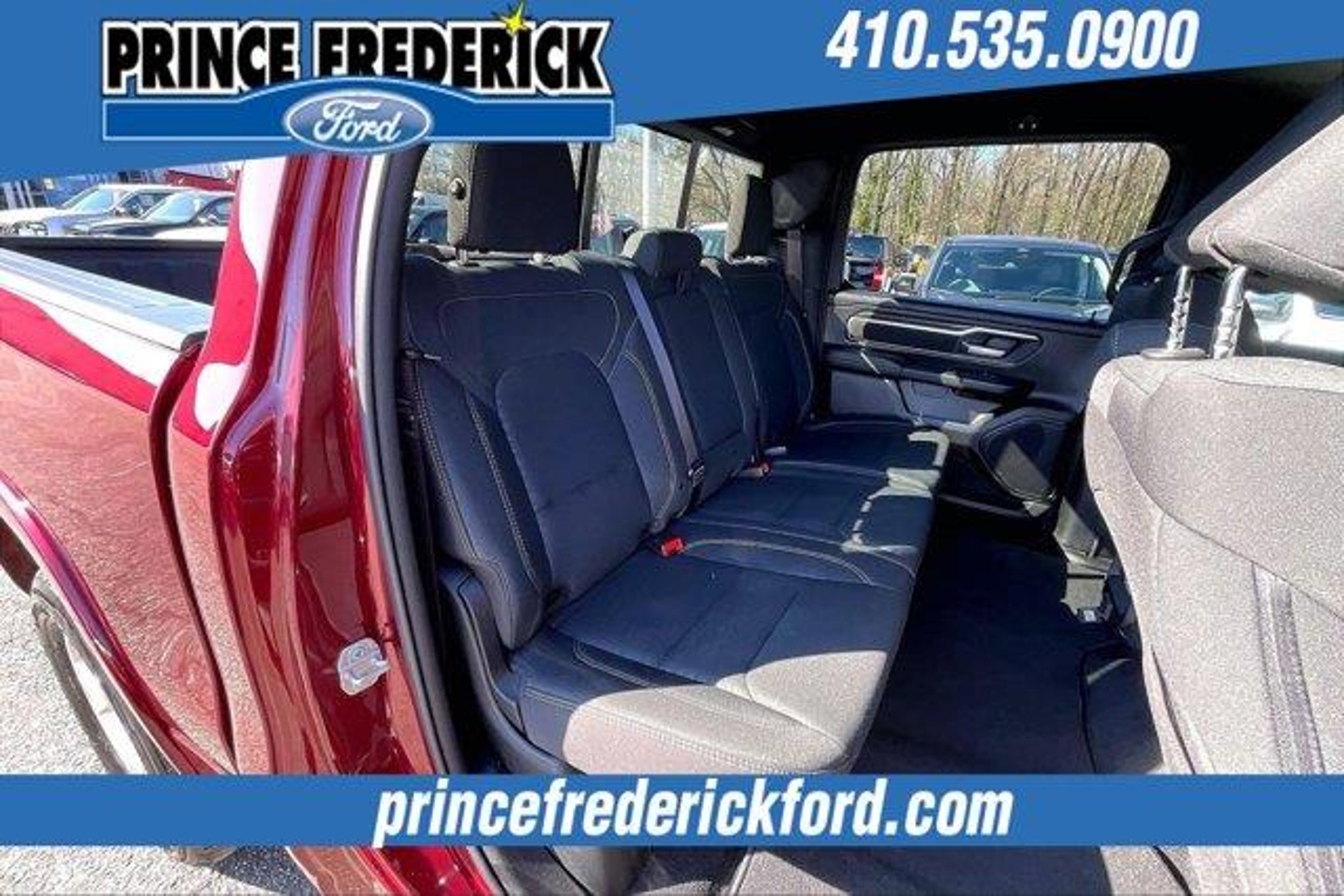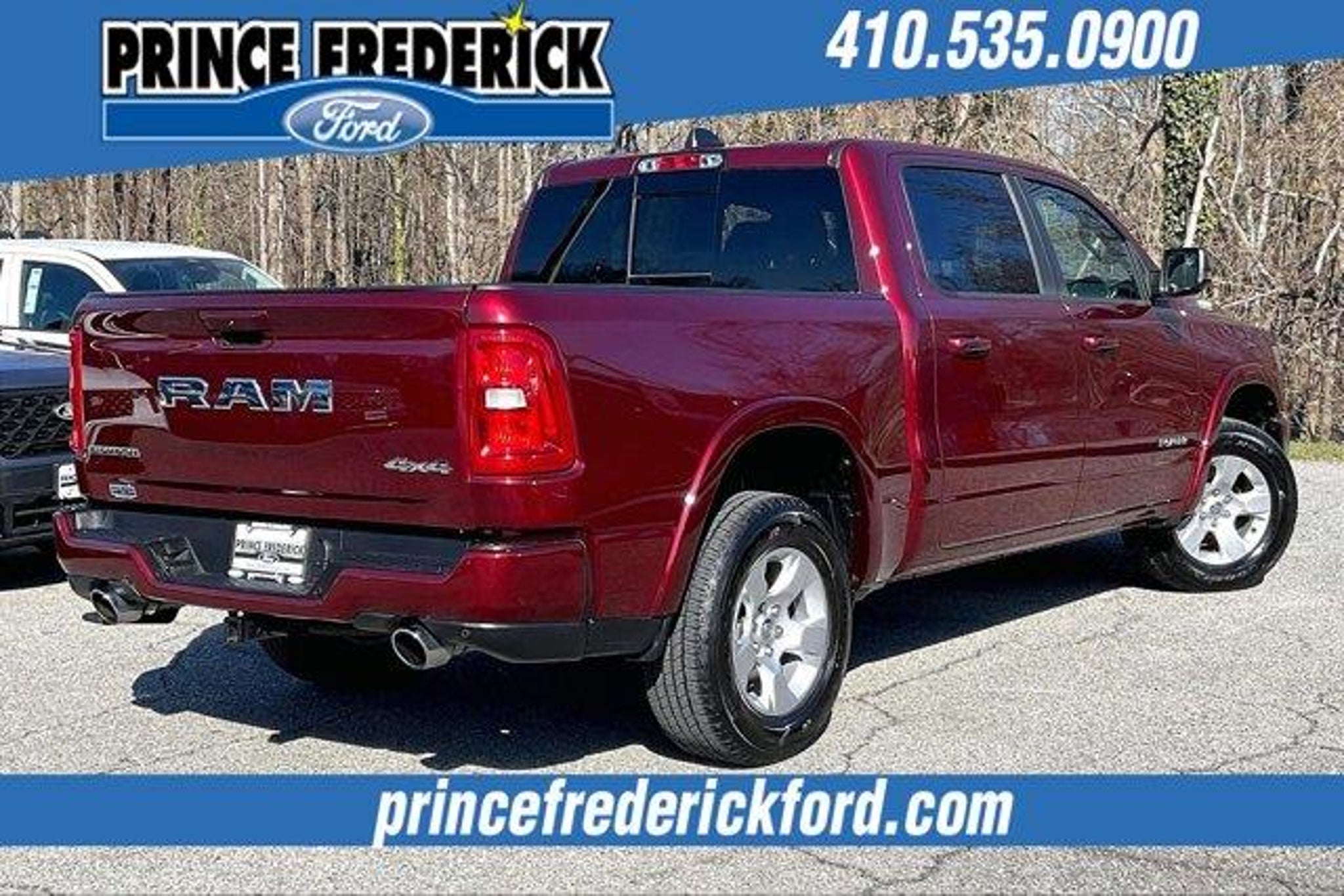 2025 Ram 1500 Big Horn/Lone Star *** 4 WHEEL DRIVE, ***CREW CAB, THIS IS A MUST SEE AND DRIVE!, SPORT APPEARANCE PACKAGE, BIG HORN LEVEL 2, 1500 Big Horn/Lone Star, 4D Crew Cab, 3.0L I6, 8-Speed Automatic, 4WD, Delmonico Red Pearlcoat, Black Cloth, 115V Auxiliary Power Outlet, 115V Auxiliary Rear Power Outlet, 12 Touchscreen Display, 2nd Row In Floor Storage Bins, 3 Rear Seat Head Restraints, 4 Way Front Headrests, 400W Inverter, 4G LTE Wi-Fi Hot Spot, 9 Amplified Speakers w/Subwoofer, Air Conditioning ATC w/Dual Zone Control, Apple CarPlay, Auto Power-Folding Mirrors, Auto-Dimming Exterior Driver Mirror, Auto-Dimming Rear-View Mirror, Big Horn Level 2 Equipment Group, Black Exterior Mirrors, Black Interior Accents, Black Premium Power Mirrors, Body Color Door Handles, Body Color Front Bumper, Body Color Rear Bumper w/Step Pads, Body Color Tailgate Handle, Bucket Seats, Cluster 7.0 TFT Color Display, Configurable Drive Mode, Connected Travel & Traffic Services, Connectivity - US/Canada, Convex Wide-Angle Exterior Mirror Insert, Deluxe Cloth Bucket Seats, Exterior Mirrors Courtesy Lamps, Exterior Mirrors w/Heating Element, Exterior Mirrors w/Supplemental Signals, Front Seat Back Map Pockets, Full Length Floor Console, Glove Box Lamp, Google Android Auto, GPS Antenna Input, GPS Navigation, Grille Surround 1 Body Color Texture 1 Black, HD Radio, Heated Front Seats, Heated Steering Wheel, Integrated Voice Command w/Bluetooth, Leather Wrapped Steering Wheel, LED Dome Lamp w/On/Off Switch, LED Footwell Lighting, Manual Adjust 4-Way Front Passenger Seat, Media Hub w/2 Charge Only USBs, Overhead LED Lamps, Power 2-Way Driver Lumbar Adjust, Power Adjust 8-Way Driver Seat, Power Adjustable Pedals, Premium Overhead Console, Quick Order Package 21Z Big Horn, Radio: Uconnect 5 Nav w/12.0 Display, RAM Grille Badge - Chrome, Rear 60/40 Folding Seat, Rear Center Armrest, Rear Power Sliding Window, Rear Window Defroster, Remote Tailgate Release, Security Alarm, SiriusXM w/360L, Sport Appearance Package, Steering Wheel Mounted Audio Controls, Sun Visors w/Illuminated Vanity Mirrors, Universal Garage Door Opener, USB Host Flip. NO HIDDEN COSTS ! ALL VEHICLE PRICING INCLUDES COMPREHENSIVE 100 POINT MD STATE INSPECTION AND ALL RECONDITIONING FEES. We at PRINCE FREDERICK FORD are driven to provide the finest automotive purchasing and ownership experience by not only meeting the customer's expectations, but consistently exceeding them. Our goal is to become the BEST STORE FOR YOU through an unrivaled DEDICATION TO EXCELLENCE. C