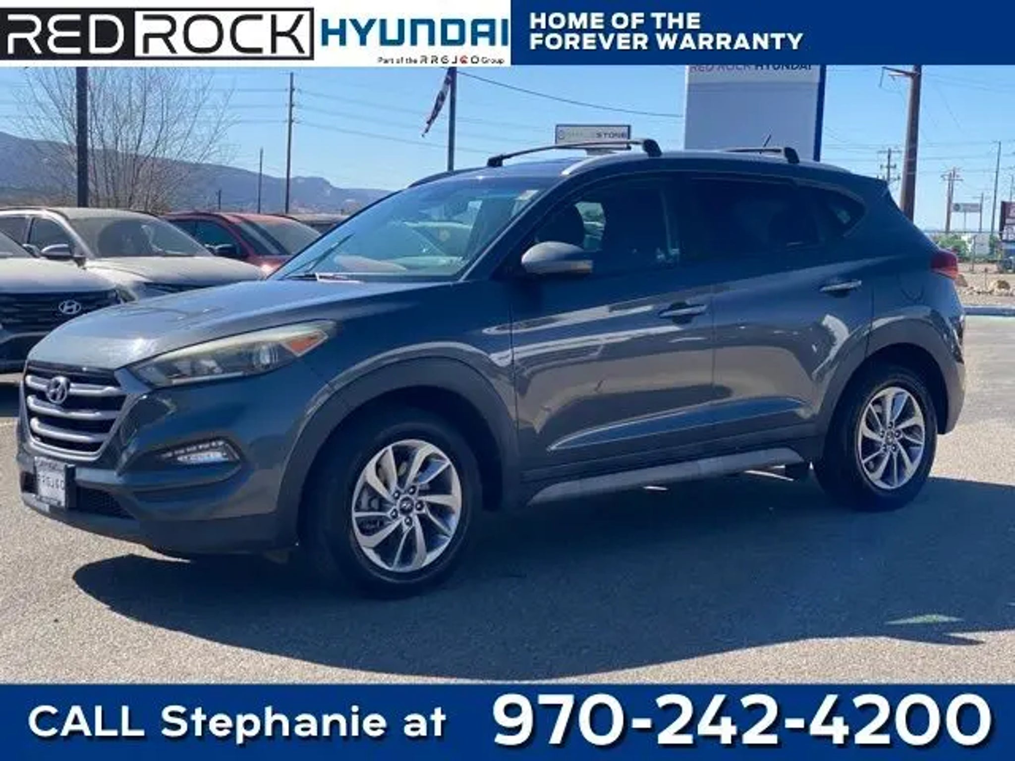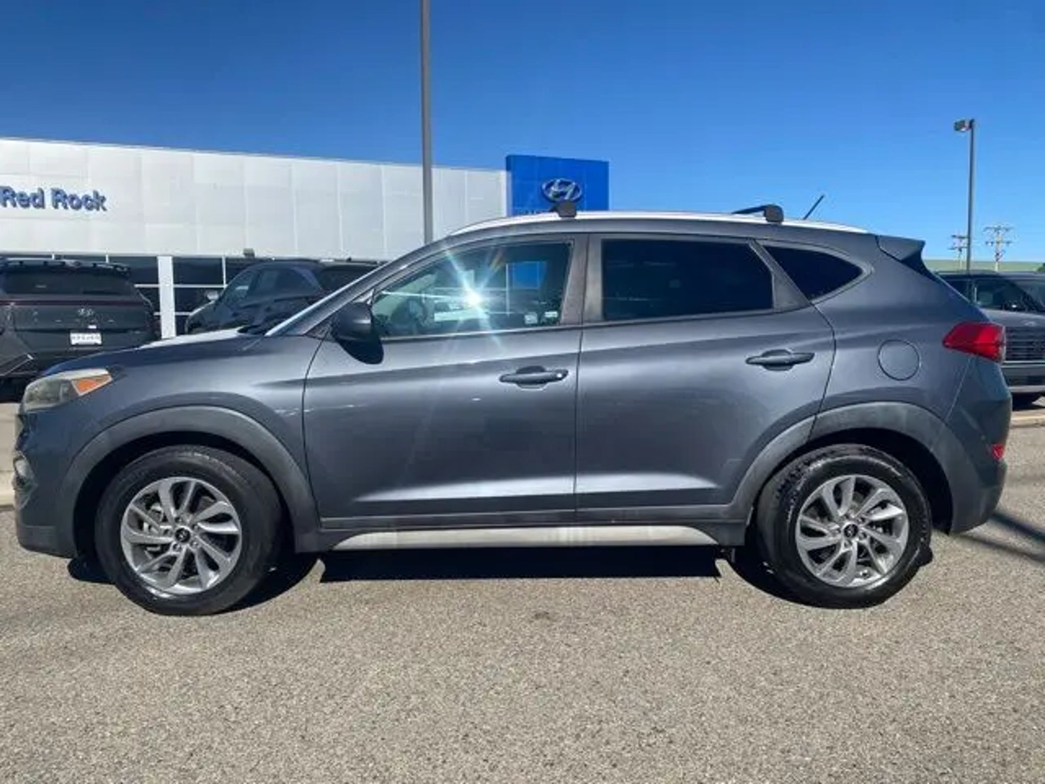 RED ROCK FOREVER WARRANTY. NO CHARGE 100% LIFETIME POWER TRAIN WARRANTY RED ROCK vehicles with less than 60,000 miles, 6 years and newer, non luxury or altered vehicles, come with a Lifetime Power train Warranty. This warranty is valid in all fifty states. ALL At No Charge just for doing business with RED ROCK Auto Group. While we make every effort to ensure the data listed here is correct, there may be instances where some of the options or vehicle features may be listed incorrectly as we get data from multiple data sources. PLEASE MAKE SURE to confirm the details of this vehicle with the dealer to ensure its accuracy. Dealer cannot be held liable for data that is listed incorrectly. See Dealer for details. Odometer is 18656 miles below market average! 23/30 City/Highway MPG Red Rock Hyundai proudly offers this 2017 Hyundai Tucson SE FWD in Coliseum Gray it comes well equipped with these standard and optional features, SE Popular Package 02 (Driver Power Window w/Auto Up/Down, Dual Illuminated Vanity Mirrors, Fog Lamps, Front Seats w/Power Driver's Seat, Illuminated Glove Box, LED Daytime Running Lights, LED Headlight Accents (Positioning Lights), Option Group 02, Premium Side Sills, and Roof Rack Side Rails), 17 Alloy Wheels, 4-Wheel Disc Brakes, 6 Speakers, ABS brakes, Air Conditioning, Alloy wheels, AM/FM radio: SiriusXM, AM/FM/CD/MP3 Audio System, Axle Ratio: 3.51, Brake assist, Bumpers: body-color, Cargo Net, Cargo Tray, Carpeted Floor Mats, CD player, Delay-off headlights, Driver door bin, Driver vanity mirror, Dual front impact airbags, Dual front side impact airbags, Electronic Stability Control, Exterior Parking Camera Rear, First Aid Kit, Four wheel independent suspension, Front anti-roll bar, Front Bucket Seats, Front Center Armrest, Front reading lights, Fully automatic headlights, Heated door mirrors, Illuminated entry, Low tire pressure warning, Occupant sensing airbag, Outside temperature display, Overhead airbag, Overhead console, Panic alarm, Passenger door bin, Passenger vanity mirror, Power door mirrors, Power steering, Power windows, Rear anti-roll bar, Rear seat center armrest, Rear window defroster, Rear window wiper, Remote keyless entry, Roof Rack Cross Rails, Security system, Speed control, Speed-sensing steering, Split folding rear seat, Spoiler, Steering wheel mounted audio controls, Tachometer, Telescoping steering wheel, Tilt steering wheel, Traction control, Trip computer, Variably intermittent wipers, and YES Essentials Cloth Seat Trim. Awards: * 2017 KBB.com 10 Best SUVs Under $25,000 * 2017 KBB.com 10 Most Awarded Brands