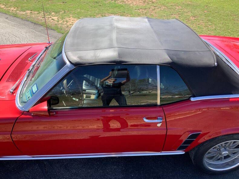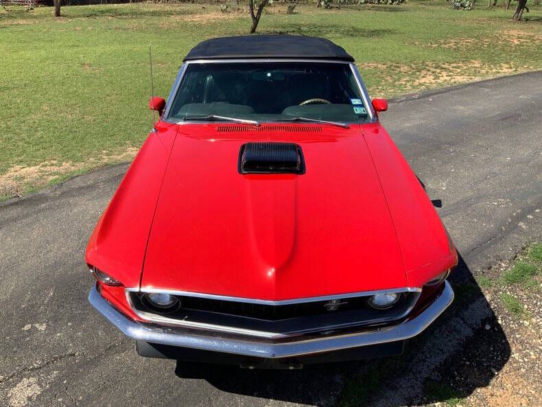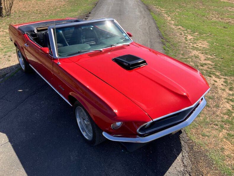 Street Dreams Texas is excited to present this iconic 1969 Ford Mustang Convertible, a timeless classic that combines vintage style with thoughtful performance upgrades. Finished in red with a black convertible top and a striking black hood scoop, this Mustang turns heads from every angle while maintaining a classic, aggressive look. Under the hood sits a robust 351ci V8 paired with a smooth C6 automatic transmission, delivering confident performance on any road. Upgrades like the X-pipe dual exhaust with MagnaFlow mufflers, Champion aluminum radiator, and Wilwood brake calipers on 4-wheel power disc brakes enhance handling, stopping power, and exhaust tone compared to the original factory setup. An aftermarket tach mounted on the steering column keeps you fully in command of the V8's power. The interior features classic black vinyl, complemented by bucket seats with center console and a wood steering wheel, blending vintage charm with functional comfort. Power steering ensures easy cruising, while US Mag wheels complete the aggressive yet elegant exterior stance. This 1969 Mustang Convertible is a fantastic opportunity for collectors or enthusiasts seeking a classic American muscle car that's ready to drive and enjoy today. Street Dreams Texas was founded in September 1999. If you're ready to experience this Mustang firsthand, call us at (830) 997-1950. We offer worldwide delivery, financing, and insurance options to make your purchase simple and hassle-free.
