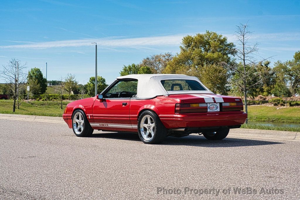 1989 Ford Mustang 5.0 Convertible, 5-Speed Manual, Modified 5.0L V8, Red with White Leather, 86k Miles This 1989 Ford Mustang 5.0 Convertible represents the heart of Fox Body performance"lightweight, raw, and built to be driven. Finished in a bold red exterior with white racing stripes over a white leather interior, this Mustang delivers a striking, high-contrast look that perfectly matches its performance-focused upgrades. Powered by the legendary 5.0L V8 EFI High Output engine, this Mustang has been enhanced with a number of well-chosen performance upgrades. It features BBK headers paired with a stainless exhaust system, giving the car an aggressive tone and improved breathing. Performance heads, intake, ignition components, and an upgraded cooling system further support the engines output and reliability. Backing the V8 is a 5-speed manual transmission, offering full driver engagement and making this car a true enthusiasts machine. The addition of subframe connectors helps stiffen the chassis, improving handling and overall driving feel"an important upgrade for Fox Body Mustangs. This car has also been upgraded with a race-inspired suspension setup, along with a 5-lug conversion and Cobra disc brakes, significantly enhancing both handling and stopping performance. It sits on Cobra-style 17-inch wheels wrapped in BF Goodrich Comp T/A tires, giving it the right stance and grip. Inside, the white leather interior provides a clean and classic look, complemented by a Grant steering wheel that adds a sporty touch to the drivers experience. The car shows 86,820 miles, reflecting relatively low mileage for its age. The convertible top allows for open-air driving, making this Mustang just as enjoyable cruising as it is performing. It is equipped with air conditioning; however, it is recommended to confirm that it is blowing cold prior to delivery. This is a well-sorted Fox Body Mustang that blends classic styling with meaningful performance upgrades"ideal for someone looking for a fun, engaging, and visually striking American convertible. Key Highlights: 1989 Ford Mustang 2D Convertible 86,820 miles (low mileage) 5.0L V8 EFI High Output engine 5-speed manual transmission BBK headers Stainless steel exhaust system Upgraded heads, intake, ignition, and cooling system Race suspension Subframe connectors for improved chassis rigidity 5-lug conversion Cobra disc brakes Cobra 17-inch wheels BF Goodrich Comp T/A tires Red exterior with white racing stripes White leather interior Grant steering wheel Power convertible top Air conditioning (recommend confirming operation prior to delivery) While we do our best to provide the highest quality muscle cars with an honest and reliable description and realize the importance of transparency when selling vehicles. That being said, we have not built, modified, changed or personally owned this vehicle. Whether this vehicle is consigned or owned by Past & Present Motor Cars we do not know the vehicles complete history since new. We want to be clear and try to answer any questions our customers might have prior to purchasing. Additionally, we not only welcome but we encourage 3rd party independent inspections. Please inquire prior to purchase to make sure the advertised vehicle has not already been sold. We list our vehicles on multiple websites and a vehicle can sell at any time. If a customer chooses to purchase sight unseen (many of our customers choose this option) the customer accepts the vehicle AS IS and WHERE IS and understands we cannot address concerns after purchase. For this reason, it's important all concerns are addressed prior to purchase. We make every effort to present accurate and reliable information, but use of this information is voluntary, and should only be deemed reliable after an independent review of its accuracy, completeness, and timeliness. It is the sole responsibility of the customer to verify the existence of options, accessories and the vehicle condition before time of sale. Financing is Available with low rates and Vehicle Shipping is available from our Showroom to your Garage. A Classic Car Warranty is Available for Purchase from a 3rd Party. Please speak to our Sales Associate or Company Representative for more information. Our team is working and available anytime by Phone or Text for your convenience at 407-559-7759. Thank you for your interest! WeBe Autos Specializes in Marketing and Advertising Muscle, Classic, Vintage and Specialty Cars. We offer Professional Photography, HD Movies, and Staging that Sells Cars. Let us showcase and sell your specialty car. Please visit our website for more details. Keep in Touch, Michael Runnalls Specialty Car Marketing & Media WeBe Autos Ltd. Long Island, NY 11780 Michael@WeBeAutos.com www.WeBeAutos.com (O)631-339-0399 (C)516-729-2003 Skype: webeautos (F)631-389-2605 - - - Contact Michael Runnalls at 631-339-0399 or Michael@WeBeAutos.com for more information. -