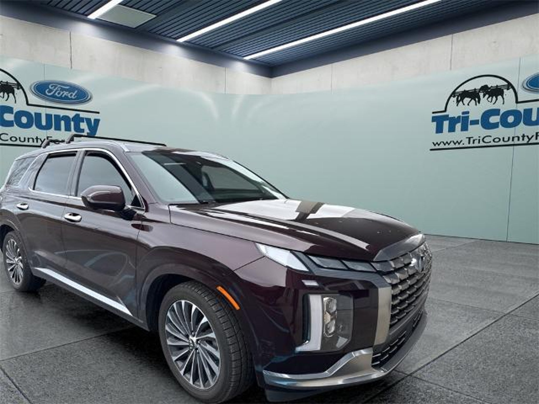 1 Owner Local Trade!, Sunroof/Moonroof, Navigation System, Backup Camera, Leather Seats, AWD, Alloy Wheels, BlueTooth, USB Ports, Blind Spot Monitor, 12 Speakers, 3rd row seats: split-bench, Apple CarPlay & Android Auto, Auto High-beam Headlights, Automatic temperature control, Delay-off headlights, Emergency communication system: Blue Link Connected Car Service (3-year complimentary subscription), Exterior Parking Camera Rear, Fully automatic headlights, Garage door transmitter: HomeLink, Heads-Up Display, Heated & Ventilated Front Bucket Seats, Heated rear seats, Heated steering wheel, Navigation System, Option Group 01, Panic alarm, Power Liftgate, Power moonroof, Premium Nappa Leather Seat Trim, Radio: AM/FM/MP3 Premium Audio System, Rear air conditioning, Rear audio controls, Reclining 3rd row seat, Remote keyless entry, Security system, Steering wheel mounted audio controls, Telescoping steering wheel, Tilt steering wheel, Ventilated front seats, Ventilated rear seats, Wheels: 20 x 7.5J Calligraphy Exclusive Alloy. Tri County Ford has been proudly serving the Kentuckiana area for over 42 years. Please come visit us at our ALL NEW FACILITY AND LOCATION, I71, Exit 18 (Hwy 393 & Commerce Parkway). We believe in a NO HASSLE sales experience. We price all of our vehicles at a competitive price. We believe that your time is valuable and that you have better things to do with your time than negotiate back and forth over an inflated price.