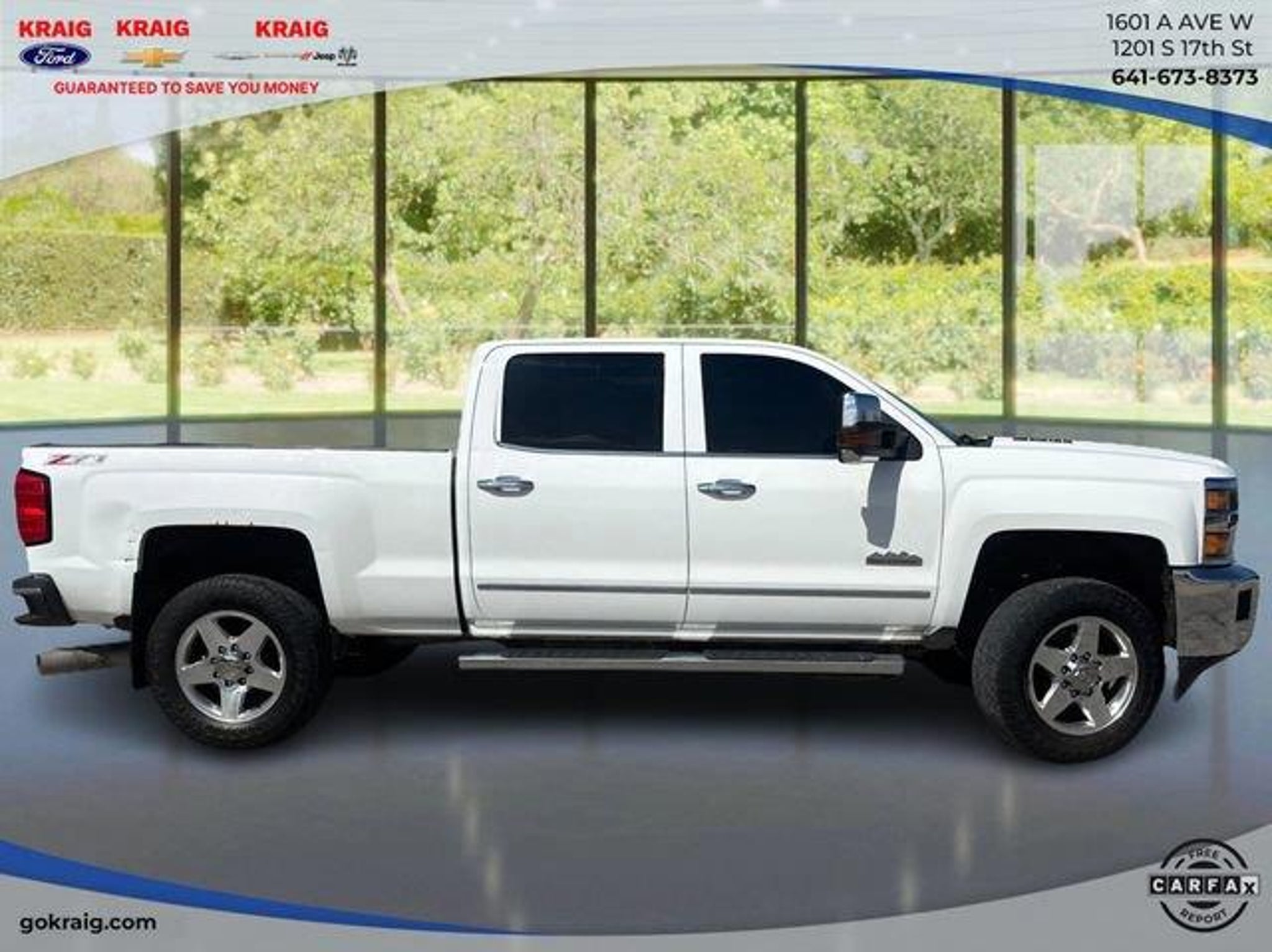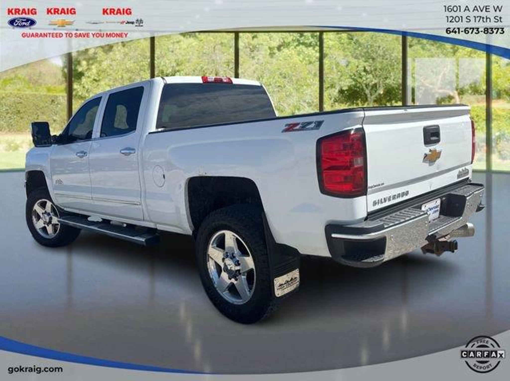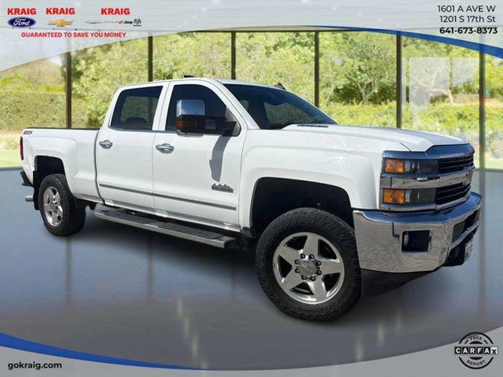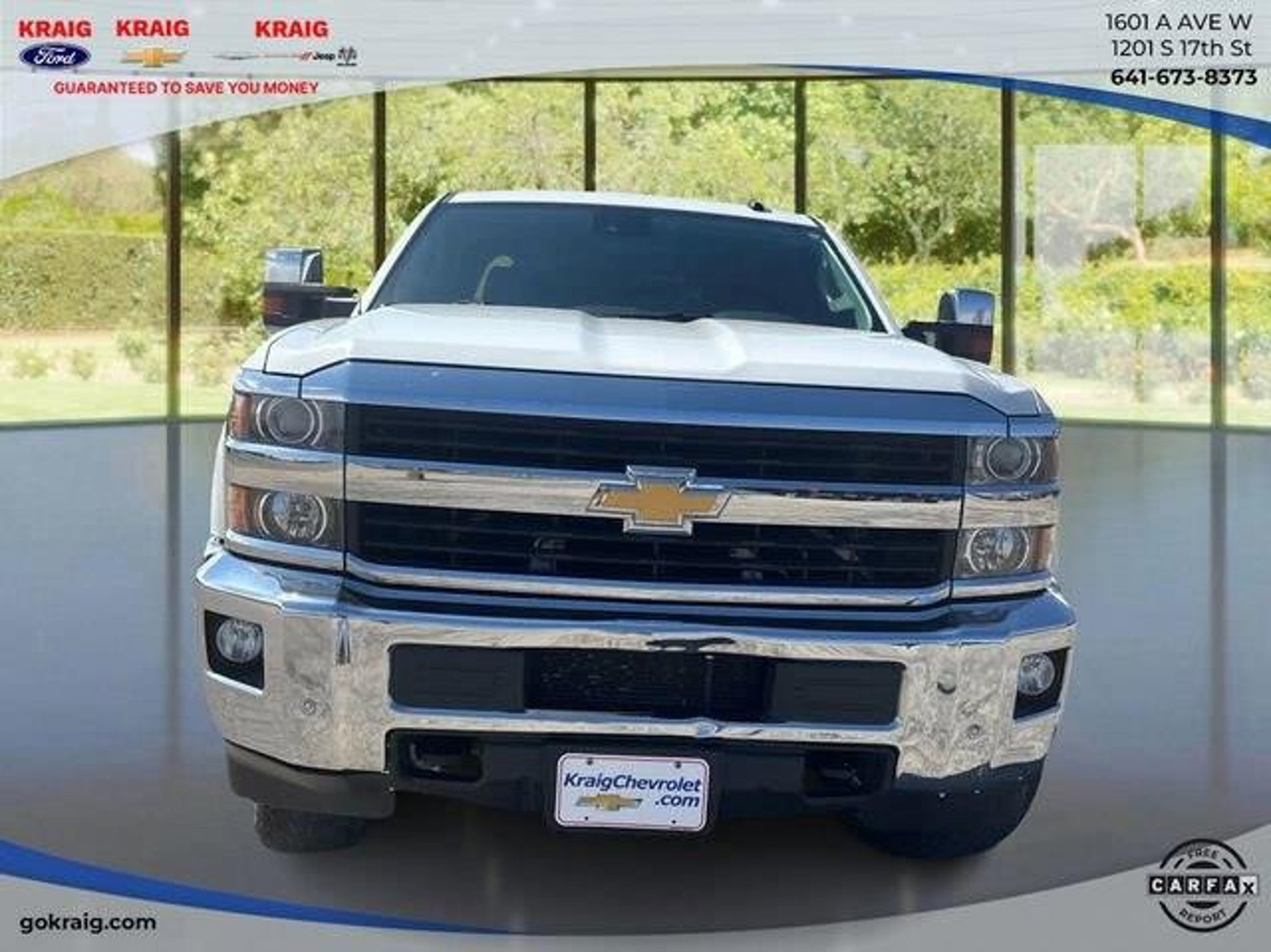 Clean CARFAX.3.73 Rear Axle Ratio, Bluetooth? For Phone, BOSE Sound w/6 Speaker System, Driver Alert Package, Duramax Plus Package, Engine Block Heater, Hill Descent Control, LTZ Plus Package, Off-Road Z71 Package, Power-Adjustable Pedals, Radio: AM/FM w/Chevrolet MyLink & Nav, SiriusXM Satellite Radio, Ultrasonic Front & Rear Park Assist, Z71 Badging.Summit White 2015 Chevrolet Silverado 2500HD LTZ 4WD Allison 1000 6-Speed Automatic Duramax 6.6L V8 TurbodieselAt Kraig Ford CDJR our vast selection of Pre-Owned vehicles along with competitive pricing and financing options equals great deals and savings for you!Kraig Ford CDJR is a family owned dealership and that is portrayed in the small town atmosphere of the dealership. The owner of the dealership, Craig Ford, is a veteran of the U.S. Army and proudly supports our troops and veterans.