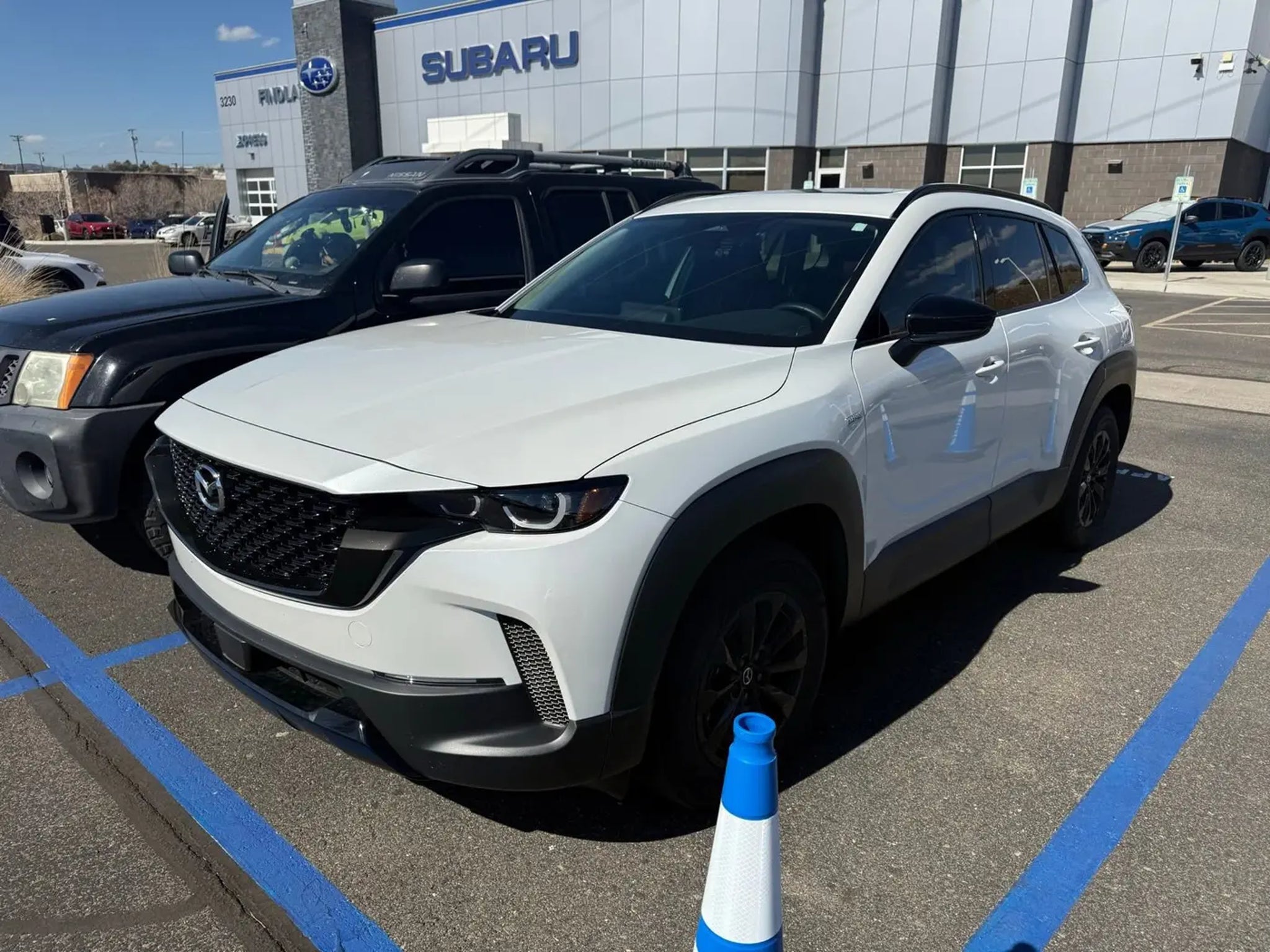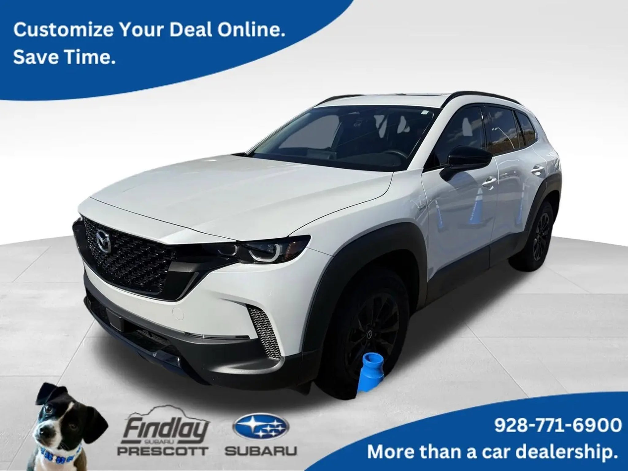 CX-50 Hybrid Premium, 4D Sport Utility, 2.5L 4-Cylinder, eCVT, AWD, Wind Chill Pearl, Red Leather.Visit with our NON-Commission team, for a hassle free experience! Save more with Findlay Subaru Prescott, with our competitive, market based pricing! This Mazda CX-50 Hybrid is equipped with the following features: CX-50 Hybrid Premium, 4D Sport Utility, 2.5L 4-Cylinder, eCVT, AWD, Wind Chill Pearl, Red Leather, 12 Speakers, 4-Wheel Disc Brakes, ABS brakes, Air Conditioning, Alloy wheels, AM/FM radio: SiriusXM, AppLink/Apple CarPlay and Android Auto, Auto High-beam Headlights, Auto-dimming Rear-View mirror, Automatic temperature control, Black Lug Nuts and Black Wheel Locks, Brake assist, Bumpers: body-color, Carpet Cargo Mat, Delay-off headlights, Driver door bin, Driver vanity mirror, Dual front impact airbags, Dual front side impact airbags, Electronic Stability Control, Emergency communication system: MAZDA CONNECT, Exterior Parking Camera Rear, Front anti-roll bar, Front Bucket Seats, Front Center Armrest, Front dual zone A/C, Front reading lights, Front wheel independent suspension, Fully automatic headlights, Heated door mirrors, Heated front seats, Heated Front Seats with 3 Level Adjustment and Memory, Illuminated entry, Knee airbag, Leather Seat Trim, Leather Shift Knob, Leather steering wheel, Low tire pressure warning, Memory seat, Occupant sensing airbag, Outdoor Adventure Backpack Kit, Outside temperature display, Overhead airbag, Overhead console, Panic alarm, Passenger door bin, Passenger vanity mirror, Power door mirrors, Power driver seat, Power Liftgate, Power moonroof, Power passenger seat, Power steering, Power windows, Radio data system, Radio: AM/FM/HD Bose 12-Speaker Audio Sound System, Rain sensing wipers, Rear seat center armrest, Rear window defroster, Rear window wiper, Remote keyless entry, Speed control, Speed-sensing steering, Split folding rear seat, Spoiler, Steering wheel mounted audio controls, Tachometer, Telescoping steering wheel, Tilt steering wheel, Traction control, Trip computer, Turn signal indicator mirrors, Variably intermittent wipers, Wheels: 17 x 7J Aluminum Alloy Black Metallic Finish, and Wind Chill Pearl Paint Charge.CARFAX One-Owner. Clean CARFAX.We use Market Based Pricing to give you the best price, upfront, without games. We do the shopping, so you get the deals!2025 Mazda CX-50 Hybrid Premium 39/37 City/Highway MPG Odometer is 3714 miles below market average!