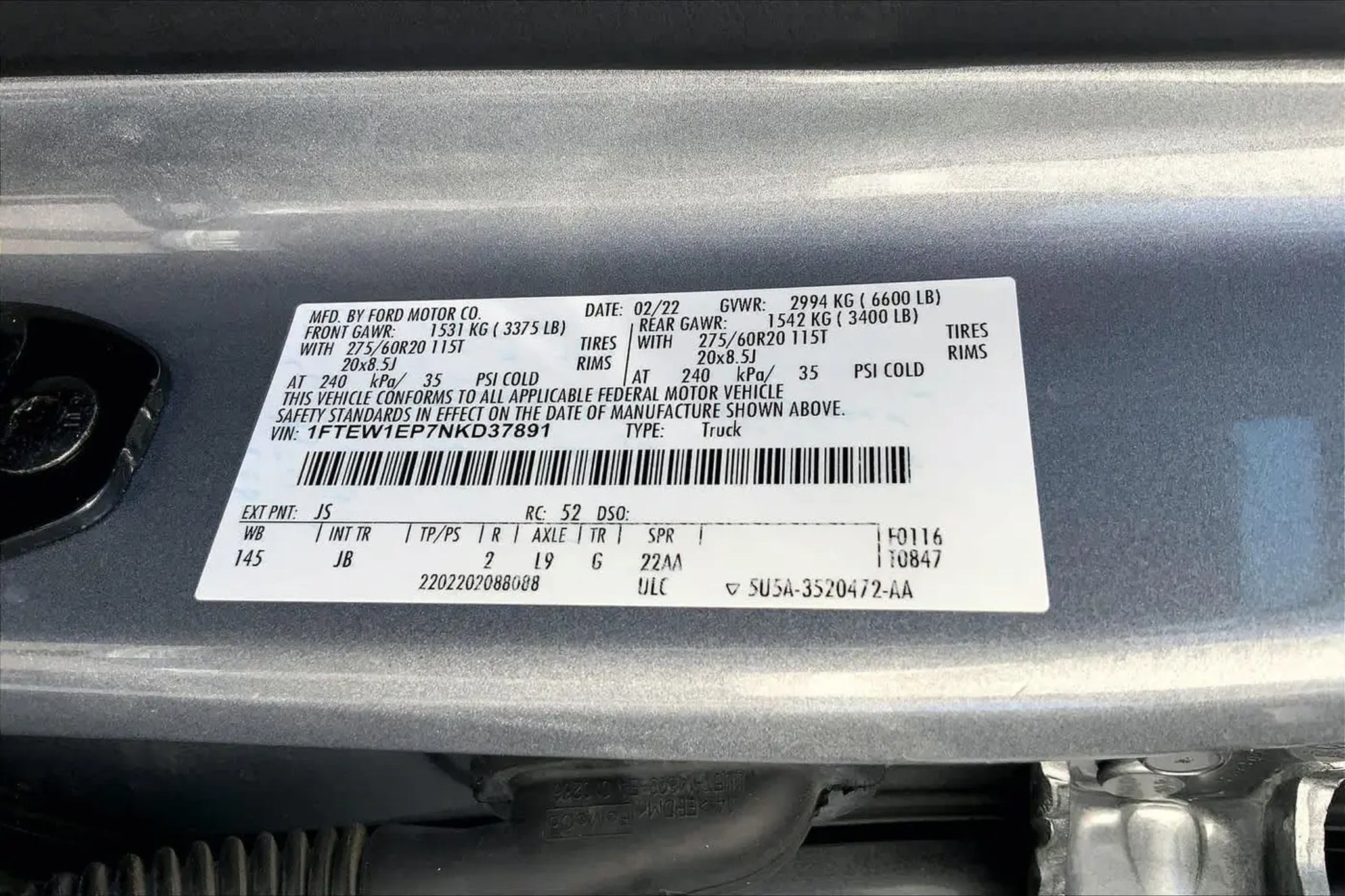 VIN 1FTEW1EP7NKD37891