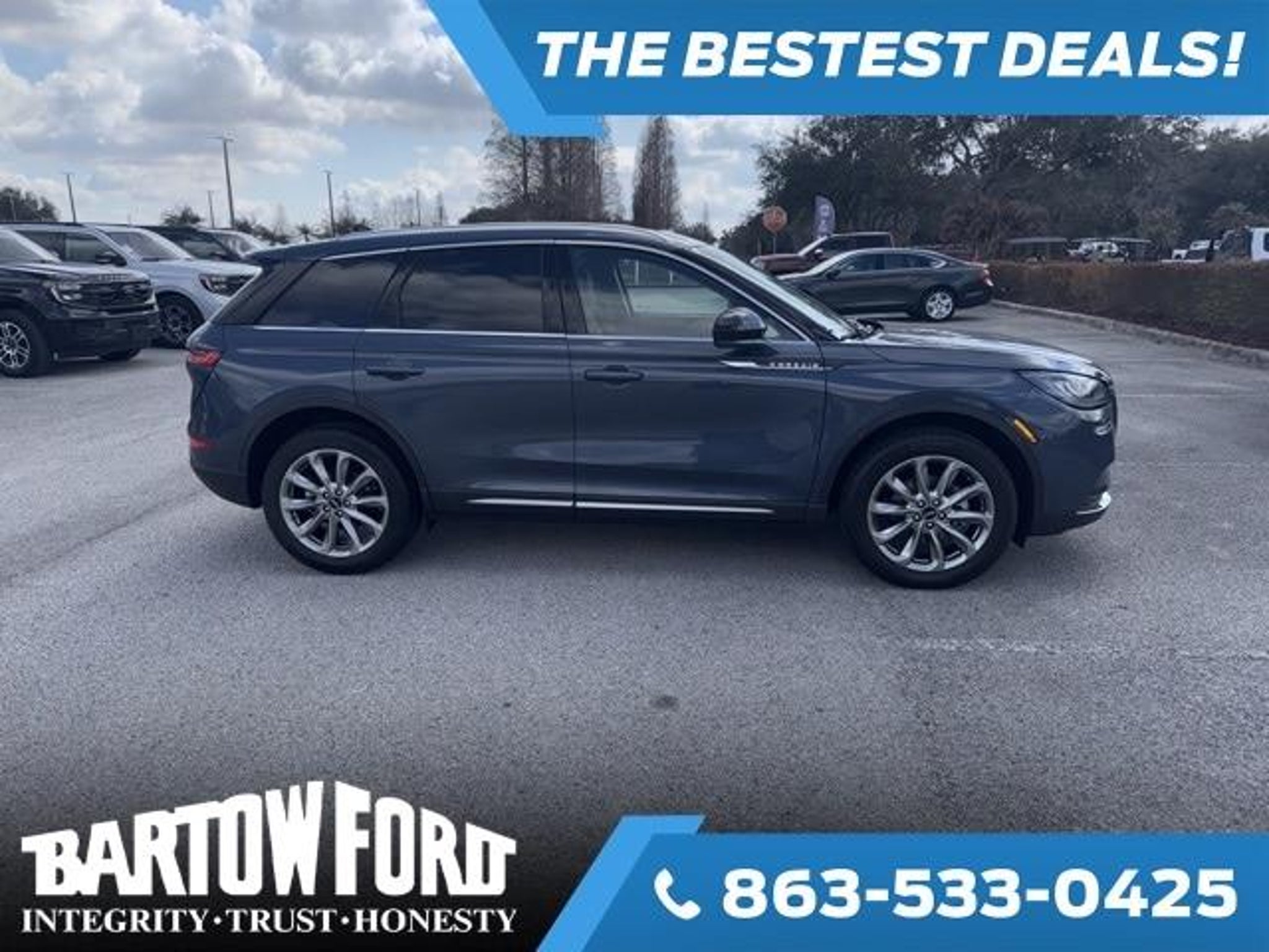 THIS IS A VERY LOW MILEAGE ONE OWNER FOUR DOOR SUV, IT HAS THE HARD TO FIND PREMIUM PACKAGE, PANORAMIC VISTA MOONROOF, LEATHER SEATS, NAVIGATION, BLIND SPOT MONITORS, HEATED AND COOLED SEATS, THE CONVENIENCE PACKAGE, LANE KEEPING SYSTEM, AND THE OPTIONAL 19 INCH WHEELS. CALL 863-533-0425 TO SCHEDULE A TEST DRIVE TODAY. Recent Arrival! 4D Sport Utility 2022 Lincoln Corsair Standard Ocean Drive Blue Metallic Tinted Clearciat 2.0L I4 Lincoln Corsair Standard 8-Speed Automatic 22/29 City/Highway MPG 2022 We're Different and We Prove IT! Get an immediate response with Detailed Information by calling us right now. We are also happy to Email or TEXT information back to you per your request. Our vehicles are Fully Serviced and most come with a Warranty..... They are the cleanest, mechanically sound vehicles you will find. Don't hesitate and let this one get away! EMAIL us today to schedule your test drive..... Ask us how WE CAN HELP WITH FINANCING even if your credit is less than average. We specialize in Credit Approvals not only on Ford products but on many other brands we carry as well such as Toyota, Chevrolet, BMW, Chrysler, Dodge, Jeep, GMC, Cadillac, Lincoln, Nissan, Hyundai, Kia, Mercury, Lexus, Honda, Volkswagen and more...... Serving Lakeland, Tampa, Haines City, Lake Wales, Avon Park, Davenport, Plant City, Winter Haven, Sebring, Brandon and all over Florida...... Call or Email us today! We're Different and We Prove IT!
