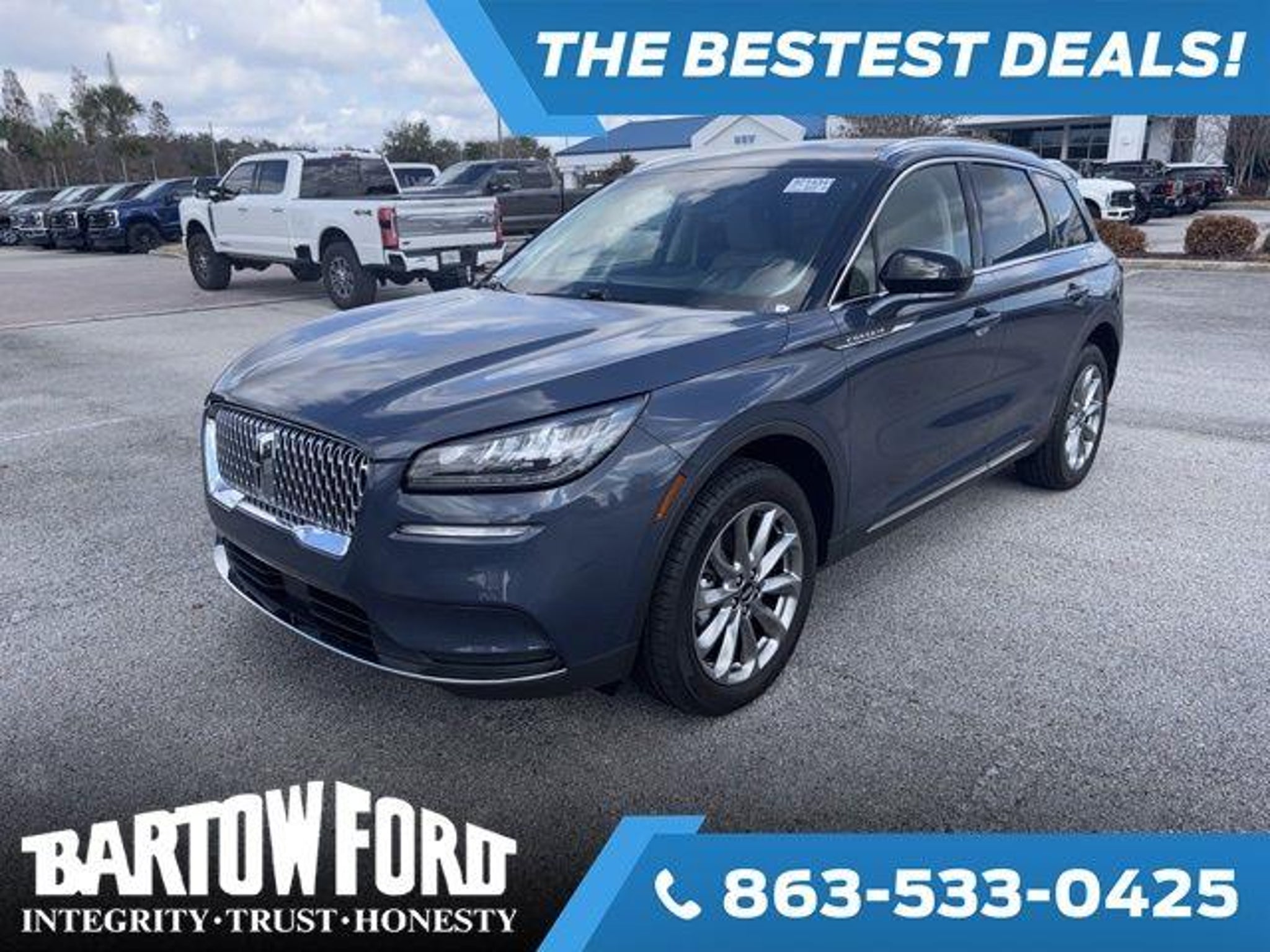 THIS IS A VERY LOW MILEAGE ONE OWNER FOUR DOOR SUV, IT HAS THE HARD TO FIND PREMIUM PACKAGE, PANORAMIC VISTA MOONROOF, LEATHER SEATS, NAVIGATION, BLIND SPOT MONITORS, HEATED AND COOLED SEATS, THE CONVENIENCE PACKAGE, LANE KEEPING SYSTEM, AND THE OPTIONAL 19 INCH WHEELS. CALL 863-533-0425 TO SCHEDULE A TEST DRIVE TODAY. Recent Arrival! 4D Sport Utility 2022 Lincoln Corsair Standard Ocean Drive Blue Metallic Tinted Clearciat 2.0L I4 Lincoln Corsair Standard 8-Speed Automatic 22/29 City/Highway MPG 2022 We're Different and We Prove IT! Get an immediate response with Detailed Information by calling us right now. We are also happy to Email or TEXT information back to you per your request. Our vehicles are Fully Serviced and most come with a Warranty..... They are the cleanest, mechanically sound vehicles you will find. Don't hesitate and let this one get away! EMAIL us today to schedule your test drive..... Ask us how WE CAN HELP WITH FINANCING even if your credit is less than average. We specialize in Credit Approvals not only on Ford products but on many other brands we carry as well such as Toyota, Chevrolet, BMW, Chrysler, Dodge, Jeep, GMC, Cadillac, Lincoln, Nissan, Hyundai, Kia, Mercury, Lexus, Honda, Volkswagen and more...... Serving Lakeland, Tampa, Haines City, Lake Wales, Avon Park, Davenport, Plant City, Winter Haven, Sebring, Brandon and all over Florida...... Call or Email us today! We're Different and We Prove IT!