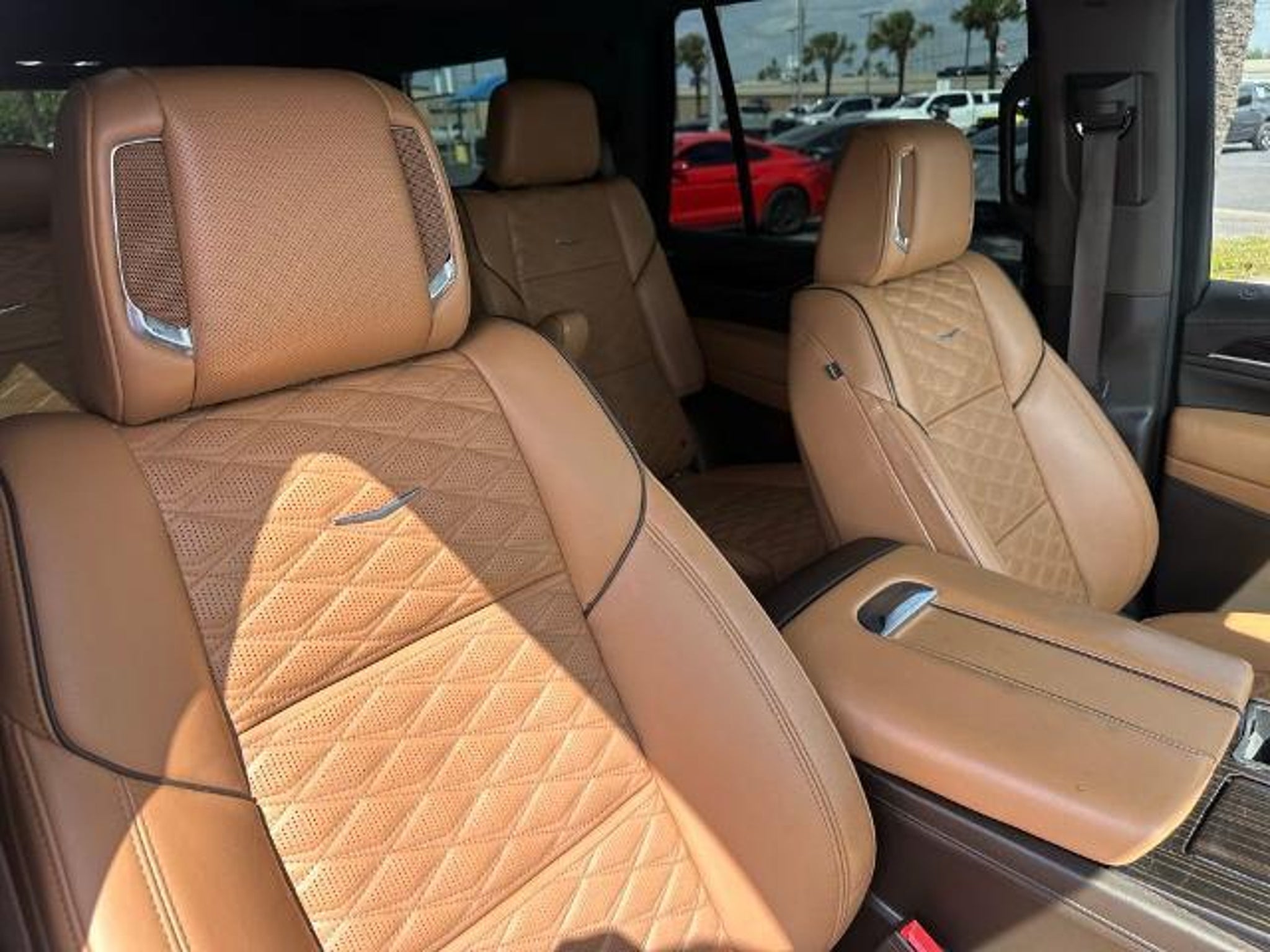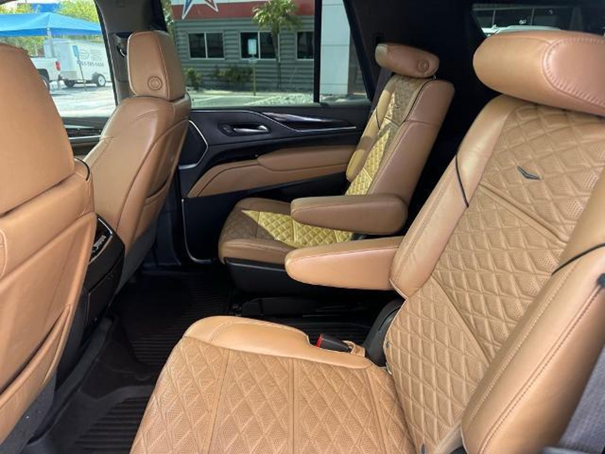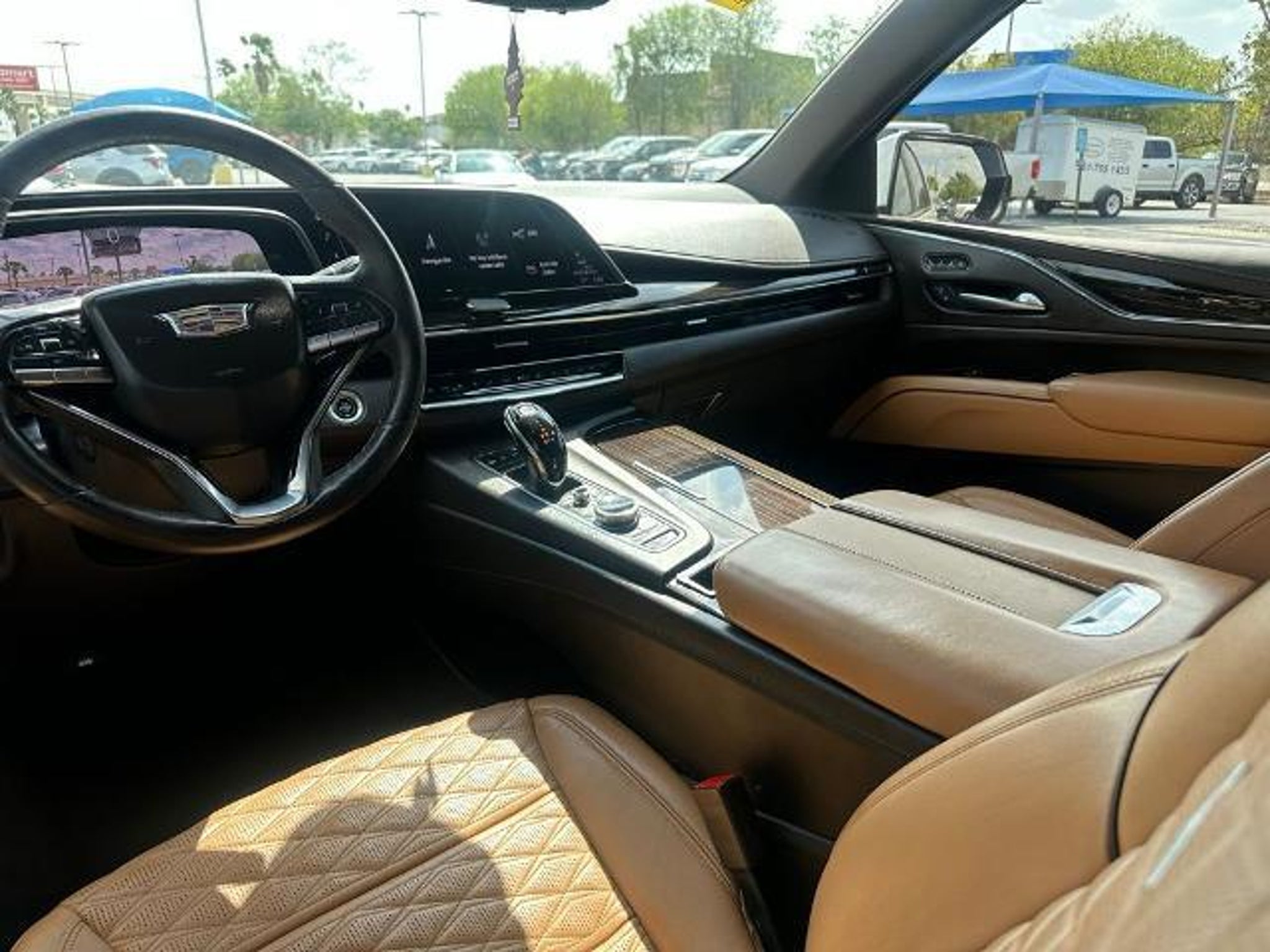 This 2021 Cadillac Escalade Premium Luxury in Crystal White Tricoat comes with the following features: 6.2L V8 10-Speed Automatic with Overdrive RWD Driver Assist Tech Package (Adaptive Cruise Control, Air Ride Adaptive Suspension, Automatic Seat Belt Tightening, Enhanced Automatic Emergency Braking, Illuminating Front & Rear Sill Plates, Reverse Automatic Braking, and Soft Closing Front & Rear Doors), Performance Package (Electronic Limited-Slip Differential, Hitch Guidance w/Hitch View, In-Vehicle Trailering System App, Integrated Trailer Brake Controller, Magnetic Ride Control Suspension, and Trailer Side Blind Zone Alert), Preferred Equipment Group 1SB (Air Ionizer, AKG Studio 19-Speaker Audio System, Automatic Emergency Braking, Door Lock & Latch Shields, Electronic Cruise Control w/Set & Resume Speed, Enhanced Automatic Parking Assist, Glass Breakage Sensor, Lane Change Alert w/Side Blind Zone Alert, Lane Keep Assist w/Lane Departure Warning, Mechanical Limited-Slip Differential, Power Panoramic Tilt-Sliding Sunroof, Rear Camera Mirror, Rear Camera Mirror Washer, Rear Cross Traffic Alert, Reconfigurable Full-Color Head-Up Display, Running Board Assist Steps, Theft-Deterrent Alarm System, Vehicle Inclination Sensor, and Vehicle Interior Movement Sensor), Sames Certified Certified, Brandy With Very Dark Atmosphere Accents Leather, 16.9 Diagonal OLED Infotainment Screen, 19 Speakers, 2-Presets Memory For Driver Seat Adjuster, 3.23 Axle Ratio, 3rd row seats: split-bench, 4-Way Power Driver Lumbar Seat Adjuster, 4-Way Power Front Passenger Lumbar Seat Adjuster, 4-Wheel Disc Brakes, 8-Way Power Driver Seat Adjuster, 8-Way Power Front Passenger Seat Adjuster, ABS brakes, Air Conditioning, Alloy wheels, AM/FM radio: SiriusXM with 360L, Apple CarPlay/Android Auto, Audio memory, Auto High-beam Headlights, Auto tilt-away steering wheel, Auto-dimming door mirrors, Auto-dimming Rear-View mirror, Automatic temperature control, Brake assist, Bumpers: body-color, Compass, Delay-off headlights, Driver door bin, Driver vanity mirror, Dual front impact airbags, Dual front side impact airbags, Electronic Stability Control, Emergency communication system: OnStar and Cadillac connected services capable, Four wheel independent suspension, Front anti-roll bar, Front Bucket Seats, Front Center Armrest w/Storage, Front dual zone A/C, Front License Plate Bracket, Front reading lights, Fully automatic headlights, Garage door transmitter, HD Radio, Heads-Up Display, Heated & Ventilated Driver & Front Passenger Seats, Heated doo