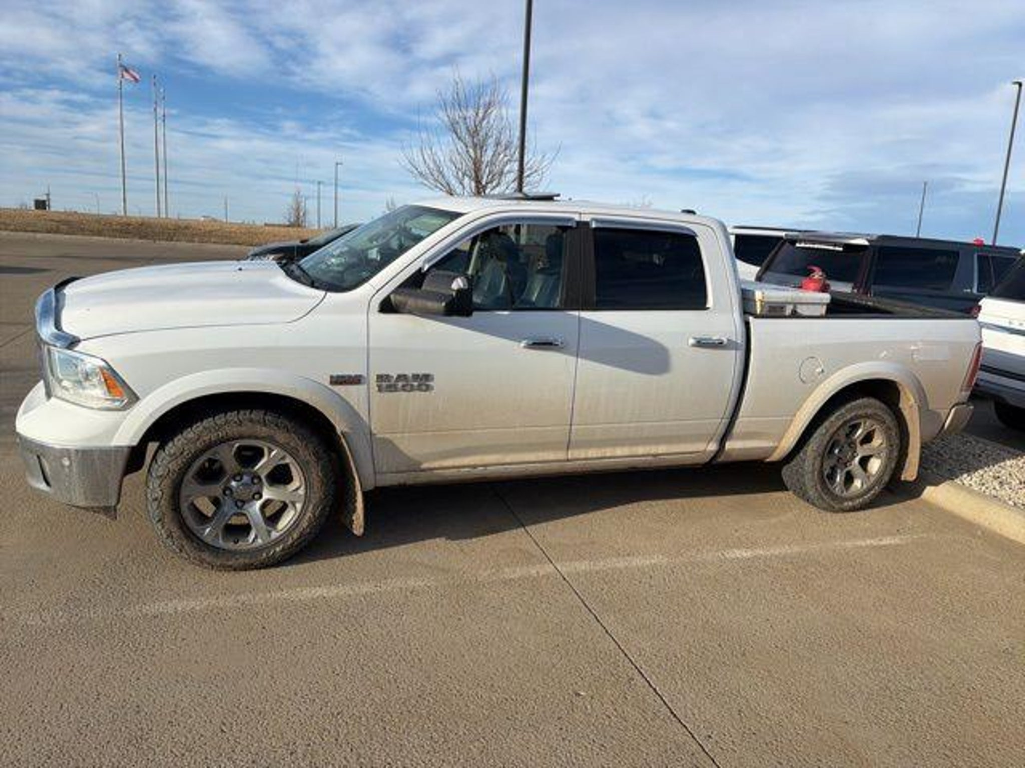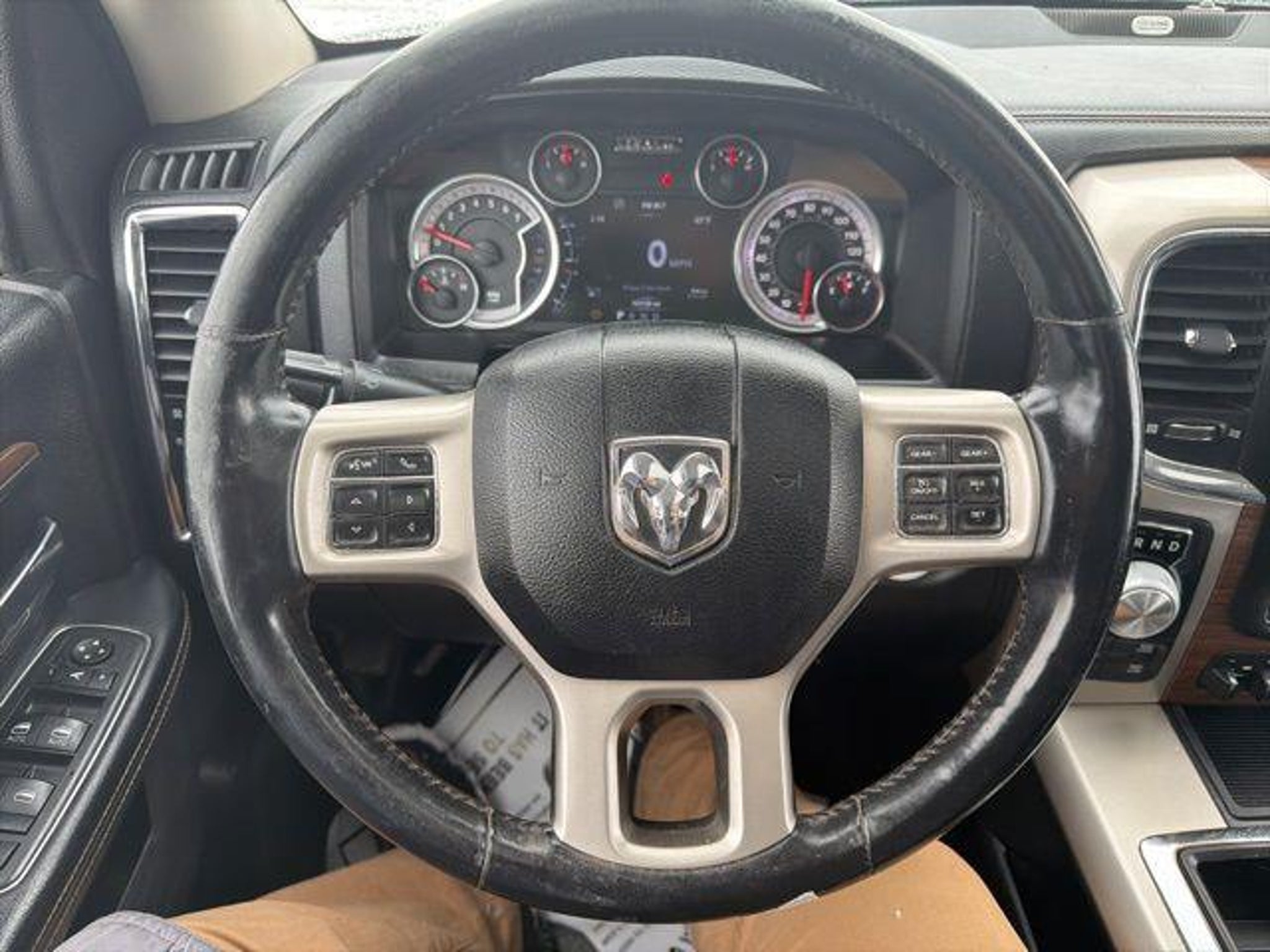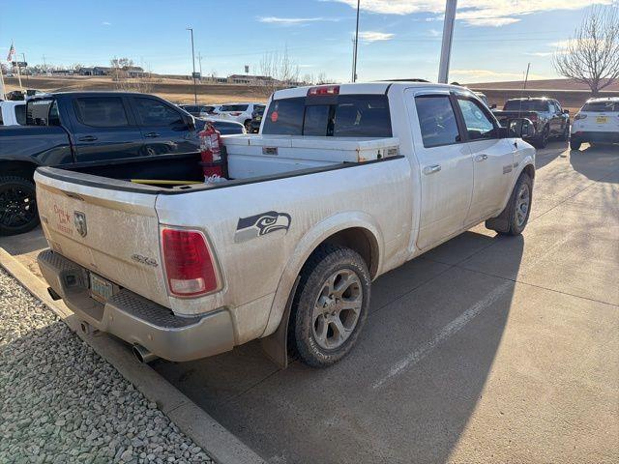 Backup Camera, Leather Seats. Odometer is 47473 miles below market average! Awards: * Green Car Journal 2015 Green Truck of the Year * 2015 KBB.com Best Buy Awards Finalist * 2015 KBB.com 15 Best Family Cars Based on 2017 EPA mileage ratings. Use for comparison purposes only. Your mileage will vary depending on how you drive and maintain your vehicle, driving conditions and other factors. We have a Google Rating of 4.6, come in and see why our customers love us! We are the largest Ford Dealership in North Dakota. We service all makes and models. We have a full service Body Shop. Our Used Car Managers thoroughly research the market to insure our prices represent the most value for your money. Some of the factors used to make this determination are equipment, miles, condition, and, vehicle history. We take this approach to pricing to ensure a hassle free purchase experience. Check out the rest of the features on this vehicle. Convenience Group (Auto High Beam Headlamp Control, Keyless Enter-N-Go, Rain Sensitive Windshield Wipers, and Remote Proximity Keyless Entry), Quick Order Package 26H Laramie, 1 Yr. Trial (Registration Required), 10 Speakers, 20 x 9 Chrome Clad Aluminum Wheels, 32 Gallon Fuel Tank, 4-Wheel Disc Brakes, 5-Year SiriusXM Traffic Service, 5-Year SiriusXM Travel Link Service, 8.4 Touchscreen Display, ABS brakes, Adjustable pedals, Air Conditioning, Alloy wheels, AM/FM radio, Anti-Spin Differential Rear Axle, Audio memory, Auto-dimming door mirrors, Auto-dimming Rear-View mirror, Automatic temperature control, Brake assist, Bumpers: chrome, Center Hub, Compass, Delay-off headlights, Driver door bin, Driver vanity mirror, Dual front impact airbags, Dual front side impact airbags, Electronic Stability Control, Electronically Controlled Throttle, Emergency communication system, Front anti-roll bar, Front Center Armrest w/Storage, Front dual zone A/C, Front fog lights, Front reading lights, Front wheel independent suspension, Fully automatic headlights, Garage door transmitter, GPS Antenna Input, GPS Navigation, Harman Radio Manufacturer, HD Radio, Heated door mirrors, Heated front seats, Heated steering wheel, Illuminated entry, Integrated Voice Command w/Bluetooth, Leather steering wheel, Leather Trim 40/20/40 Bench Seat, Low tire pressure warning, Media Hub (SD, USB, AUX), Memory seat, Occupant sensing airbag, Outside temperature display, Overhead airbag, Overhead console, Panic alarm, ParkSense Front/Rear Park Assist System, ParkView Rear Back-Up Camera, Passenger door bin, Passen