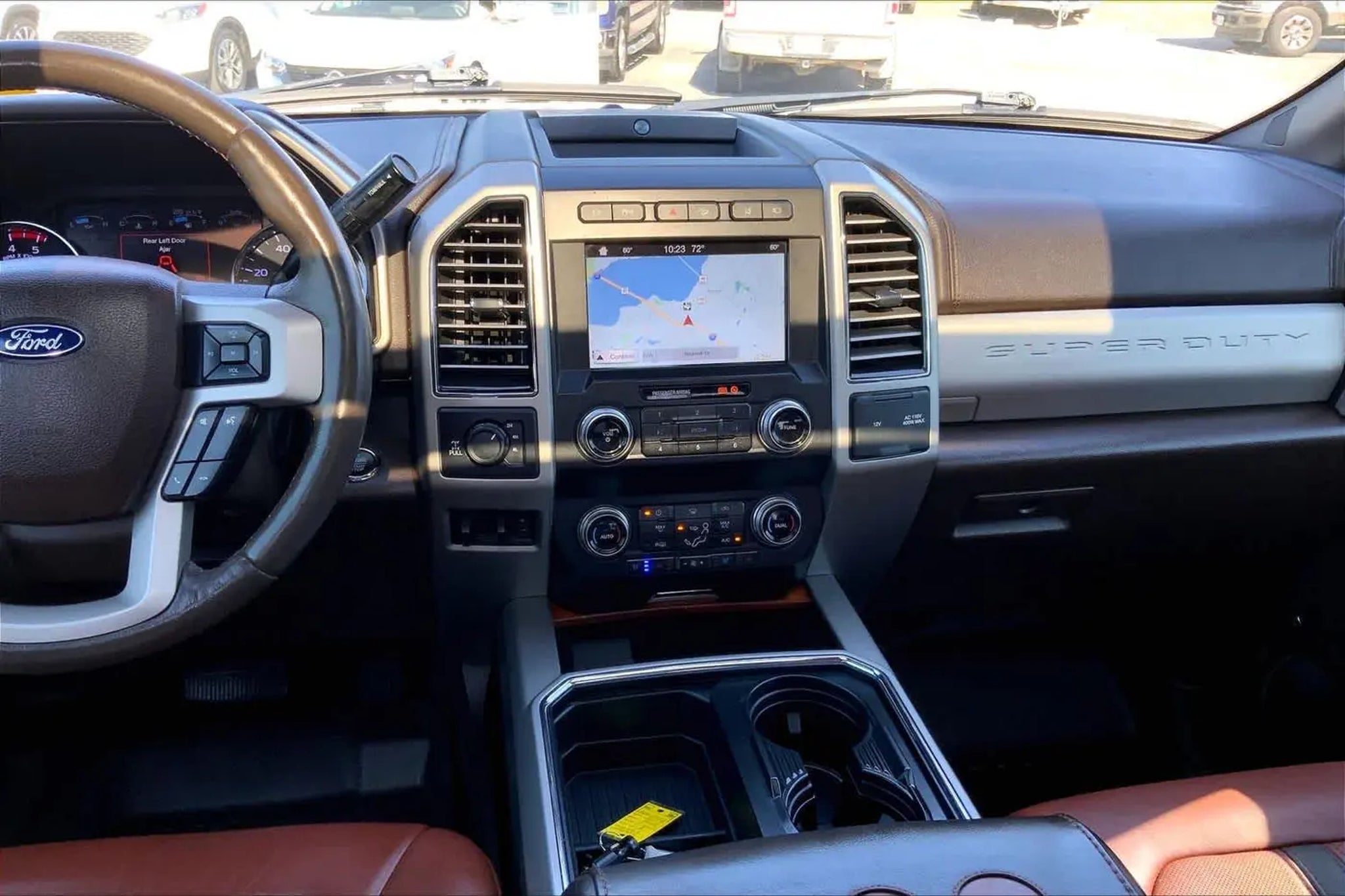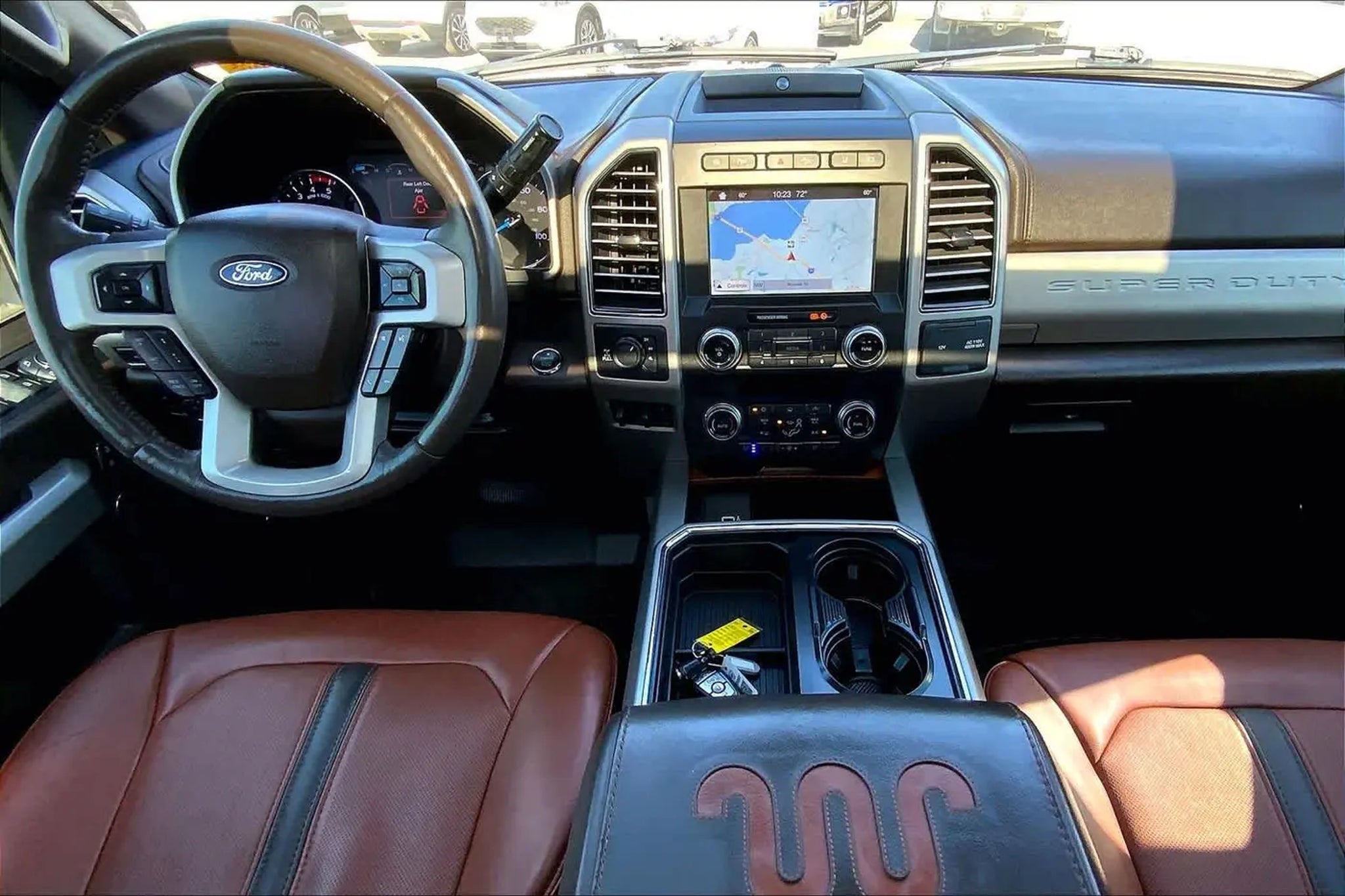 Heated/Cooled Leather Seats, Nav System, 4x4, Aluminum Wheels, Hitch, ENGINE: 6.7L 4V OHV POWER STROKE V8 TURBO DIESEL B20, ENGINE: 6.7L 4V OHV POWER STROKE V8 T... TOW TECHNOLOGY BUNDLE, KING RANCH ULTIMATE PACKAGE, CHROME PACKAGE KEY FEATURES INCLUDE Leather Seats, Navigation, 4x4, Heated Driver Seat, Cooled Driver Seat Ford King Ranch with White Platinum Metallic Tri-Coat exterior and Java interior features a 8 Cylinder Engine with 450 HP at 2800 RPM*. OPTION PACKAGES ENGINE: 6.7L 4V OHV POWER STROKE V8 TURBO DIESEL B20 manual push-button engine-exhaust braking and intelligent oil-life monitor, Extra Heavy-Duty 220 Amp Alternator, 34 Gallon Fuel Tank, 3.31 Axle Ratio, Dual 78-AH 750 CCA Batteries, KING RANCH ULTIMATE PACKAGE Twin Panel Power Moonroof, map lights and moonroof switches, Blind Spot Information System (BLIS), cross-traffic alert and trailer tow (BLIS sensor in taillamp), Tailgate Step & Handle, Quad Beam LED Headlamps & LED Taillamps, LED fog lamps and LED Center High-Mounted Stop Lamp (CHMSL), Power-Deployable Running Boards, Multi-Contour Seats, TOW TECHNOLOGY BUNDLE Ultimate Trailer Tow Camera System, 360 degree camera system and trailer reverse guidance, Display appears in center-stack screen, NOTE: Does not include customer placed trailer camera, Rear CHMSL Camera, Display in center stack screen, LED Center High-Mounted Stop Lamp (CHMSL) w/cargo light and rear video camera, Adaptive Steering, Lane-Keeping Alert, CHROME PACKAGE 2 front chrome tow hooks and chrome rear tailgate applique, Unique Chrome Mirror Caps, Chrome Front & Rear Bumpers, Wheels: 18 Chrome PVD Aluminum, light caribou wheel ornaments w/King Ranch logo, Body-Color Door Handles w/Chrome Insert, 6 Angular Chrome Step Bars, Chrome Exhaust Tip, ADAPTIVE CRUISE CONTROL & COLLISION WARNING brake support, ELECTRONIC-LOCKING W/3.55 AXLE RATIO, TRANSMISSION: TORQSHIFT 6-SPEED AUTOMATIC (6R140), SelectShift. WHY BUY FROM US Buy with confidence at Group 1 where every used vehicle, up to 175,000 miles, comes with a one month 1,000-mile limited warranty along with a 3-day 250-mile exchange policy. Some exclusions may apply, see Buyers Guide for specifics. Every vehicle is priced to market and includes a Carfax History Report. EXPERTS ARE SAYING Hook up your trailer, load up all your heaviest gear, and youll still have a vehicle that will pamper you on the longest of road trips. The 2019 Ford F-250 Super Duty is at the head of a class of modern heavy-duty trucks with maximum comfort and capability. -Edmunds.com. BUY WITH CONFIDENCE CARFAX 1-Owner AutoCheck One Owner MORE ABOUT US Theres nothing we love more than supporting community events and giving back when and where we can. Horsepower calculations based on trim engine configuration. Please confirm the accuracy of the included equipment by calling us prior to purchase.