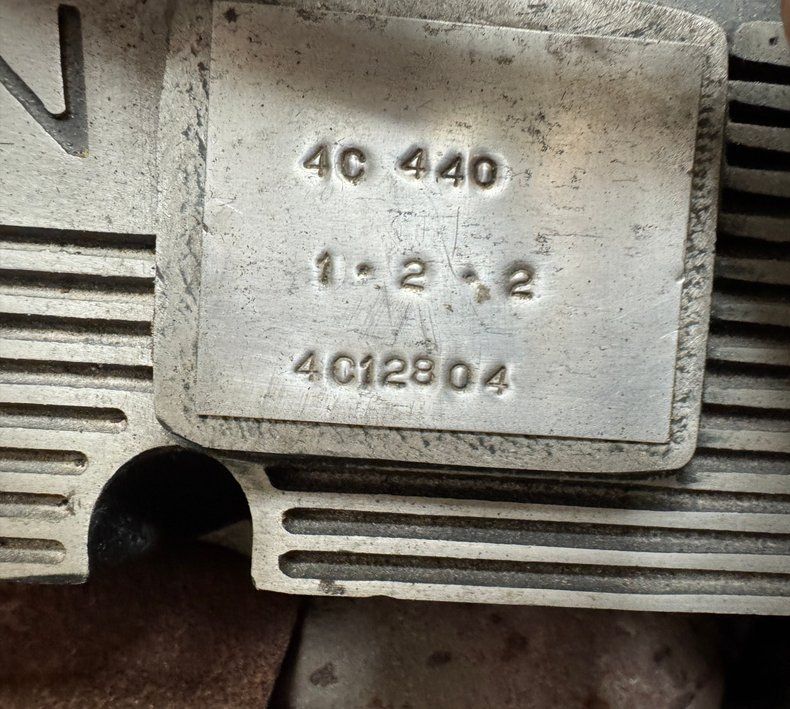 Here's the brute, a numbers matching 440ci V8 is in the busy engine bay, rated at 280 horsepower and fueled via MSD Atomic electronic fuel injection. It's backed by a period-correct A727 Torqueflite 3-speed automatic transmission which routes power to the rear axle with 3.07 gears. The car is equipped with power steering, power brakes, and air conditioning and the bay is relatively clean and driver quality, featuring valve covers engraved with the Jensen name. As we shut the hood, we note some rust near the hinges.