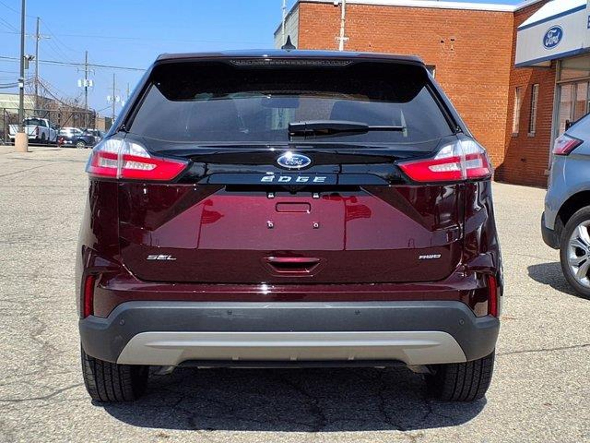 BURGUNDY VELVET MET TINT CC $495.00 CONVENIENCE PACKAGE $1,250.00 HEATED STEERING WHEEL $350.00 FORD CO-PILOT360 ASSIST $775.00 .ADAPT CRUISE W/S&G & LANE CTR .EVASIVE STEERING ASSIST .CONNECTED NAV .PERIMETER ALARM .POWER LIFTGATE .REMOTE START SYSTEM .UNIVERSAL GARAGE DOOR OPENER .WIRELESS CHARGING PAD MINI SPARE WHL/TIRE 100.00 This vehicle is a 2024 Ford Edge SEL, a certified pre-owned car with low mileage of 8,923 miles. It has an all wheel drive system, a 2.0 liter EcoBoost Turbo I4 250hp 275 lb-ft engine, and direct injection for maximum power and efficiency. The burgundy velvet metallic tinted clearcoat exterior gives it a luxurious look, while the dune interior provides comfort and style. It has a crash test rating of 5 out of 5 stars and features such as touch screen display, Bluetooth audio connection, blind spot sensor, hill start assist, on demand four wheel drive, Bluetooth phone connectivity, and leather seats for added convenience. This car is sure to turn heads on the road! Call Bill Brown Ford Pre-owned at (734) 522-0030 to confirm availability and schedule a no-obligation test drive!