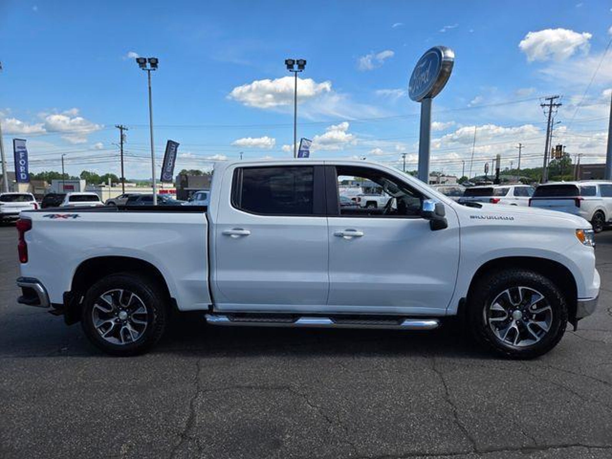 Summit White 2022 Chevrolet Silverado 1500 LT LT1 4WD 10-Speed Automatic EcoTec3 5.3L V8 10-Speed Automatic, 4WD, Jet Black Cloth, 10-Way Power Driver Seat w/Lumbar, 12.3 Multicolor Reconfigurable Digital Display, 120-Volt Bed Mounted Power Outlet, 120-Volt Instrument Panel Power Outlet, 170 Amp Alternator, 220 Amp Alternator, 3.23 Rear Axle Ratio, 4-Wheel Disc Brakes, 4 Chromed Round Assist Steps (LPO), 40/20/40 Front Split-Bench Seat, 6 Speakers, 6-Speaker Audio System, ABS brakes, Air Conditioning, All-Star Edition, All-Weather Floor Liner (LPO), Alloy wheels, AM/FM radio: SiriusXM with 360L, Apple CarPlay/Android Auto, Auto High-beam Headlights, Auto-Locking Rear Differential, Automatic Emergency Braking, Automatic temperature control, Auxiliary External Transmission Oil Cooler, Bluetooth? For Phone, Brake assist, Bumpers: chrome, Chevrolet Connected Access Capable, Chevytec Spray-On Black Bedliner, Chrome Mirror Caps, Cloth Seat Trim, Color-Keyed Carpeting Floor Covering, Compass, Convenience Package, Deep-Tinted Glass, Delay-off headlights, Driver door bin, Driver vanity mirror, Dual front impact airbags, Dual front side impact airbags, Dual Rear USB Ports (Charge Only), Dual-Zone Automatic Climate Control, Electric Rear-Window Defogger, Electrical Steering Column Lock, Electronic Cruise Control, Electronic Stability Control, External Engine Oil Cooler, EZ Lift Power Lock & Release Tailgate, Following Distance Indicator, Forward Collision Alert, Front anti-roll bar, Front Center Armrest w/Storage, Front dual zone A/C, Front Frame-Mounted Black Recovery Hooks, Front License Plate Kit, Front Pedestrian Braking, Front reading lights, Front Rubberized Vinyl Floor Mats, Front wheel independent suspension, Fully automatic headlights, HD Rear Vision Camera, Heated door mirrors, Heated Driver & Front Outboard Passenger Seats, Heated front seats, Heated Power-Adjustable Outside Mirrors, Heated Steering Wheel, Heated steering wheel, High Capacity Suspension Package, Hitch Guidance, Illuminated entry, Inside Rear-View Mirror w/Tilt, Integrated Trailer Brake Controller, IntelliBeam Automatic High Beam On/Off, Keyless Open & Start, Lane Keep Assist w/Lane Departure Warning, Leather Wrapped Steering Wheel, LED Cargo Area Lighting, Low tire pressure warning, Manual Tilt/Telescoping Steering Column, Molded Black Splash Guards (LPO), Not Equipped w/Dynamic Fuel Management, Not Equipped w/Heated/Ventilated Front Seats, Occupant sensing airbag, OnStar & Chevrolet Connected Services Capable, Outside temperature displa