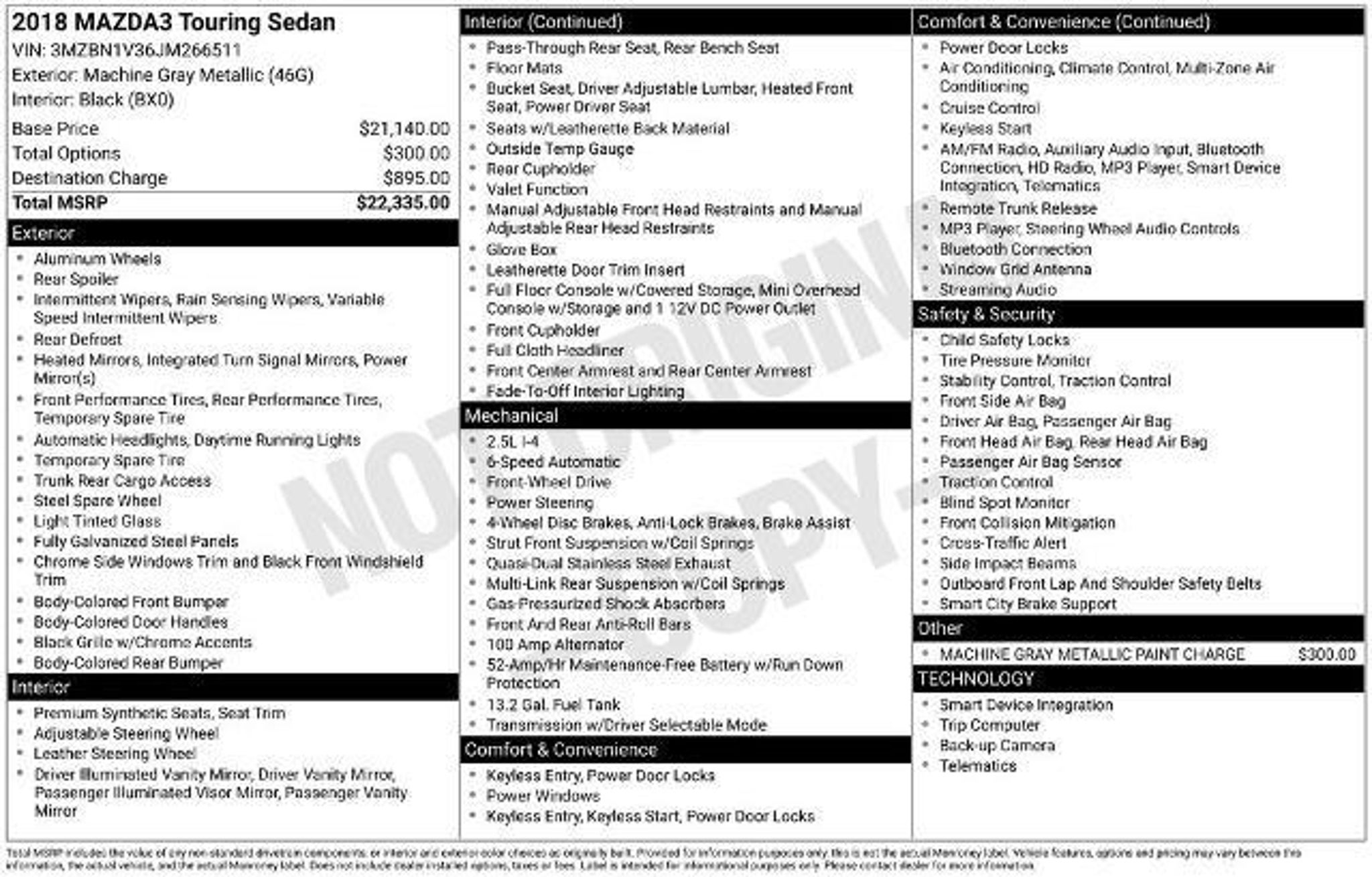 Details > 2018 Mazda MAZDA3 Touring 4DR Sedan 6M For Sale in Bow, NH Private Party Sellers Click here to place your ad now! You auta tell them you saw the ad in AutaBuy when you call or email. 1/27 2/27 3/27 4/27 5/27 6/27 7/27 8/27 9/27 10/27 11/27 12/27 13/27 14/27 15/27 16/27 17/27 18/27 19/27 20/27 21/27 22/27 23/27 24/27 25/27 26/27 27/27 View 27 Photos View All Add to My Garage Parked in Your Garage! Grappone Ford Contact Seller: I would like to: Make Offer Check Availability Ask A Question Request More Photos Check Financing Options Send a copy of this message to me Add this listing to my garage Send to Mobile Mileage 40,169 Exterior Color Machine Gray Metallic Interior Color Black Doors 4 Engine 2.5L I4 Transmission 6 Speed Manual Stock # MQ0816A VIN 3MZBN1V36JM266511 Estimated Monthly Payment $291 mo Apply Now J.J. Best Banc & Co. 2018 Mazda MAZDA3 Touring 4DR Sedan 6M Description: 2018 Mazda Mazda3 Touring Machine Gray Metallic *GRAPPONE PEACE OF MIND* 3 day money back guarantee and 30 day/1,000 mile exchange**Upfront pricing, all the time on every vehicle. 3 month/3000 mile warranty. Free Carfax and 129 point inspection. · Mileage: 40,169 · Color: Machine Gray Metallic Price: $16,995. Price: $16,750. Mileage 40,169 Exterior Color Machine Gray Metallic Interior Color Black Doors 4 Engine 2.5L I4 Transmission 6 Speed Manual Stock # MQ0816A VIN 3MZBN1V36JM266511 Estimated Monthly Payment $291 mo Apply Now J.J. Best Banc & Co. Add to My Garage Parked in Your Garage! Message Seller Grappone Ford Contact Seller: I would like to: Make Offer Check Availability Ask A Question Request More Photos Check Financing Options Send a copy of this message to me Add this listing to my garage Offered for sale by Grappone Ford BOW, NH Price: $16,995. Price: $16,750. Offered for sale by Grappone Ford BOW, NH [entire inventory] Ask Auta Intelligence The first collector-car AI built directly into a classic car marketplace What colors did these come in? How easy are parts to find for this model? How far is this from me? What trim levels were available for this model? When was this model first introduced? Tell me about this model How many of these were produced? What factory options were available on this model? What engine options did these come with? What does this VIN number tell me? How many MAZDA3s were produced in Gray? Can you show me more cars for a similar price? What kind of mileage do these get? Where is this located? What transmission options did these offer? Do you have a similar car to sell? List It Now! Questions about this car? Ask Auta Intelligence for production numbers, available options, etc. · Subscribe to AutaBuy! · Send a Gift Subscription Notice to a Friend
