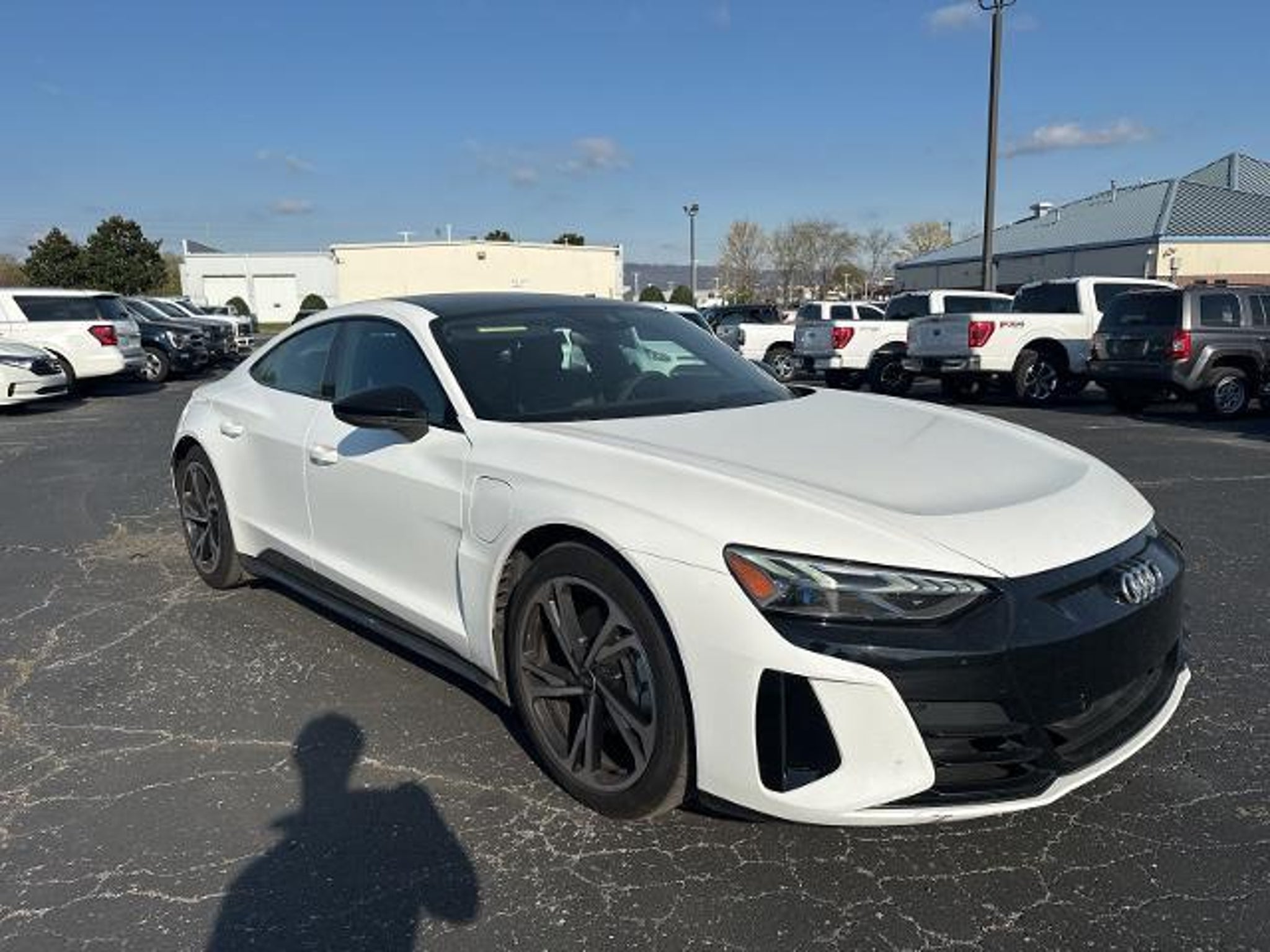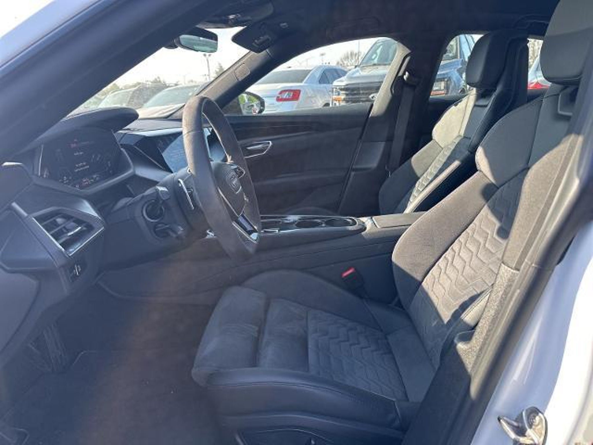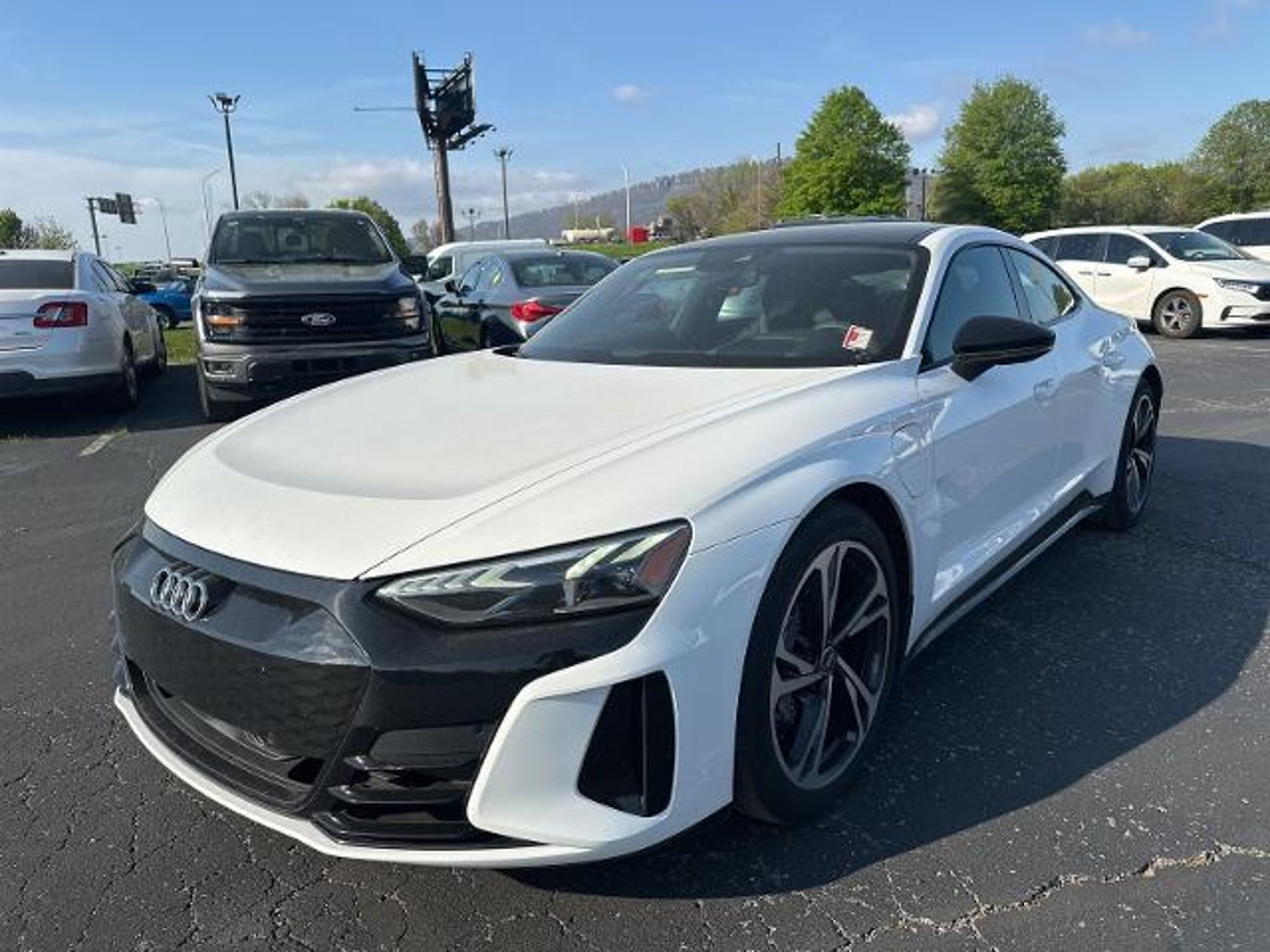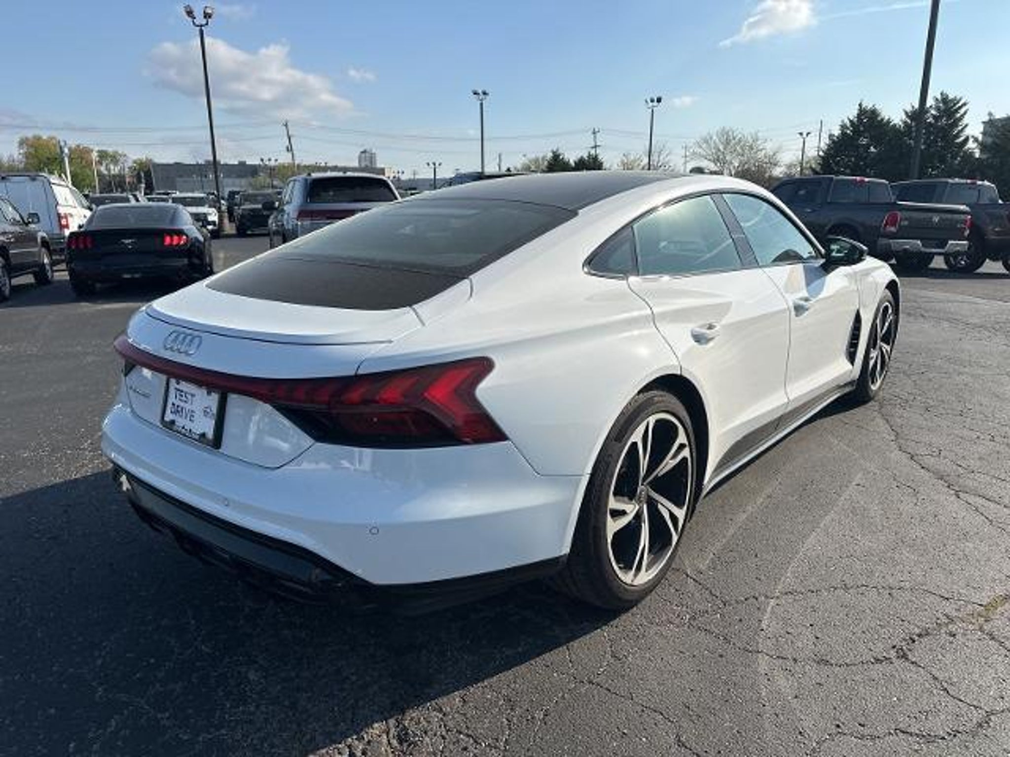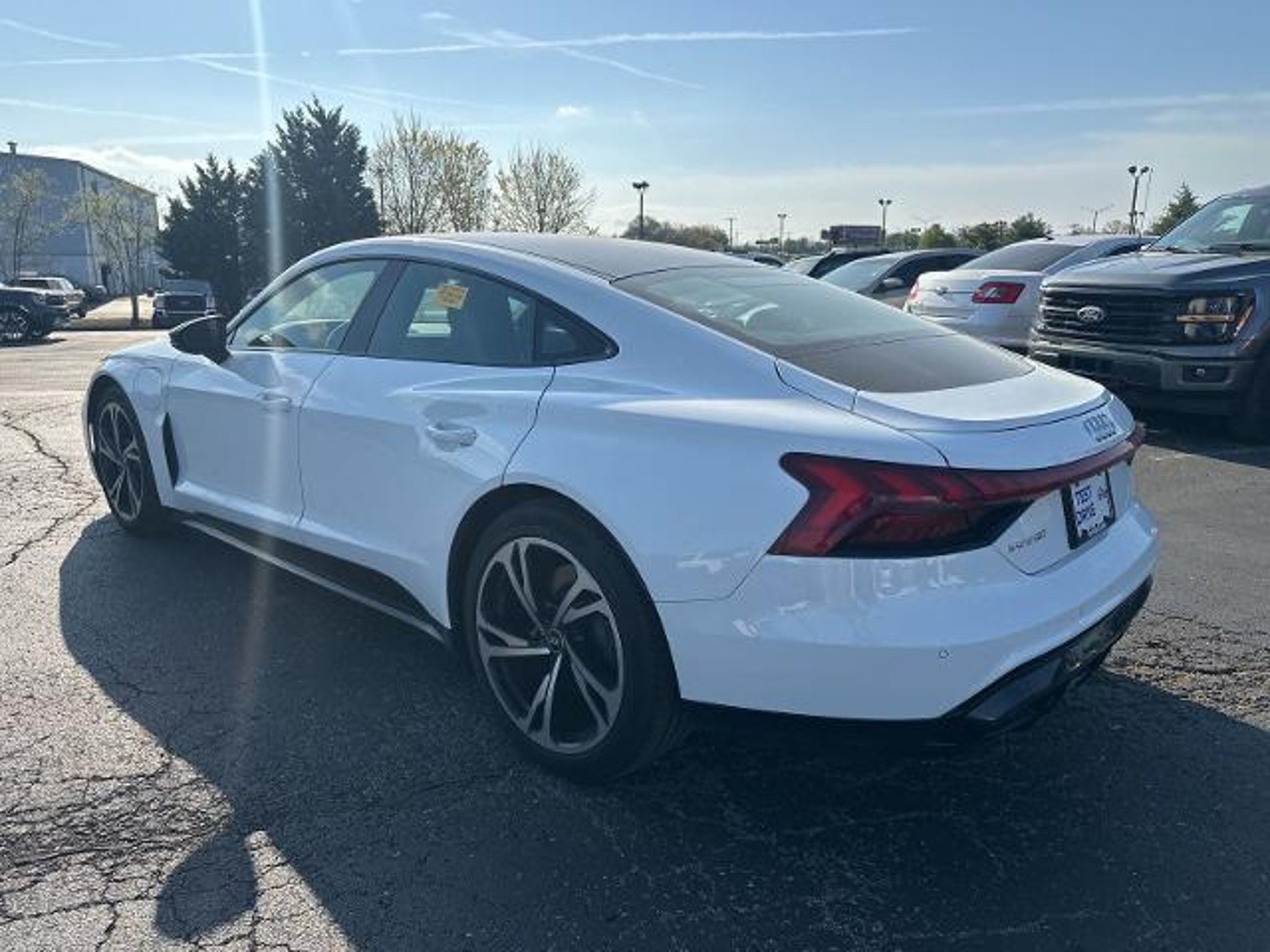 2022 Audi e-tron GT Premium Plus quattro quattro e-tron GT Premium Plus quattro, 4D Sedan, Electric Motor, 1-Speed Automatic, quattro, Ibis White, Black Leather, 10 Speakers, 4-Wheel Disc Brakes, ABS brakes, Adaptive Cruise Assist w/Lane Guidance, Adaptive suspension, Air Conditioning, Alloy wheels, Audi smartphone interface (Apple CarPlay/Android Auto), Auto High-beam Headlights, Auto tilt-away steering wheel, Auto-dimming door mirrors, Auto-dimming Rear-View mirror, Auto-leveling suspension, Automatic temperature control, Black-Optic Exterior Kit, Brake assist, Bumpers: body-color, Compass, Cruise Control, Delay-off headlights, Driver Assistance Package, Driver door bin, Driver vanity mirror, Dual front impact airbags, Dual front side impact airbags, Dynamic Steering, E-Torque Vectoring Plus, Electronic Stability Control, Emergency communication system: Audi connect CARE, PRIME & PLUS, Exterior Mirror Housings in Black Optic, Four wheel independent suspension, Front anti-roll bar, Front Bucket Seats, Front Center Armrest, Front dual zone A/C, Front fog lights, Front reading lights, Fully automatic headlights, Garage door transmitter: HomeLink, Genuine wood door panel insert, HD Matrix-Design LED Headlights, Heated and Cooled Seats, Heated door mirrors, Heated Front Sport Seats, High Gloss Black Grille, Illuminated entry, Knee airbag, Leatherette/Dinamica Seating Surfaces, Low tire pressure warning, Matte Carbon Atlas Inlays, Memory seat, Navigation System, Occupant sensing airbag, Outside temperature display, Overhead airbag, Overhead console, Panic alarm, Passenger door bin, Passenger vanity mirror, Performance Package, Power door mirrors, Power driver seat, Power passenger seat, Power steering, Power windows, Radio data system, Radio: Audi Sound System, Rain sensing wipers, Rear air conditioning, Rear anti-roll bar, Rear reading lights, Rear seat center armrest, Rear side impact airbag, Rear Wheel Steering, Rear window defroster, Rearview Camera, Remote keyless entry, Security system, Speed-sensing steering, Split folding rear seat, Spoiler, Sport steering wheel, Steering wheel memory, Steering wheel mounted audio controls, Telescoping steering wheel, Tilt steering wheel, Traction control, Trip computer, Turn signal indicator mirrors, Variably intermittent wipers, Wheels: 20 5-Double-Spk Design Bi-Color Titanium, Wheels: 20 Bi-Color Black 5-Double-Spoke Design, (Must finance with Ford Motor Credit to receive online pricing - see dealer for details.) Proudly, e-tron GT Premium Plus quattro, 4D Sedan, E