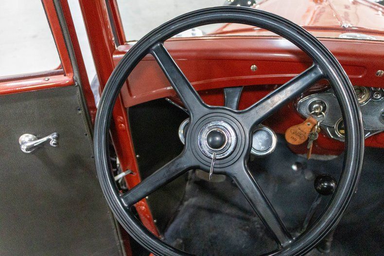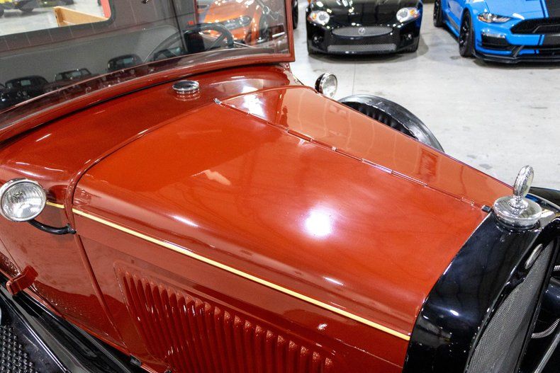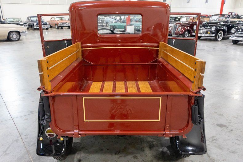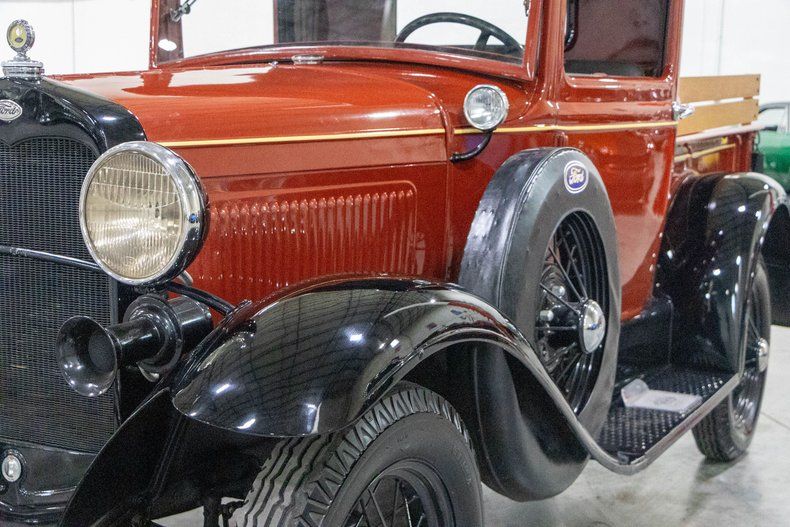 This beautifully restored 1931 Ford Model A pickup is a true piece of American history, presented in a timeless and highly desirable color combination. Finished in a rich red body with contrasting black fenders and a black vinyl roof, this truck captures the essence of early Ford design while benefiting from a restoration completed approximately five years ago. The paint shows very well with a deep gloss, and the overall presentation reflects the care and attention it has received.