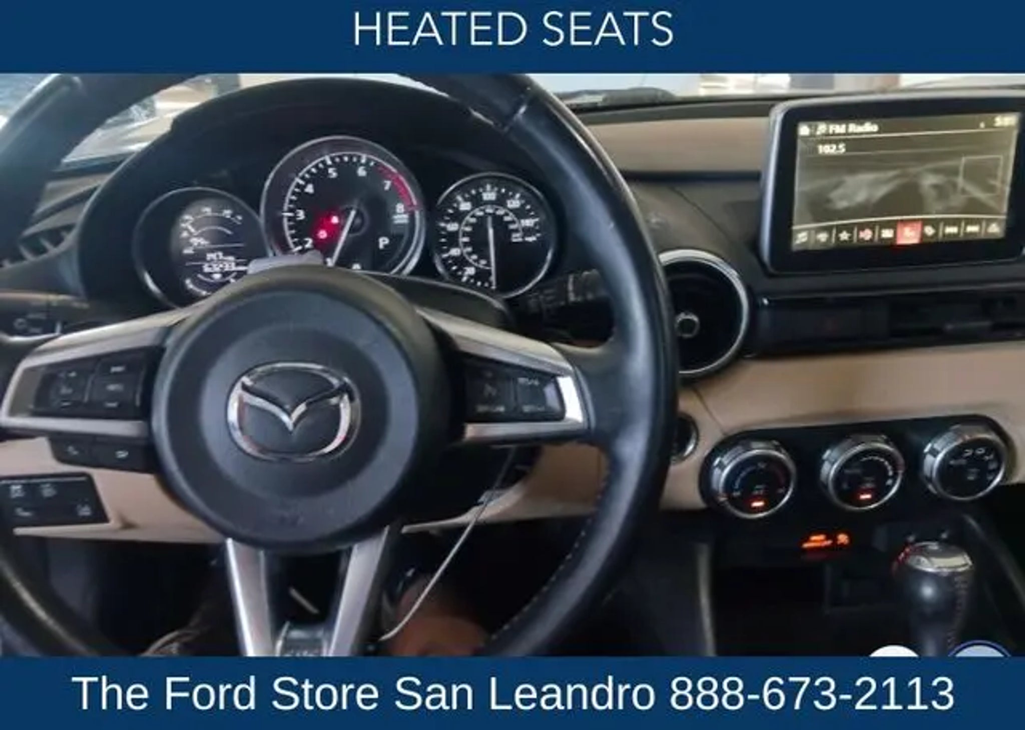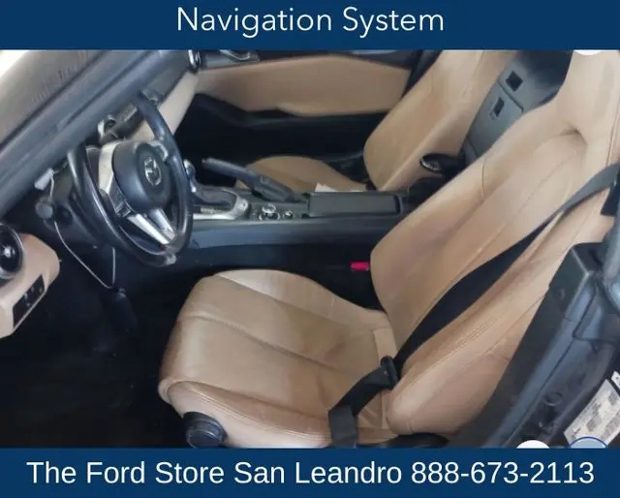 *WOW!! JUST LOOK AT THE PAMPERED LOW MILEAGE! WHAT MAKES THIS GEM SO SPECIAL?? THIS IS THE ONLY GRAY/TAN GRAND TOURING ROADSTER IN THE WEST AND PRICED TO SELL QUICKLY! AND IT IS LOADED WITH EVERY POSSIBLE OPTION! TRULY IN FLAWLESS CONDITION *FULLY LOADED 2016 MAZDA MIATA GRAND TOURING ROADSTER *FEATURES GALORE! MPG GALORE WITH 36 MPG!! THE FEATURES AND OPTIONS DON'T DISAPPOINT ON THIS COOL CAT! IT COMES FULLY LOADED WITH HEATED PREMIUM LEATHER SEATS, MAZDA NAVIGATION, REAR VIEW CAMERA, ADVANCED SMART KEYLESS ENTRY SYSTEM, BLUETOOTH, REARVIEW CAMERA, HEATED SEATS, 4-Wheel Disc ABS Brakes, 9 Speakers, Advanced Keyless Entry System, Air Conditioning, Automatic temperature control, Brake assist, Cargo Tray, Convertible roof lining, Dual front side impact airbags, Electronic Stability Control, Emergency communication system: Mazda Connect, Four wheel independent suspension, Front Bucket Seats, Fully automatic headlights, Garage door transmitter: HomeLink, Heated door mirrors, Heated front seats, Interior Package, Leather Shift Knob, Leather Upholstery, Low tire pressure warning, Navigation System, Occupant sensing airbag, Panic alarm, Power steering, Power windows, Radio data system, Radio: AM/FM/HD w/Navigation & CD Player, Reclining Front Heated Bucket Seats, Remote keyless entry, Security system, Speed-sensing steering, Steering wheel mounted audio controls, Tilt steering wheel, Weather Package. Welcome to San Leandro Ford! Located off Hwy 880 Marina East exit in San Leandro. From the moment you walk into our showroom, you'll know our commitment to Great Service. We strive to make your experience with San Leandro Ford a good one for the life of your vehicle.