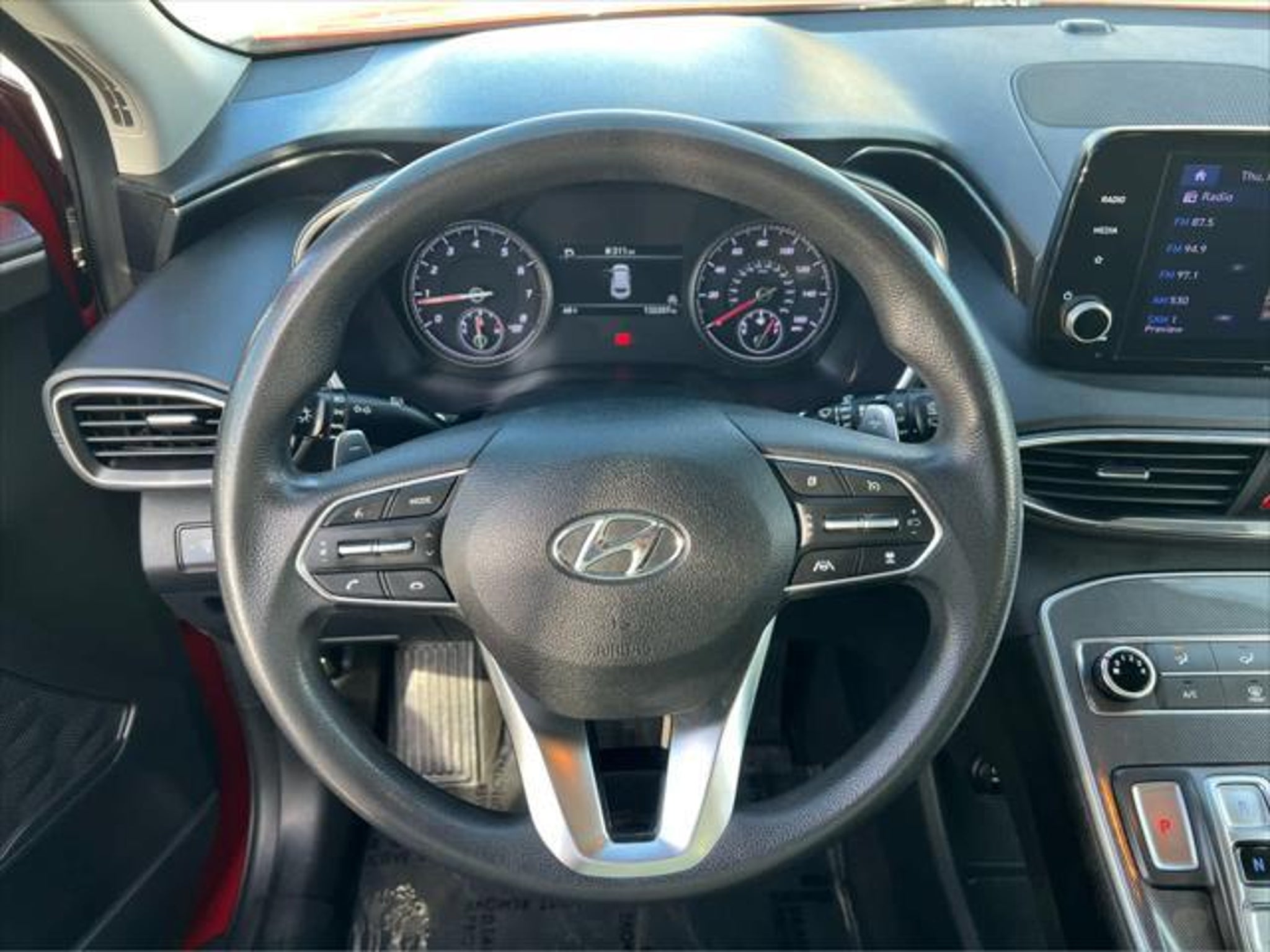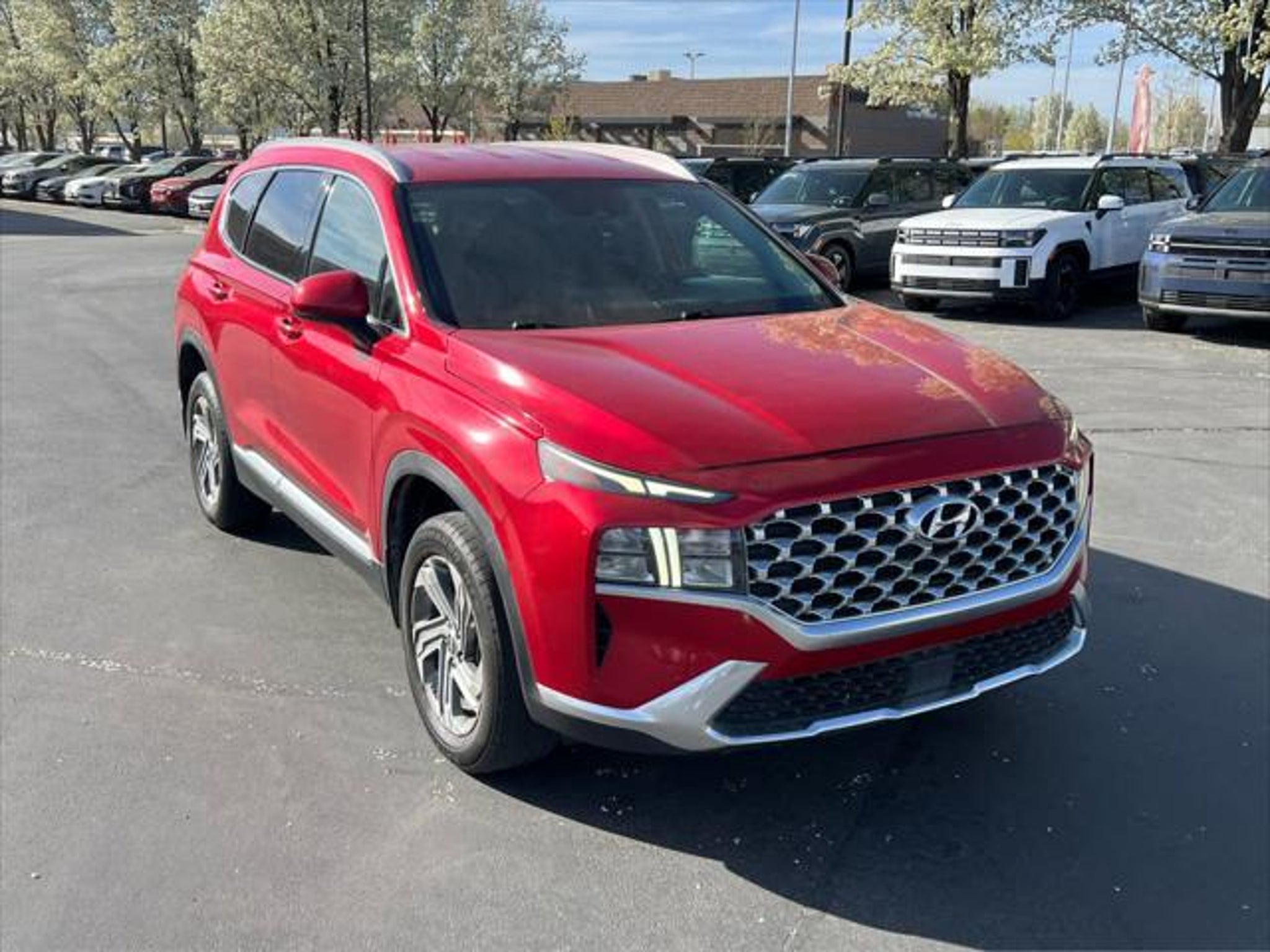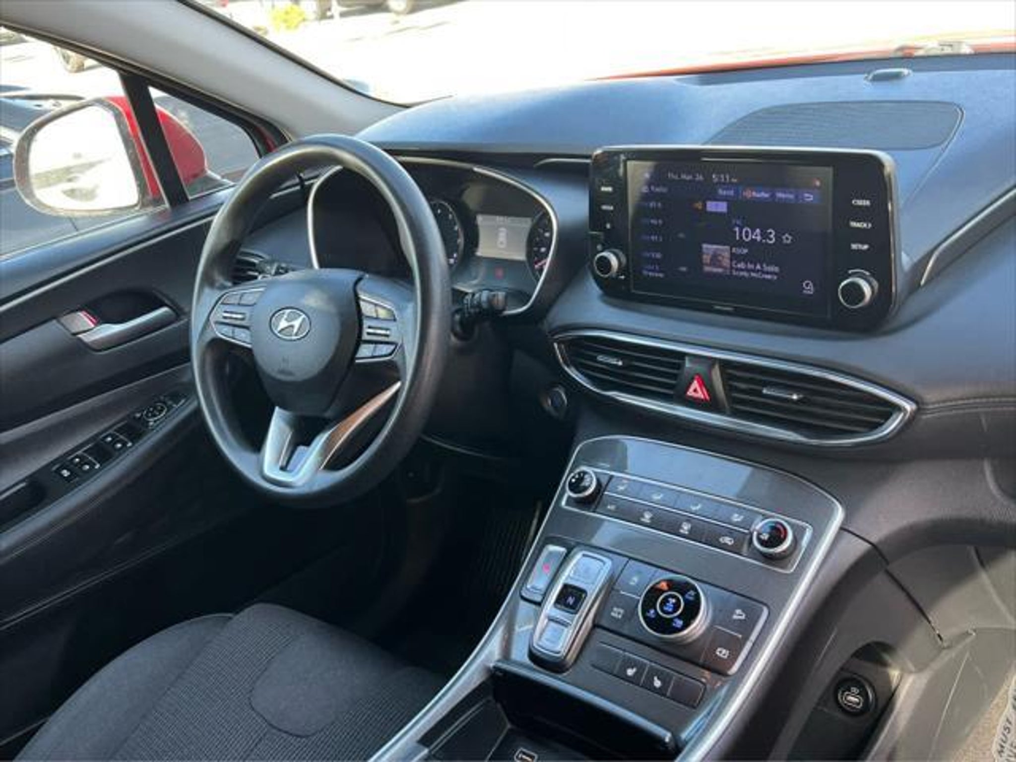 Clean. EPA 25 MPG Hwy/22 MPG City! SEL trim. Heated Seats, Remote Engine Start, Onboard Communications System, iPod/MP3 Input, Back-Up Camera, All Wheel Drive, Aluminum Wheels, Satellite Radio, Non-Smoker vehicle. AFFORDABILITY This Santa Fe is priced $2,400 below J.D. Power Retail. KEY FEATURES INCLUDE All Wheel Drive, Heated Driver Seat, Back-Up Camera, Satellite Radio, iPod/MP3 Input, Onboard Communications System, Aluminum Wheels, Remote Engine Start. Rear Spoiler, MP3 Player, Remote Trunk Release, Privacy Glass. EXCELLENT SAFETY FOR YOUR FAMILY Lane Keeping Assist, Blind Spot Monitor, Cross-Traffic Alert, Child Safety Locks, Electronic Stability Control, Brake Assist, 4-Wheel ABS, Tire Pressure Monitoring System, 4-Wheel Disc Brakes Hyundai SEL with Calypso Red exterior and Black interior features a 4 Cylinder Engine with 191 HP at 6100 RPM*. Clean Pricing analysis performed on 4/3/2026. Horsepower calculations based on trim engine configuration. Fuel economy calculations based on original manufacturer data for trim engine configuration. Please confirm the accuracy of the included equipment by calling us prior to purchase.