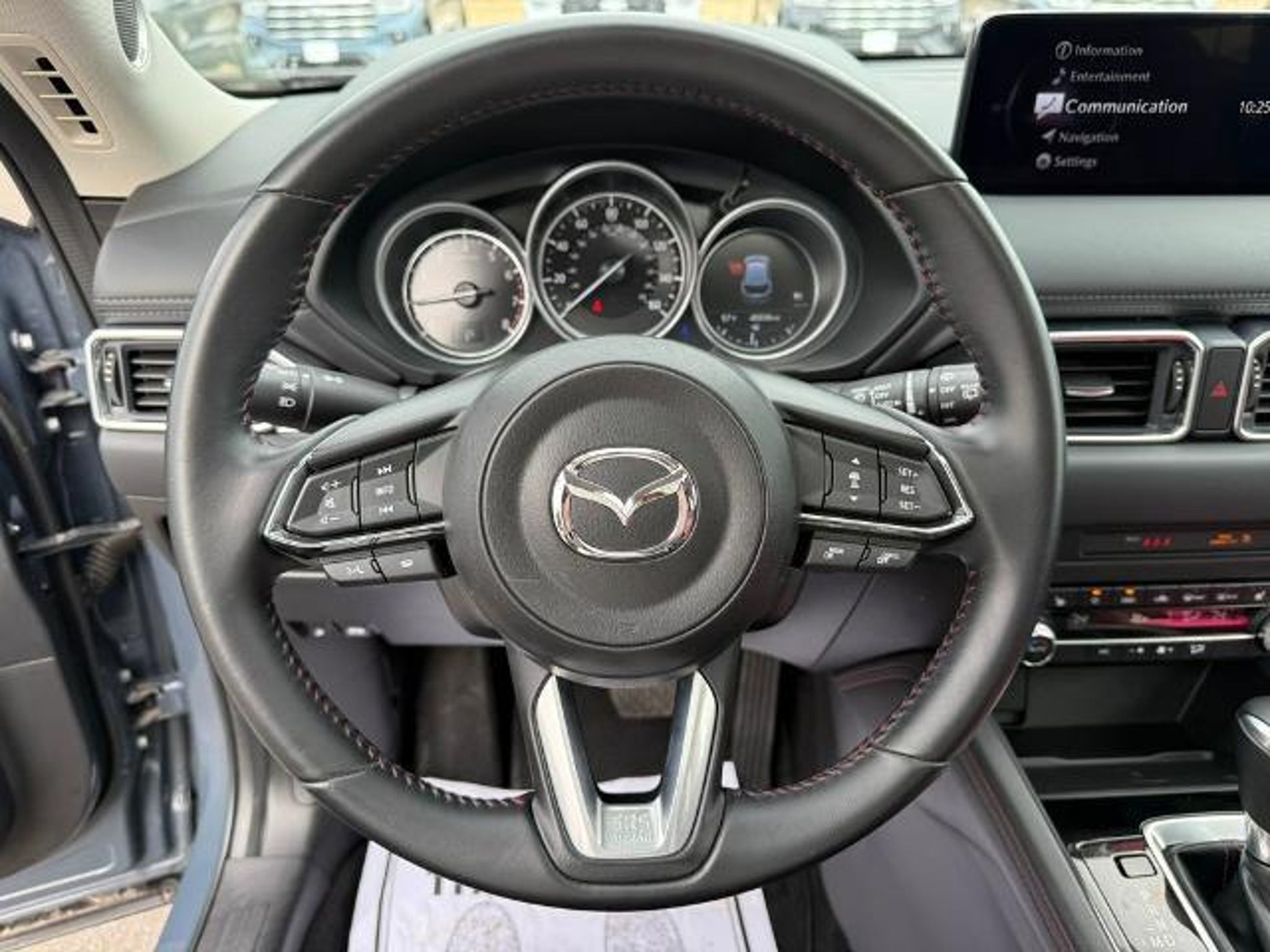 Priced below KBB Fair Purchase Price! 26/30 City/Highway MPG 2025 Mazda CX-5 2.5 S Carbon Edition Wisconsin Safety Inspection performed on this vehicle 10 Speakers, 4-Wheel Disc Brakes, ABS brakes, Air Conditioning, Alloy wheels, AM/FM radio, AppLink/Apple CarPlay and Android Auto, Auto High-beam Headlights, Auto-dimming Rear-View mirror, Automatic temperature control, Brake assist, Bumpers: body-color, Delay-off headlights, Driver door bin, Driver vanity mirror, Dual front impact airbags, Dual front side impact airbags, E911 Automatic Emergency Notification, Electronic Stability Control, Emergency communication system: MAZDA CONNECT, Exterior Parking Camera Rear, Four wheel independent suspension, Front anti-roll bar, Front Bucket Seats, Front Center Armrest w/Storage, Front dual zone A/C, Front reading lights, Fully automatic headlights, Garage door transmitter: HomeLink, Heated Front Bucket Seats, Heated front seats, Illuminated entry, Infotainment System Voice Command, Leather Seat Trim, Leather Shift Knob, Leather steering wheel, Low tire pressure warning, Memory seat, Multifunction Commander Control, Occupant sensing airbag, Outside temperature display, Overhead airbag, Overhead console, Pandora, Panic alarm, Passenger door bin, Passenger vanity mirror, Power door mirrors, Power driver seat, Power Liftgate, Power moonroof, Power passenger seat, Power steering, Power windows, Radio Broadcast Data System Program Information, Radio data system, Radio: AM/FM/HD Audio System, Rain sensing wipers, Rear anti-roll bar, Rear reading lights, Rear seat center armrest, Rear window defroster, Rear window wiper, Remote keyless entry, SMS Text Msg Audio Delivery & Reply, Speed control, Speed-sensing steering, Split folding rear seat, Spoiler, Steering wheel mounted audio controls, Tachometer, Telescoping steering wheel, Tilt steering wheel, Traction control, Trip computer, Turn signal indicator mirrors, Variably intermittent wipers, and Wheels: 19 x 7J Aluminum Alloy.