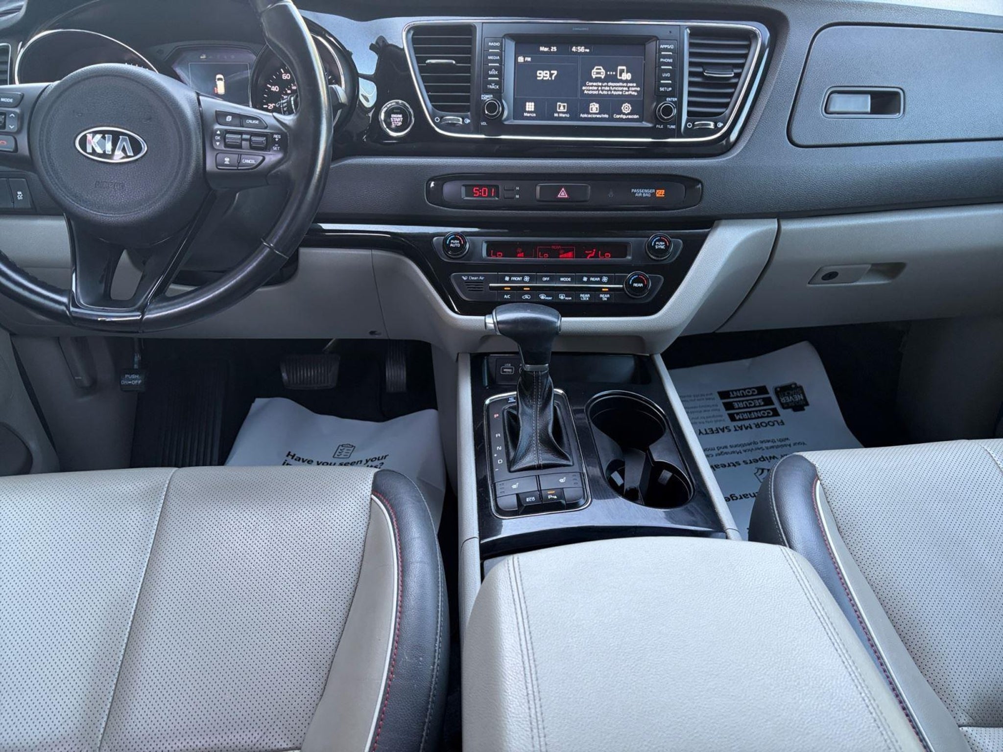 This 2018 Kia Sedona EX|has a Silky Silver exterior and Dark Graphite interior color with only 91,578 miles. Stock Number T26616A. You can connect with us by calling .\n \n\n\nNo Accidents! One Owner! \n \n\n OTHER NOTABLE FEATURES AND OPTIONS YOU SHOULD KNOW ABOUT: \n\n EX Advanced Premium Technology Package ($2,800 value) Autonomous Emergency Braking Blind Spot Detection with Rear Cross Traffic Alert Forward Collision Warning Driver's Seat Integrated Memory System 4-Way Power Driver Lumbar Support Lane Departure Warning 8-Way Power Passenger Seat Heated 2nd Row Seat Cushion Smart Cruise Control Supervision Meter Cluster with TFT Color LCD Screen Cargo Net ($50 value) Carpeted Floor Mats ($285 value) Mud Guards ($95 value) Advanced Technology Package ($2,800 value) Includes driver power 4-way lumbar support, 8-way power passenger seat, driver power passenger chauffeur seat switch, 3-stage heated 2nd row seat cushions, integrated memory system with driver seat and exterior mirror presets, blind spot detection, rear cross traffic alert, autonomous emergency braking, lane departure warning system, forward collision warning system, smart cruise control, and 3.5-inch OLED (Organic Light Emitting Diode) gauge color information center. \n\n\n\n Convenience Distance pacing cruise control with traffic stop-go. Set it and forget it. Road trips used to be stressful. Cruise control only managed speed, but not distance or safety. Now, with Distance pacing cruise control with traffic stop-go, simply set your desired speed and let sensor technology maintain a safe distance between you and the vehicle ahead. It's stop/go feature automatically brings the vehicle to a stop if traffic stops and resumes distance pacing cruise when traffic starts to move again. Distance pacing cruise control with traffic stop-go; your ultimate co-pilot. Safety and Security Forward collision mitigation - Forward thinking. You look away for just a second and suddenly the vehicle in front of you has stopped. That's when the forward collision mitigation system comes to life. When it senses an impending impact, it will activate a combination of features to help prevent or reduce the severity of an accident. Forward collision mitigation is always looking ahead. Rear camera - Watching your back! The rear camera helps you see obstacles and hazards you otherwise couldn't by showing enhanced images of what is behind you. The rear camera is an extra set of eyes that's both convenient and safe. Brake assist - Stop right there. Something jumps out into the middle of the road and you need to stop now! With brake assist, you will. It uses the speed of the brake pedal's travel to sense panic braking, then applies all available power to boost your stopping power. Brake assist can stop the accident before it is one. Technology and Telematics Smart device mirroring - Smartphone, meet smart car. You can control your device through your vehicle's infotainment system. Smart device mirroring brings together safety and convenience by making it easier to find what you're looking for while keeping your eyes on the road. \n\nSILKY SILVER, DARK GRAPHITE, LEATHER-TRIMMED SEATS, EX ADVANCED PREMIUM TECHNOLOGY PACKAGE, MUD GUARDS, CARPETED FLOOR MATS, CARGO NET \n At Toyota of Laredo, we're here to Serve you! Our staff is 100% dedicated to customer satisfaction and we understand that you need clear, transparent information throughout the car buying process. With our live market pricing philosophy, we offer the right cars at the right price, and the transparency to back it up!\n