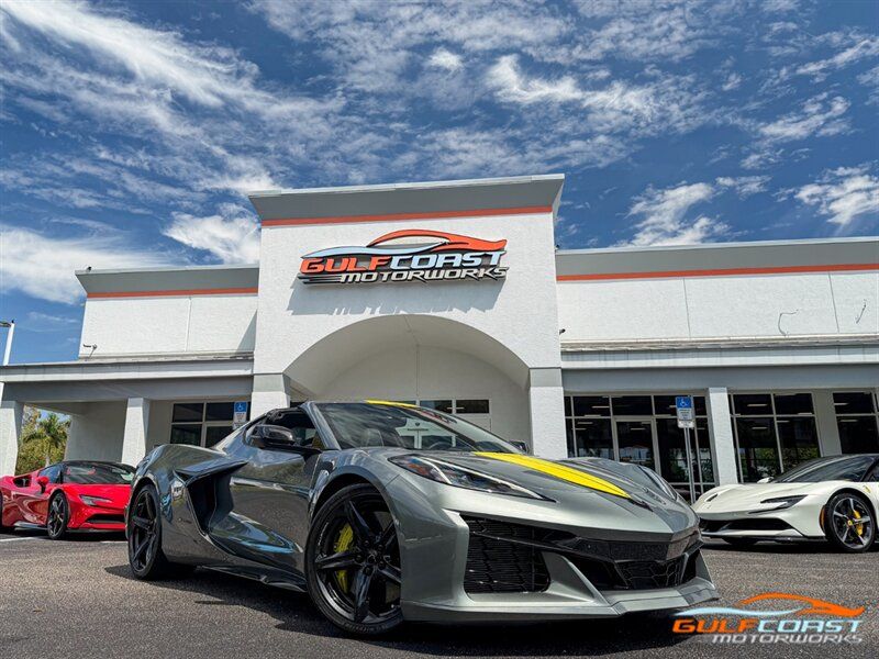 "2024 Chevrolet Corvette Z06. Hyper Sonic Gray Metallic Exterior with Jett Black Interior. Features Include: 670 Horsepower NA Flat Plane 5.5L V8 Engine, Eight-Speed Dual Clutch Automatic Transmission, Magnetic Selective Ride Control, Red Brake Calipers, Carbon Ceramic Brakes, 20"" Front & 21"" Rear Carbon Fiber Wheels Painted in Carbon Flash, Carbon Ceramic Brakes, Yellow Calipers, Front Lift, Exhaust Tips in Black, LED Headlamps, LED Tail Lights, LED DRLs, Heated Power Folding Outside Mirrors, Remote Vehicle Start, Keyless Open & Start, Digital Instrument Cluster, Stealth Interior Trim Package, Competition Sport Bucket Seats, Yellow Seat Belts, Infotainment 3 Premium with Navigation - 8"" HD Touchscreen, Performance Data & Video Recorder, Bose Performance 14-Speaker Audio System, Wireless Apple CarPlay & Android Auto, SiriusXM Satellite Radio Capable, Smartphone Integration, Bluetooth, Rear Park Assist, HD Front & Rear Vision Cameras, Front Cameras are Curb View. Priced at only $124,995. Financing and leasing available. We ship worldwide. We pay top dollar for lightly used sports cars, Call or text Our Product Specialist today at 239-522-2262 or email us at sales@gcmworks.com. Fees and Taxes: $1199.00 Doc Fee on all Purchases. Out of state buyers are responsible for all state, county, city taxes and fees, as well as title/registration fees in the state that the vehicle will be registered. -- INSTALLED FEATURES: Air filtration, Front air conditioning: automatic climate control, Front air conditioning zones: dual, Airbag deactivation: occupant sensing passenger, Front airbags: dual, Side airbags: front, Antenna type: diversity / element, Auxiliary audio input: Bluetooth / iPod/iPhone / jack / USB, Digital sound processing, Premium brand: Bose, Radio: AM/FM / HD radio / touch screen display / voice operated, Radio data system, Satellite radio: SiriusXM, Speed sensitive volume control, Subwoofer: 2, Surround sound, Total speakers: 12, ABS: 4-wheel, Braking assist, Electronic brakeforce distribution, Electronic parking brake: auto off, Front brake type: ventilated disc, Painted brake calipers, Power brakes, Premium brakes: Brembo, Rear brake type: ventilated disc, Center console trim: leather, Dash trim: leather, Door trim: leather, Floor mat material: carpet, Floor material: carpet, Floor mats: front, Headliner trim: faux suede, Heated steering wheel, Interior accents: faux suede, Steering wheel trim: carbon fiber / leather, Ambient lighting, Cargo area light, Center console: front console with armrest and storage, Cruise control, Cupholders: covered / front, Memorized settings: 2 driver / driver seat / passenger seat / side mirrors / steering wheel, Multi-function remote: panic alarm / proximity entry system / trunk release / vehicle and key memory, One-touch windows: 2, Power outlet(s): 12V cargo area / 12V front / USB front / USB-C front, Power steering: variable/speed-proportional, Push-button start, Reading lights: front, Rearview mirror: auto-dimming / camera-based, Remote engine start, Steering wheel: power tilt and telescopic, Steering wheel mounted controls: audio / cruise control / multi-function / paddle shifter / phone / voice control, Storage: cargo net / cargo tie-down anchors and hooks / door pockets / in dash / rear bulkhead, Universal remote transmitter: Homelink - garage door opener, Vanity mirrors: dual illuminating, Wireless charging station: front, Door handle color: black, Exhaust: quad tip, Exhaust tip color: stainless steel, Front bumper color: body-color, Grille color: black, Mirror color: body-color, Rear bumper color: body-color, Rear spoiler: lip, Rear spoiler color: body-color, Rear trunk/liftgate: soft close, Window trim: black, Connected in-car apps: app marketplace integration / driving performance / Google Assistant / Google POIs / Google search, Infotainment: Chevrolet Infotainment System / Google Built-In, Infotainment screen size: 8 in., Smartphone integration: wireless Android Auto / wireless Apple CarPlay, Clock, Compass, Customizable instrument cluster, Digital odometer, External temperature display, Fuel economy display: MPG / range, Gauge: oil pressure / tachometer, Head-up display, Instrument cluster screen size: 12 in., Multi-function display, Trip odometer, Warnings and reminders: low battery / low fuel level / low oil level / maintenance due, Daytime running lights: LED, Exterior entry lights: approach lamps, Headlights: auto delay off / auto high beam dimmer / auto on/off / LED / wiper activated, Taillights: LED, Side mirror adjustments: power / power folding / reverse gear tilt, Side mirrors: driver side auto-dimming / heated / integrated turn signals, Auxiliary oil cooler, Battery: maintenance-free, Battery saver, Drive mode selector, Limited slip differential: rear, Mid-mounted engine, Performance exhaust, Removable roof: targa top, Automatic emergency braking: front / front pedestrian, Blind spot safety: sensor/alert, Camera system: front / rearview, Cross traffic alert: rear, Crumple zones: front / rear, Dash camera: front recording, Emergency interior trunk release, Lane deviation sensors, Lane keeping assist, Parking sensors: rear, Pre-collision warning system: audible warning / pedestrian detection / visual warning, Programmable safety key, Rearview monitor: in dash, Emergency locking retractors: front, Front seatbelts: 3-point, Seatbelt pretensioners: front, Seatbelt warning sensor: front, Driver seat: heated / ventilated, Driver seat power adjustments: 8 / height / lumbar / reclining, Front headrests: 2 / integrated, Front seat type: sport bucket, Passenger seat: heated / ventilated, Passenger seat power adjustments: 8 / height / lumbar / reclining, Upholstery: leather, Upholstery accents: perforated, Anti-theft system: alarm / anti-tow sensor / interior motion sensor / vehicle immobilizer, Power door locks: anti-lockout / auto-locking, Hill holder control, Stability control, Traction control, Active suspension, Driver adjustable susp