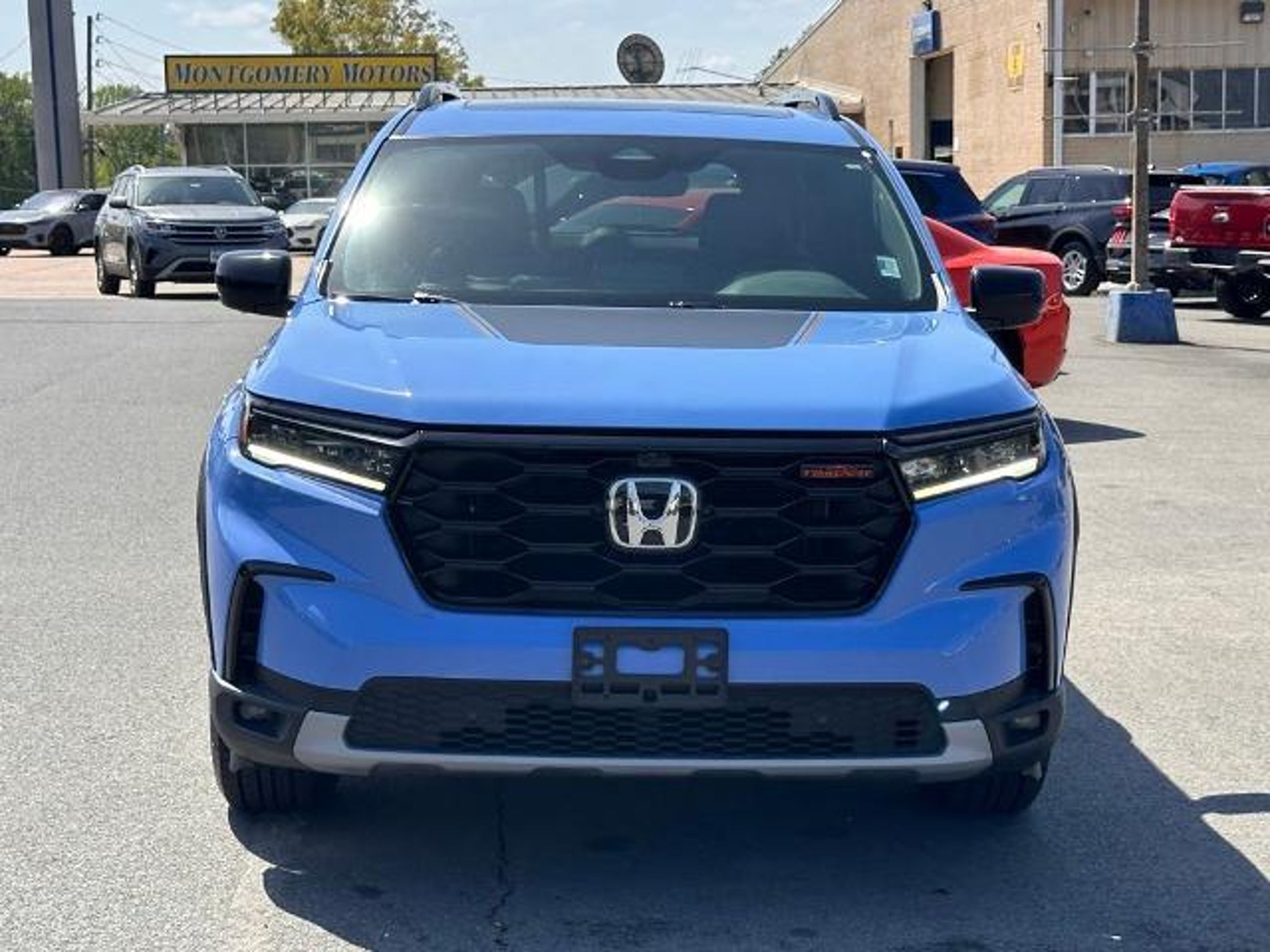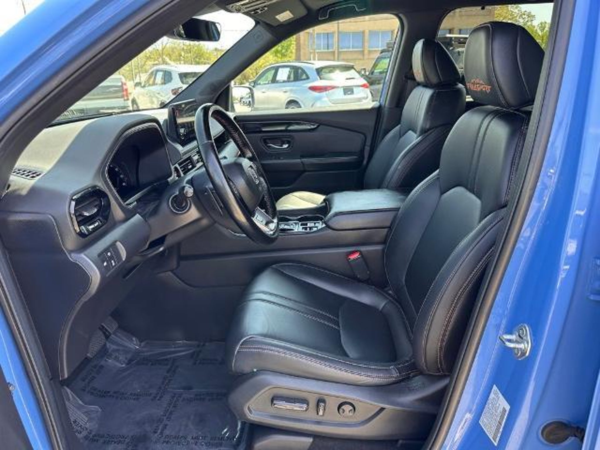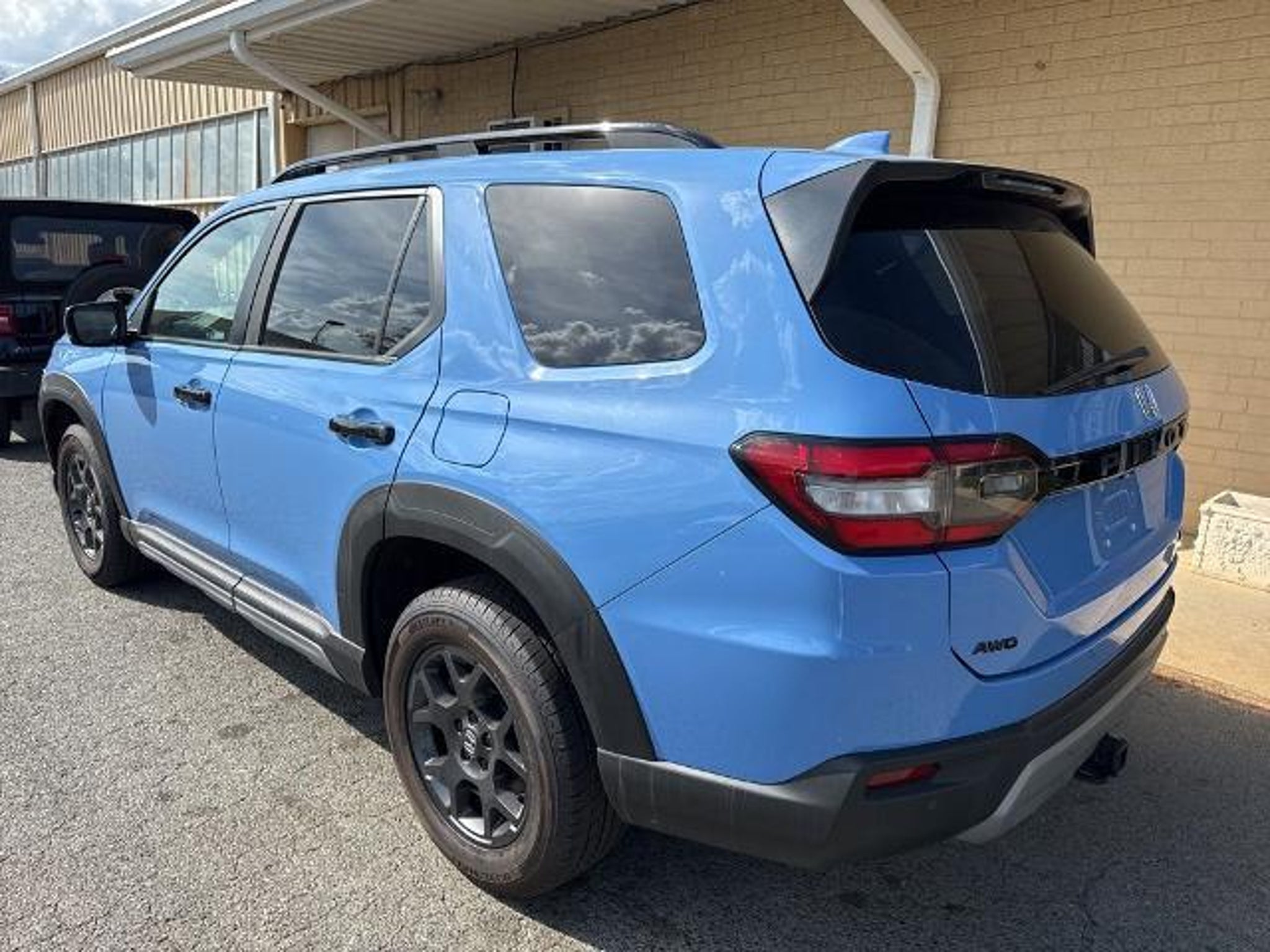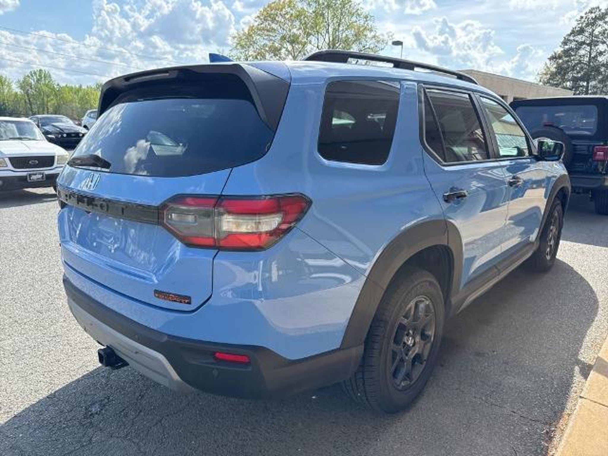 Recent Arrival! Blue 2023 Honda Pilot TrailSport AWD CARFAX One-Owner. 3rd row seats: split-bench, 4-Wheel Disc Brakes, 9 Speakers, ABS brakes, Adaptive Cruise Control: Adaptive Cruise Control (ACC) with Low-Speed Follow, Air Conditioning, Alloy wheels, AM/FM radio: SiriusXM, Apple CarPlay/Android Auto, Auto High-beam Headlights, Auto-dimming Rear-View mirror, Automatic temperature control, Axle Ratio: 4.167, Blind Spot Information (BSI) System warning, Brake assist, Bumpers: body-color, Delay-off headlights, Driver door bin, Driver vanity mirror, Dual front impact airbags, Dual front side impact airbags, Durable Synthetic Leather Seat Trim, Electronic Stability Control, Emergency communication system: HondaLink Assist, Four wheel independent suspension, Front anti-roll bar, Front Bucket Seats, Front Center Armrest, Front dual zone A/C, Front fog lights, Front reading lights, Fully automatic headlights, Garage door transmitter: HomeLink, Heated door mirrors, Heated Front Bucket Seats, Heated front seats, Illuminated entry, Knee airbag, Lane departure: Lane Keeping Assist System (LKAS) active, Low tire pressure warning, Memory seat, Occupant sensing airbag, Outside temperature display, Overhead airbag, Overhead console, Panic alarm, Passenger door bin, Passenger vanity mirror, Power door mirrors, Power driver seat, Power Liftgate, Power moonroof, Power passenger seat, Power steering, Power windows, Radio data system, Radio: 245-Watt Audio System, Rear air conditioning, Rear anti-roll bar, Rear reading lights, Rear window defroster, Rear window wiper, Reclining 3rd row seat, Remote keyless entry, Security system, Speed control, Speed-sensing steering, Speed-Sensitive Wipers, Split folding rear seat, Spoiler, Steering wheel mounted audio controls, Tachometer, Telescoping steering wheel, Tilt steering wheel, Traction control, Trip computer, Turn signal indicator mirrors, Variably intermittent wipers, and Wheels: 18 Fully Painted Shark Gray w/Blk Lug Nuts.