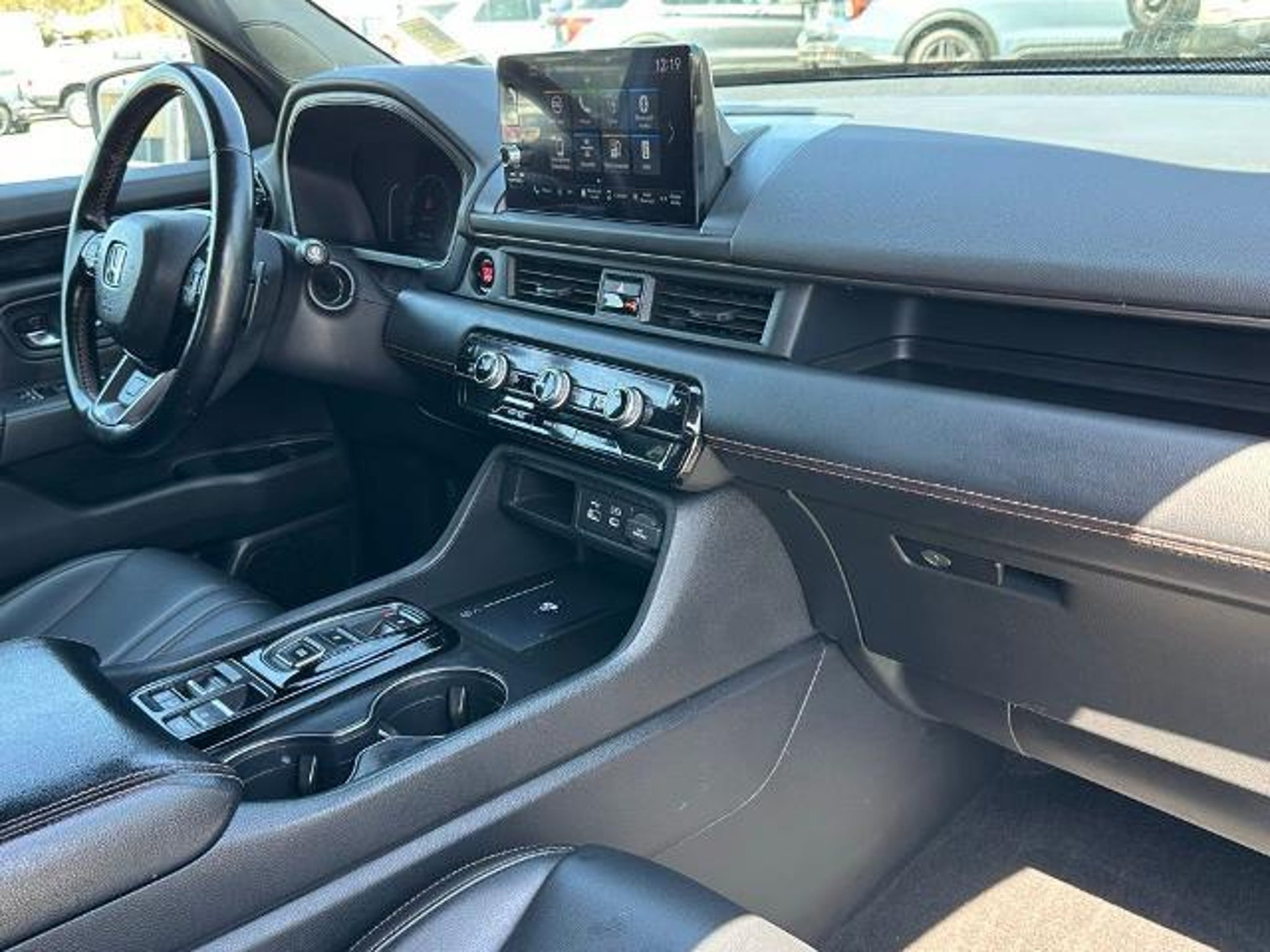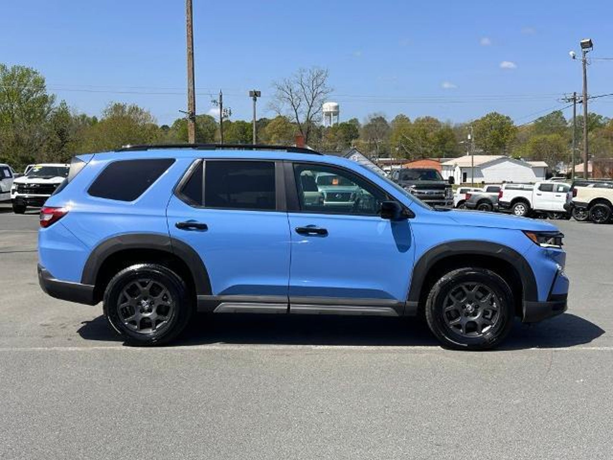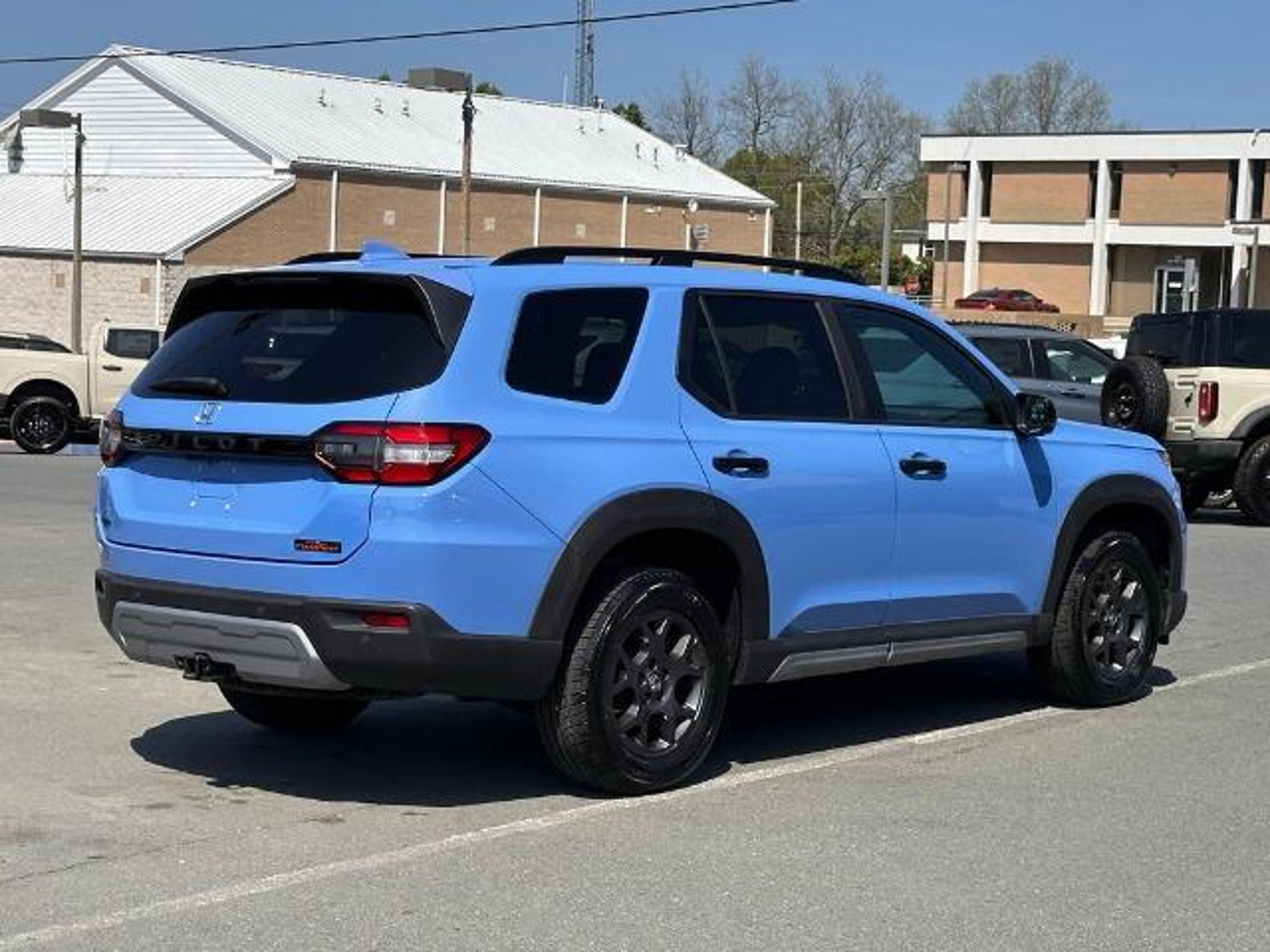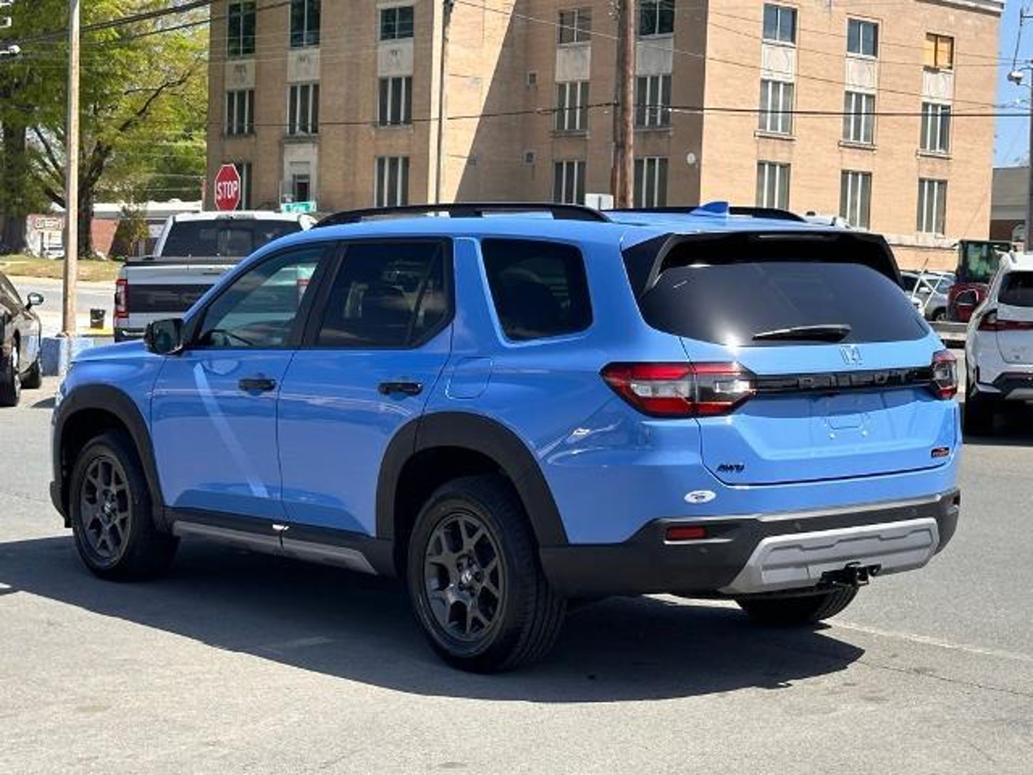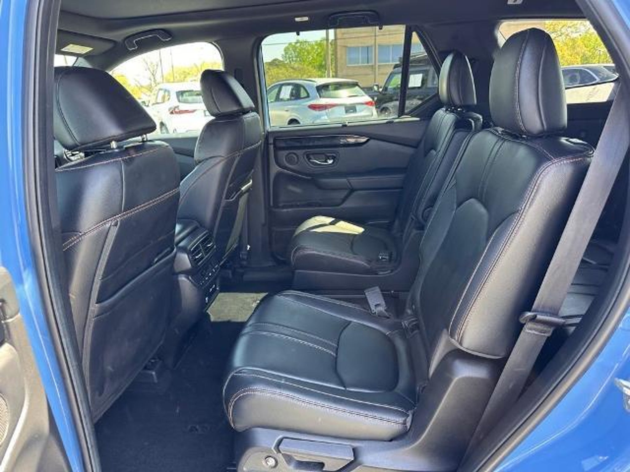 Recent Arrival! Blue 2023 Honda Pilot TrailSport AWD CARFAX One-Owner. 3rd row seats: split-bench, 4-Wheel Disc Brakes, 9 Speakers, ABS brakes, Adaptive Cruise Control: Adaptive Cruise Control (ACC) with Low-Speed Follow, Air Conditioning, Alloy wheels, AM/FM radio: SiriusXM, Apple CarPlay/Android Auto, Auto High-beam Headlights, Auto-dimming Rear-View mirror, Automatic temperature control, Axle Ratio: 4.167, Blind Spot Information (BSI) System warning, Brake assist, Bumpers: body-color, Delay-off headlights, Driver door bin, Driver vanity mirror, Dual front impact airbags, Dual front side impact airbags, Durable Synthetic Leather Seat Trim, Electronic Stability Control, Emergency communication system: HondaLink Assist, Four wheel independent suspension, Front anti-roll bar, Front Bucket Seats, Front Center Armrest, Front dual zone A/C, Front fog lights, Front reading lights, Fully automatic headlights, Garage door transmitter: HomeLink, Heated door mirrors, Heated Front Bucket Seats, Heated front seats, Illuminated entry, Knee airbag, Lane departure: Lane Keeping Assist System (LKAS) active, Low tire pressure warning, Memory seat, Occupant sensing airbag, Outside temperature display, Overhead airbag, Overhead console, Panic alarm, Passenger door bin, Passenger vanity mirror, Power door mirrors, Power driver seat, Power Liftgate, Power moonroof, Power passenger seat, Power steering, Power windows, Radio data system, Radio: 245-Watt Audio System, Rear air conditioning, Rear anti-roll bar, Rear reading lights, Rear window defroster, Rear window wiper, Reclining 3rd row seat, Remote keyless entry, Security system, Speed control, Speed-sensing steering, Speed-Sensitive Wipers, Split folding rear seat, Spoiler, Steering wheel mounted audio controls, Tachometer, Telescoping steering wheel, Tilt steering wheel, Traction control, Trip computer, Turn signal indicator mirrors, Variably intermittent wipers, and Wheels: 18 Fully Painted Shark Gray w/Blk Lug Nuts.