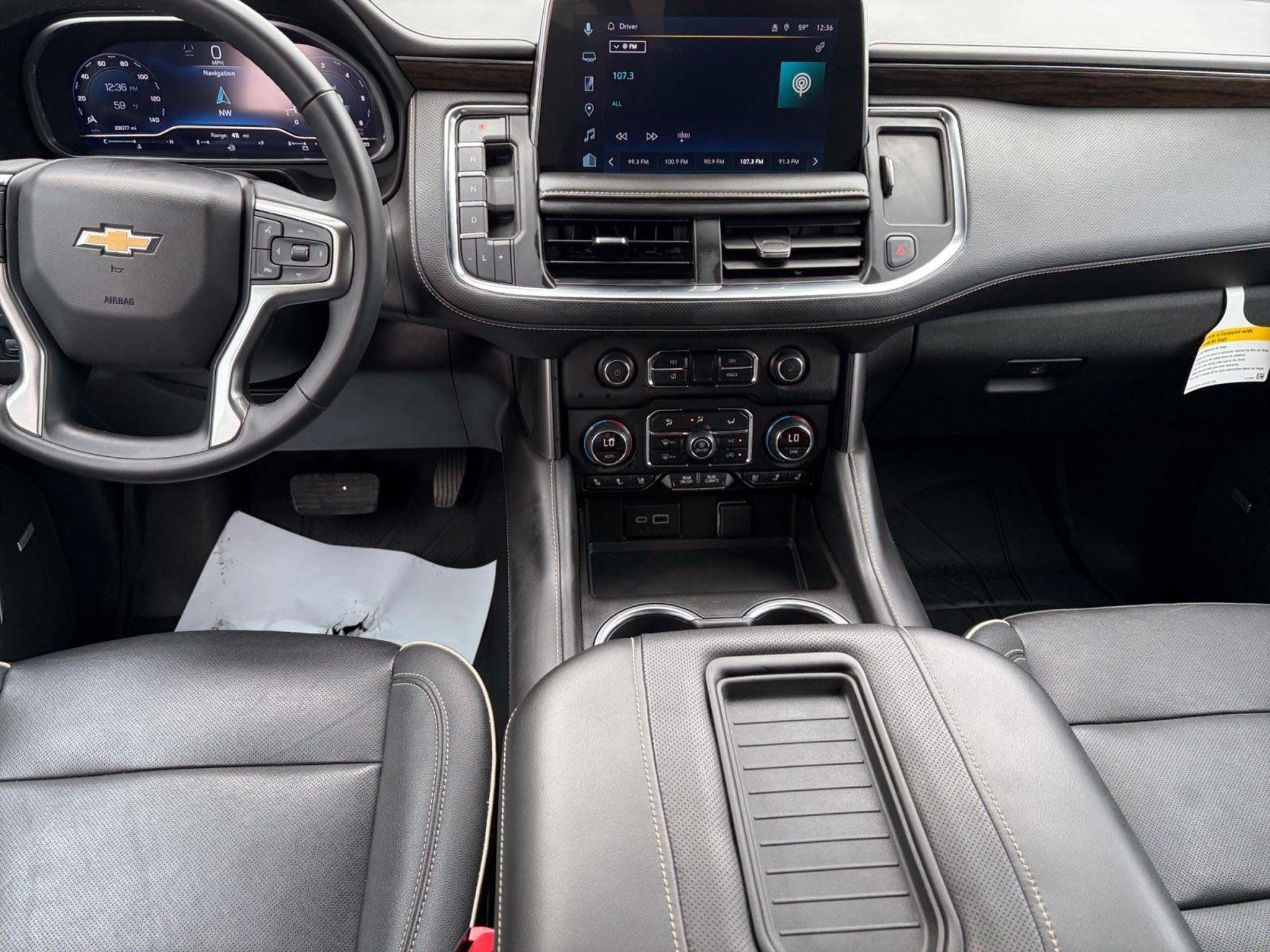 This 2023 Chevrolet Tahoe Premier|has a Sterling Gray Metallic exterior and Jet Black interior color with only 23,069 miles. Stock Number T26546A. You can connect with us by calling .\n \n\n\nNo Accidents! One Owner! \n \n\n OTHER NOTABLE FEATURES AND OPTIONS YOU SHOULD KNOW ABOUT: \n\n Max Trailering Package ($465 value) Extra Capacity Cooling System Advanced Trailering Package Integrated Trailer Brake Controller Hitch Guidance with Hitch View Smart Trailer Integration Indicator Trailer Side Blind Zone Alert Premium Package ($4,090 value) Dual-Pane Power Panoramic Sunroof Texas Edition ($2,010 value) 22 X 9 Polished Aluminum Wheels Texas Edition Badging Preferred Equipment Group 1LZ Memory Settings Front High-Back Reclining Bucket Seats 3rd Row 60/40 Power-Folding Split-Bench Seat Power Release 2nd Row Bucket Seats Driver and Front Outboard Passenger Airbags Chrome Door Handles with Body-Color Strip Color-Keyed Carpeting Floor Covering 1st and 2nd Row Color-Keyed Carpeted Floor Mats Remote Start Bright Front and Rear Door Sill Plates Floor Console Auto-Dimming Inside Rearview Mirror Chrome Mirror Caps Outside Heated Power-Adjustable Mirrors Safety Alert Seat Chevrolet Infotainment 3 Premium System Radio Wireless Charging Heated 2nd Row Outboard Seats Heated Steering Wheel Dual Exhaust System Power Tilt and Telescopic Steering Column Wrapped Steering Wheel 20 X 9 Polished Aluminum Wheels Perforated Leather Seat Trim LED Daytime Running Lamps Hands-Free Rear Power Programmable Liftgate SiriusXM Radio with 360L Enhanced Driver Information Center Rear Cross Traffic Alert Universal Home Remote Infotainment Display Lane Change Alert with Side Blind Zone Alert Bose 10-Speaker Centerpoint Surround Audio System Feature 275/60R20SL All-Season Blackwall Tires Magnetic Ride Control Suspension Enhanced Display and Alert Package Rear Camera Mirror Washer Inside Rearview Auo-Dimming Rear Camera Mirror Rear Pedestrian Alert HD Surround Vision 15 Diagonal Multi-Color Head-Up Display \n\n\n\n Safety and Security Forward collision mitigation - Forward thinking. You look away for just a second and suddenly the vehicle in front of you has stopped. That's when the forward collision mitigation system comes to life. When it senses an impending impact, it will activate a combination of features to help prevent or reduce the severity of an accident. Forward collision mitigation is always looking ahead. Forward collision mitigation - Forward thinking. You look away for just a second and suddenly the vehicle in front of you has stopped. That's when the forward collision mitigation system comes to life. When it senses an impending impact, it will activate a combination of features to help prevent or reduce the severity of an accident. Forward collision mitigation is always looking ahead. Forward collision mitigation - Forward thinking. You look away for just a second and suddenly the vehicle in front of you has stopped. That's when the forward collision mitigation system comes to life. When it senses an impending impact, it will activate a combination of features to help prevent or reduce the severity of an accident. Forward collision mitigation is always looking ahead. Pedestrian impact prevention - An extra step toward safety. Pedestrians don't always stop, look, and listen, but with Pedestrian Impact Prevention, your vehicle is equipped to better see them and avoid them. This system constantly monitors the road ahead to identify and track pedestrians. It projects that image to an interior display screen, AND should an impact become likely, Pedestrian impact prevention takes steps to avoid a collision. Technology and Telematics Apple CarPlay/Android Auto smart device wireless mirroring \n\nEMISSIONS, FEDERAL REQUIREMENTS, ENGINE, 5.3L ECOTEC3 V8, TRANSMISSION, 10-SPEED AUTOMATIC, GVWR, 7400 LBS. (3357 KG), REAR AXLE, 3.23 RATIO, WHEELS, 22 X 9 (55.9 CM X 22.9 CM) POLISHED ALUMINUM, TIRES, 275/50R22SL ALL-SEASON, BLACKWALL, SEATS, FRONT BUCKET, JET BLACK, PERFORATED LEATHER SEATING SURFACES 1ST AND 2ND ROW, AUDIO SYSTEM, CHEVROLET INFOTAINMENT 3 PREMIUM SYSTEM WITH GOOGLE BUILT-IN, PREMIUM PACKAGE, ENHANCED DISPLAY AND ALERT PACKAGE, MAX TRAILERING PACKAGE, TEXAS EDITION, ADVANCED TRAILERING PACKAGE, COOLING SYSTEM, EXTRA CAPACITY, TRAILER BRAKE CONTROLLER, INTEGRATED, HITCH GUIDANCE WITH HITCH VIEW, LPO, WHEEL LOCKS, SET OF 4, SUNROOF, POWER PANORAMIC, DUAL-PANE, TILT-SLIDING, BADGING, TEXAS EDITION, LICENSE PLATE FRONT MOUNTING PACKAGE, LPO, ALL-WEATHER FLOOR LINERS, 1ST, 2ND AND 3RD ROWS, SMART TRAILER INTEGRATION INDICATOR, HEAD-UP DISPLAY, 15 DIAGONAL MULTI-COLOR, ADAPTIVE CRUISE CONTROL, REAR CAMERA MIRROR, INSIDE REARVIEW AUTO-DIMMING, ENHANCED AUTOMATIC EMERGENCY BRAKING, HD SURROUND VISION, REAR CAMERA MIRROR WASHER, REAR PEDESTRIAN ALERT, TRAILER SIDE BLIND ZONE ALERT \n At Toyota of Laredo, we're here to Serve you! Our staff is 100% dedicated to customer satisfaction and we understand that you need clear, transparent information throughout the car buying process. With our live market pricing philosophy, we offer the right cars at the right price, and the transparency to back it up!\n