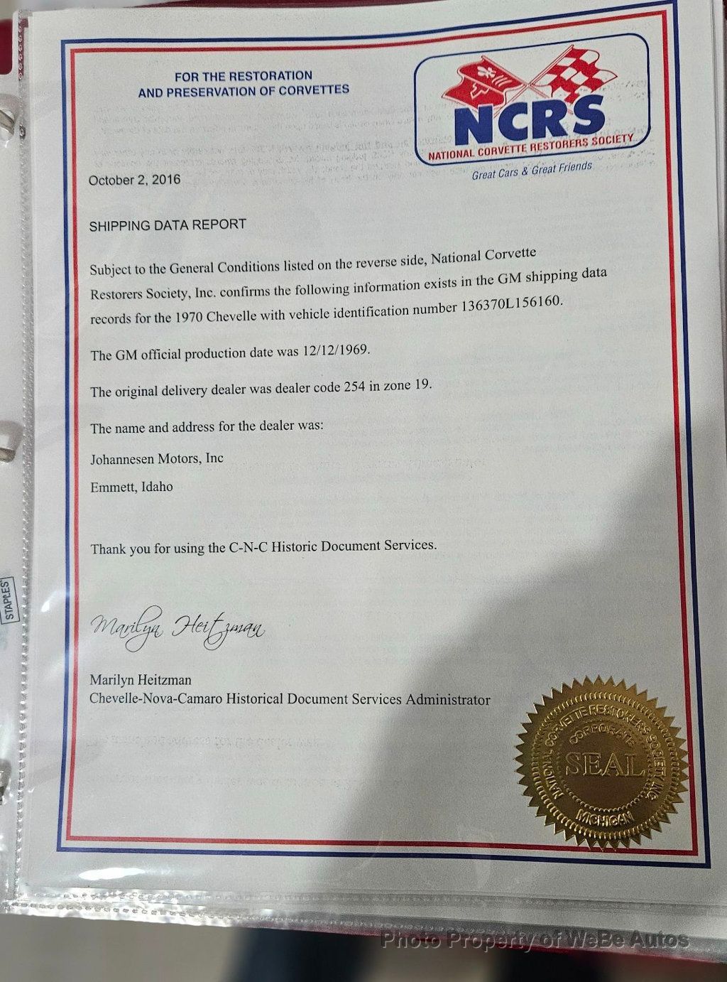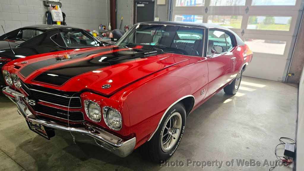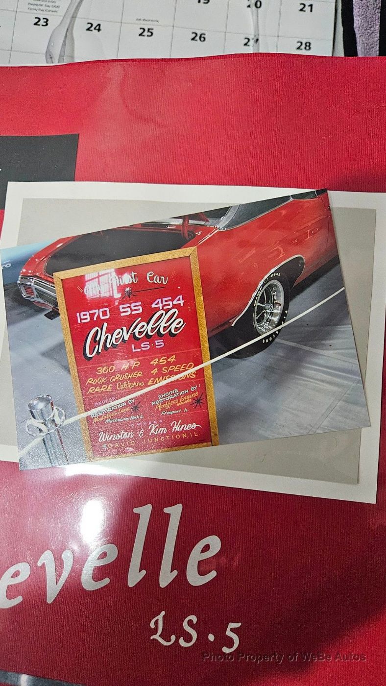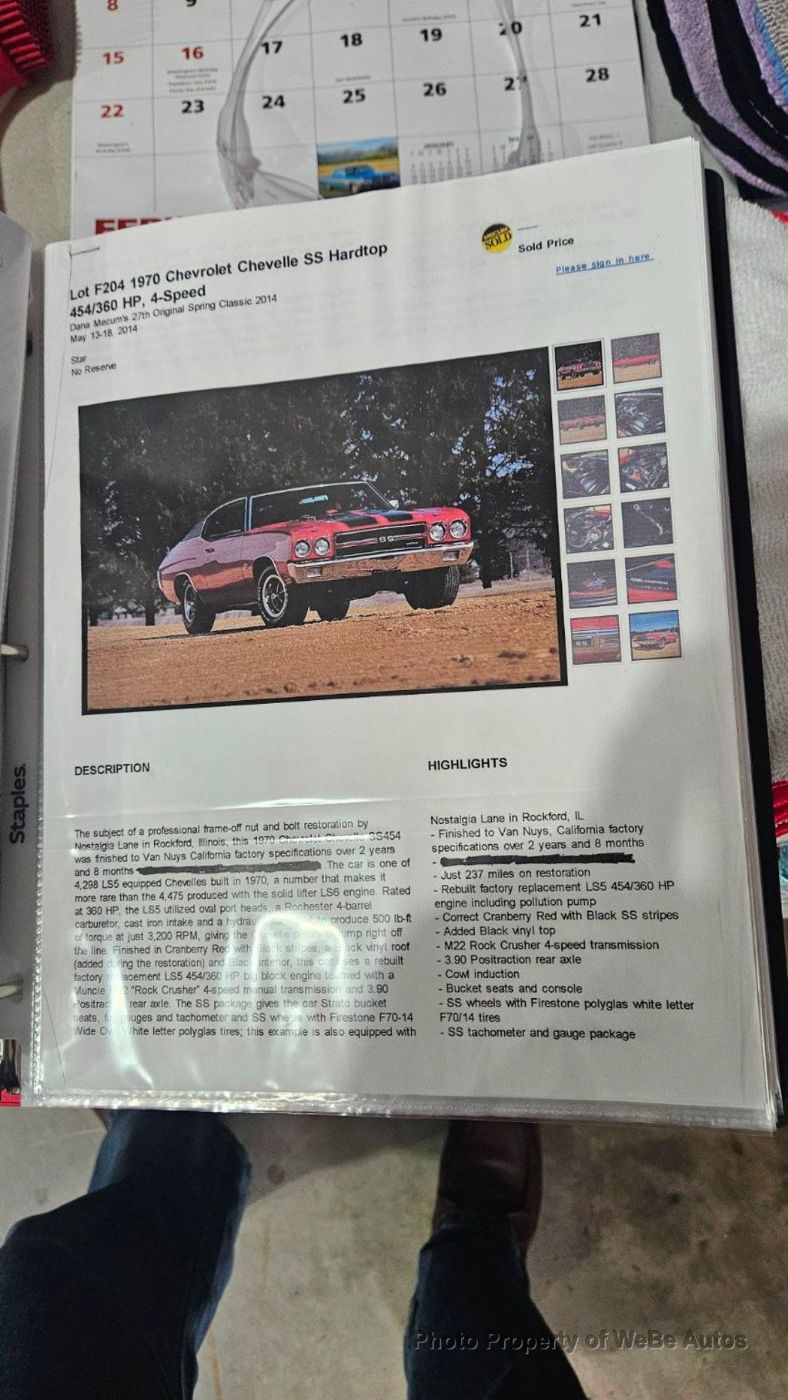 1970 Chevrolet Chevelle LS5 SS For Sale Stunning, Professional Frame-Off Nut and Bolt Restoration by Nostalgia Lane in Rockford, Illinois Finished to Van Nuys, California Factory Specifications Over 2 Years and 8 Months Just 237 Miles on Restoration Dana Mecum's 27th Original Spring Classic 2014 Rebuilt Factory Replacement LS5 454ci V8 Engine With 360hp M22 Rock Crusher 4-Speed Manual Transmission 3.90 Positraction Rear Axle Correct Cranberry Red Paint With Black SS Stripes Added SS Wheels With Firestone Polyglas White Letter F70/14 Tires Added Black Vinyl Top Cowl Induction Hood Bucket Seats and Console SS Tachometer and Gauge Package Documented by Chevelle Stuff and Team Chevelle Located in Belvidere, NJ 07823 WeBe Autos Specializes in Marketing and Advertising Muscle, Classic, Vintage and Specialty Cars. We offer Professional Photography, HD Movies, and Staging that Sells Cars. Let us showcase and sell your specialty car. Please visit our website for more details. Keep in Touch, Michael Runnalls Specialty Car Marketing & Media WeBe Autos Ltd. Long Island, NY 11780 Michael@WeBeAutos.com www.WeBeAutos.com (O)631-339-0399 (C)516-729-2003 Skype: webeautos (F)631-389-2605 - - Premium Sound System - Contact Michael Runnalls at 631-339-0399 or Michael@WeBeAutos.com for more information. -