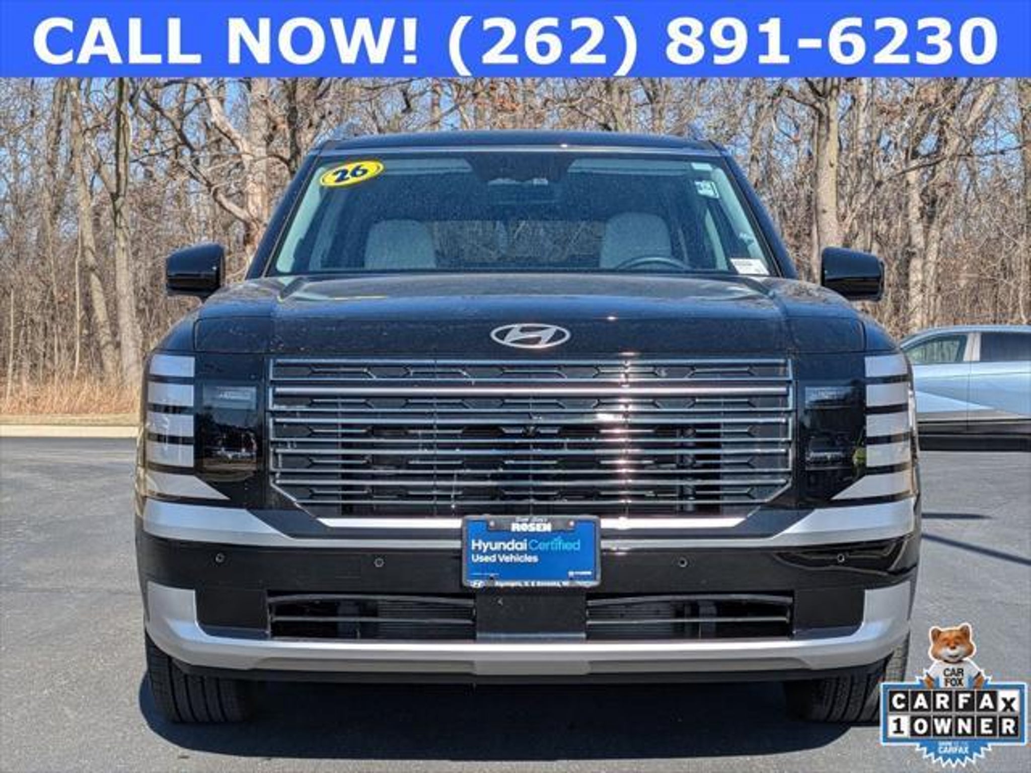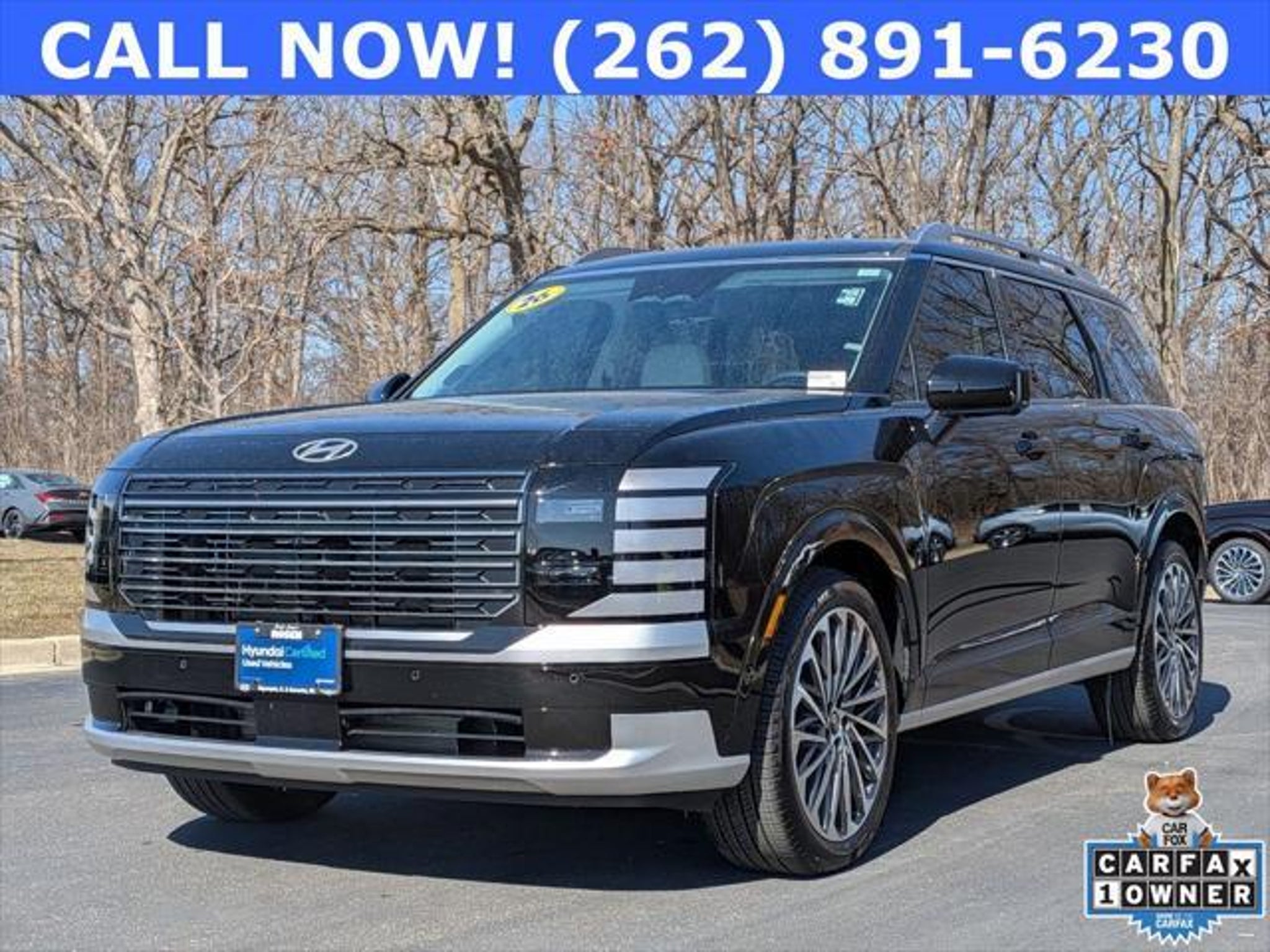 ***ONE OWNER*** ***ADVANCED SAFETY*** ***ALL WHEEL DRIVE*** ***DUAL-PANE SUNROOF*** ***SURROUND VIEW MONITOR*** ***REMTE START PARK ASSIST*** 12.3 inch DIGITAL CLUSTER*** ***HEADS UP DISPLAY*** ***21 inch ALLOY WHEELS*** AND MORE! Abyss Black Pearl 2026 Hyundai Palisade Calligraphy Calligraphy AWD 8-Speed Automatic V6 Certification Program Details: Hyundai Certified Used Vehicles Details: * Powertrain Limited Warranty: 120 Month/100,000 Mile (whichever comes first) from original in-service date * 173 Point Inspection * Vehicle History * Includes 10-year/Unlimited Mileage Roadside Assistance with Rental Car and Trip Interruption Reimbursement; Please See Dealers for Specific Vehicle Eligibility Requirements. 10-Year/100,000 Mile Hybrid/EV Battery Warranty. 3-Months SiriusXM Trial Subscription. Complimentary 1 Year (Connected Care & Remote Pkgs). * Warranty Deductible: $50 * Limited Warranty: 60 Month/60,000 Mile (whichever comes first) from original in-service date * Roadside Assistance * Hyundai Certification not included in price