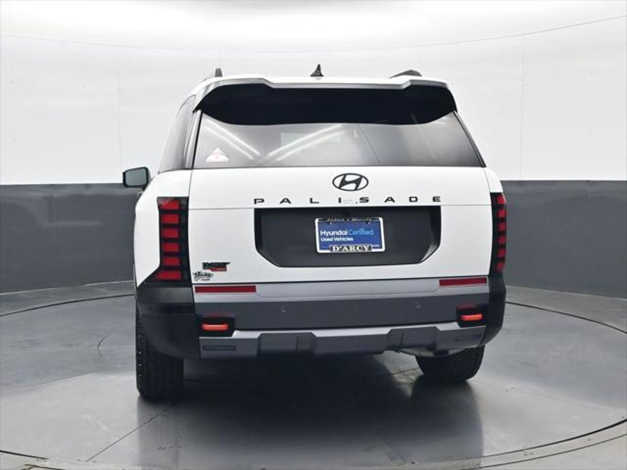 Clean CARFAX. ONE OWNER LOCAL TRADE!, LOW MILES!, GREAT VEHICLE HISTORY!, REMAINING FULL FACTORY WARRANTY!, SUNROOF!, LEATHER!, BOUGHT HERE SERVICED HERE!, HYUNDAI CERTIFIED!, FULLY SERVICED AND READY TO GO!. Certified. Creamy White Pearl 2026 Hyundai Palisade XRT Pro AWD 8-Speed Automatic V6 Hyundai Certified Used Vehicles Details: * Roadside Assistance * Warranty Deductible: $50 * Includes 10-year/Unlimited Mileage Roadside Assistance with Rental Car and Trip Interruption Reimbursement; Please See Dealers for Specific Vehicle Eligibility Requirements. 10-Year/100,000 Mile Hybrid/EV Battery Warranty. 3-Months SiriusXM Trial Subscription. Complimentary 1 Year (Connected Care & Remote Pkgs). * Powertrain Limited Warranty: 120 Month/100,000 Mile (whichever comes first) from original in-service date * Vehicle History * Limited Warranty: 60 Month/60,000 Mile (whichever comes first) from original in-service date * 173 Point Inspection Discover the D'Arcy Difference! We care - we are here and we are ready to help! Stop by today to see up to date information, including showroom and service hours, and how to make an appointment or schedule delivery. D'Arcy Motors has been serving Joliet and its surrounding communities for over 25 years. Our business philosophy, which is to sell cars one car at a time and to make the guest the most important part of the process, has remained the same since 1991. Contact us today to experience the D'Arcy Difference! Pulse® Safer Braking Technology for $399 added to all inventory "“ The rear-end collision deterrent that rapidly pulses your third brake light four times before going solid when you press the brake pedal. This feature enhances safety by helping alert trailing drivers. Discover the D'Arcy Difference! We care - we are here and we are ready to help! Stop by today to see up to date information, including showroom and service hours, and how to make an appointment or schedule delivery. D'Arcy Motors has been serving Joliet and its surrounding communities for over 25 years. Our business philosophy, which is to sell cars one car at a time and to make the guest the most important part of the process, has remained the same since 1991. Contact us today to experience the D'Arcy Difference! This 2026 Hyundai Palisade comes equipped with: Option Group 01, 14 Speakers, 3rd row seats: split-bench, 4-Wheel Disc Brakes, ABS brakes, Air Conditioning, Alloy wheels, AM/FM radio: SiriusXM, Apple CarPlay & Android Auto, Auto High-beam Headlights, Auto-dimming door mirrors, Auto-dimming Rear-View mirror, Auto-leveling suspension, Automatic temperature control, Brake assist, Carpeted Floor Mats, Compass, Delay-off headlights, Driver door bin, Driver vanity mirror, Dual front impact airbags, Dual front side impact airbags, Electronic Stability Control, Emergency communication system: None, Exterior Parking Camera Rear, Four wheel independent suspension, Front anti-roll bar, Front Bucket Seats, Front Center Armrest, Front dual zone A/C, Front reading lights, Fully automatic headlights, H-Tex Leatherette Seat Trim, Heated and Ventilated Front Bucket Seats, Heated door mirrors, Heated front seats, Heated steering wheel, Illuminated entry, Knee airbag, Leather steering wheel, Low tire pressure warning, Navigation System, Occupant sensing airbag, Outside temperature display, Overhead airbag, Overhead console, Panic alarm, Passenger door bin, Passenger vanity mirror, Power door mirrors, Power driver seat, Power Liftgate, Power moonroof, Power passenger seat, Power steering, Power windows, Radio data system, Radio: Infotainment Navigation System, Rear air conditioning, Rear anti-roll bar, Rear audio controls, Rear reading lights, Rear side impact airbag, Rear window defroster, Rear window wiper, Reclining 3rd row seat, Remote keyless entry, Security system, Speed control, Split folding rear seat, Spoiler, Steering wheel mounted audio controls, Tachometer